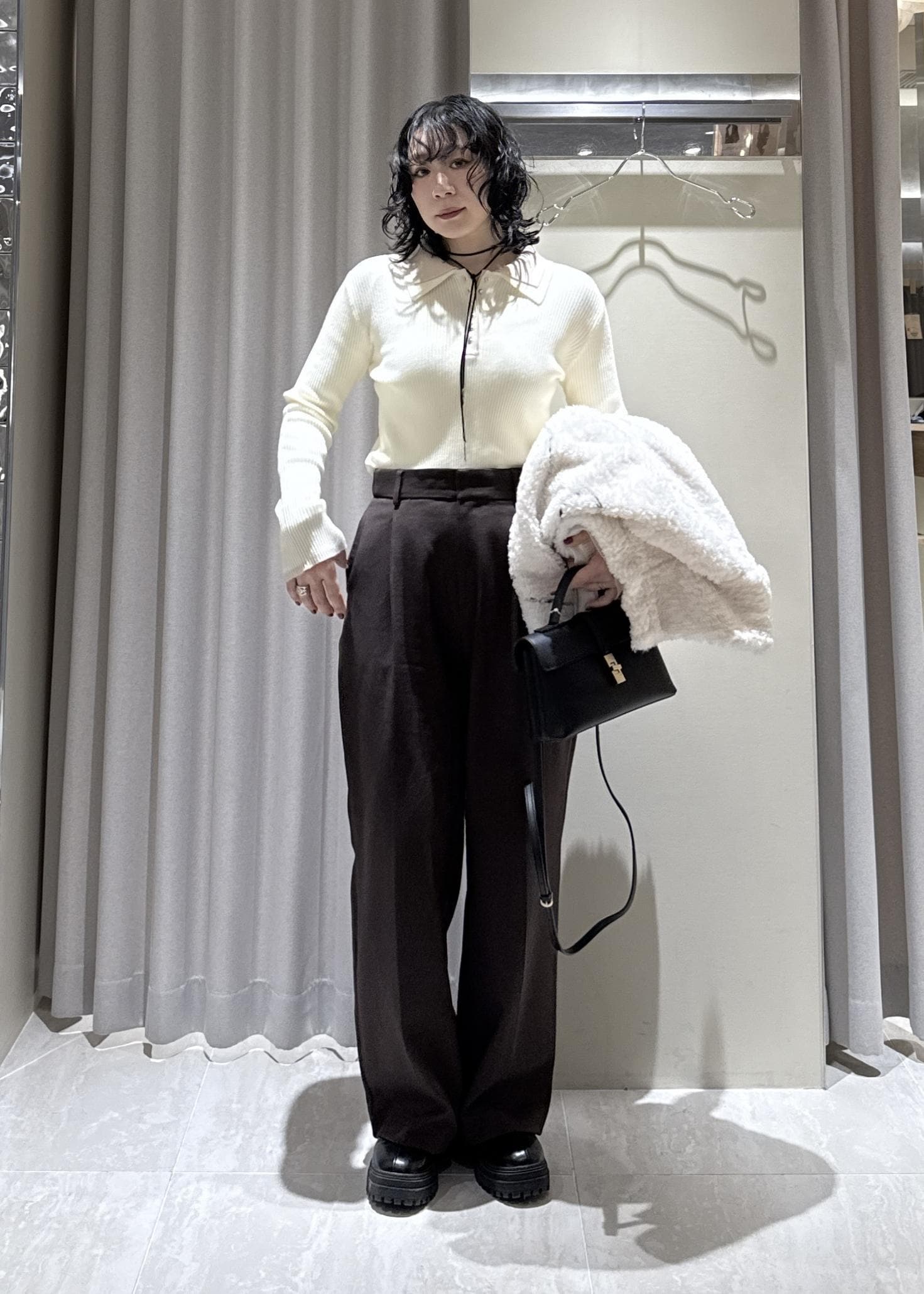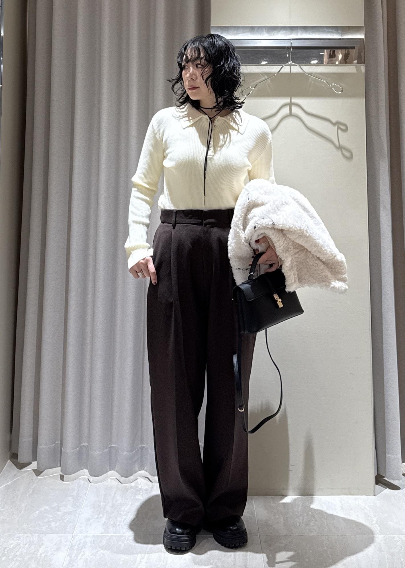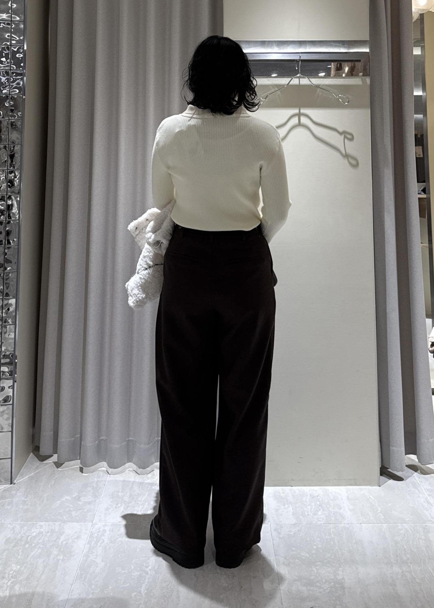シンプルだけど着映えするダブルカラーニットは、柔らかくて楽な着心地な上ちゃんとした感もあるからお仕事でも良さそうです◎