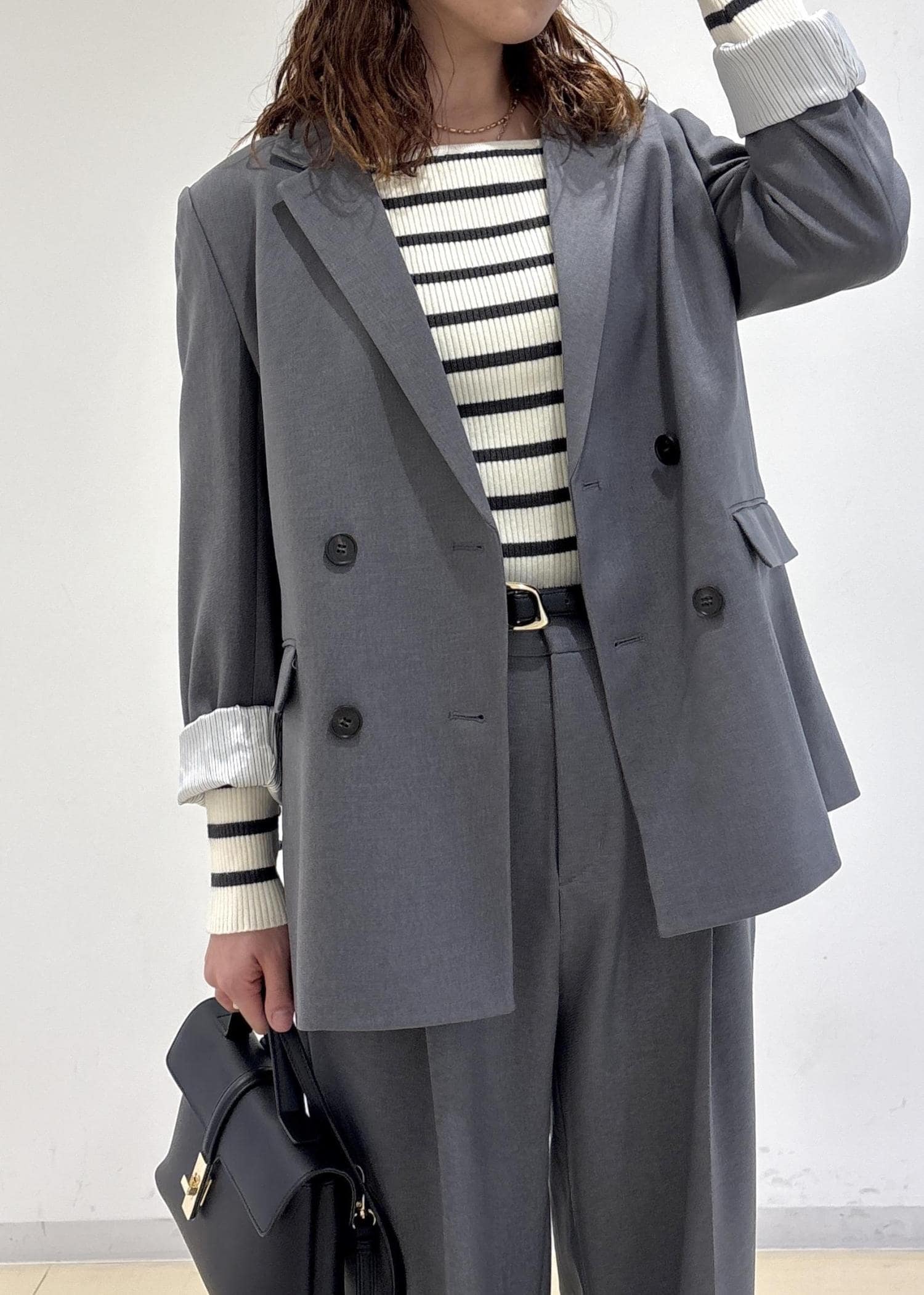 VIS【期間限定価格】美easyウーリッシュダブルブレストテーラードジャケット【セットアップ対応/洗える】グレー / M¥8,009レビュー160cm/Mサイズ着用でヒップが隠れ、ハイゲージニットを入れてもモコモコしないサイズ感です!