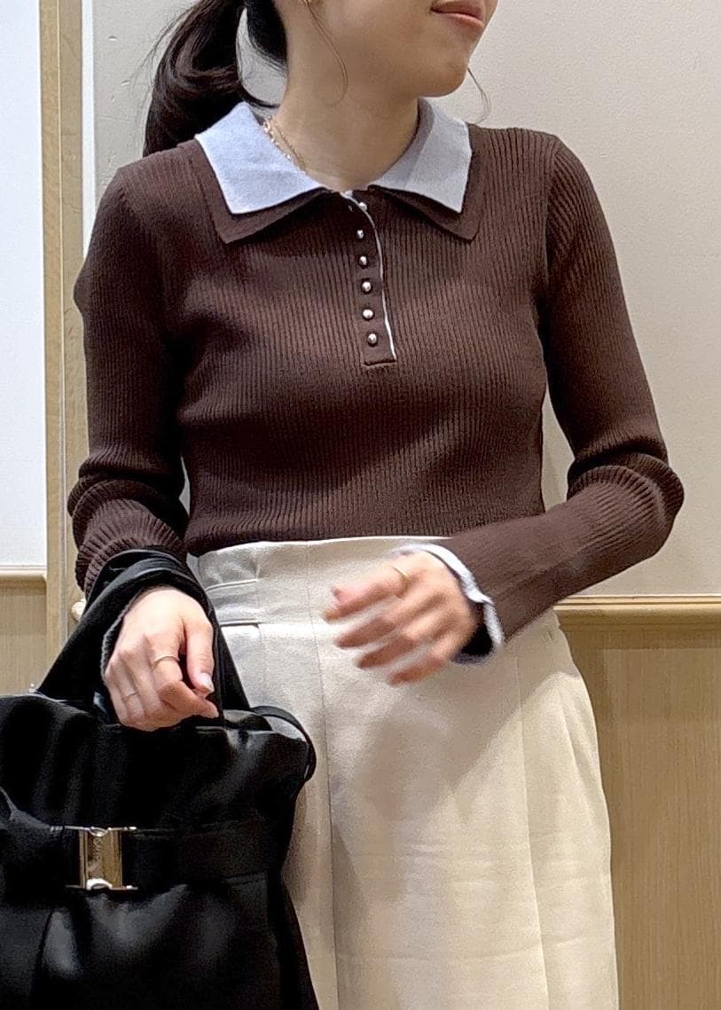 VISダブルカラーポロニットトップスブラウン / F¥5,929レビュートレンドのポロ襟ニット!