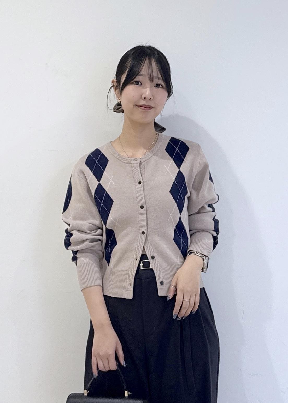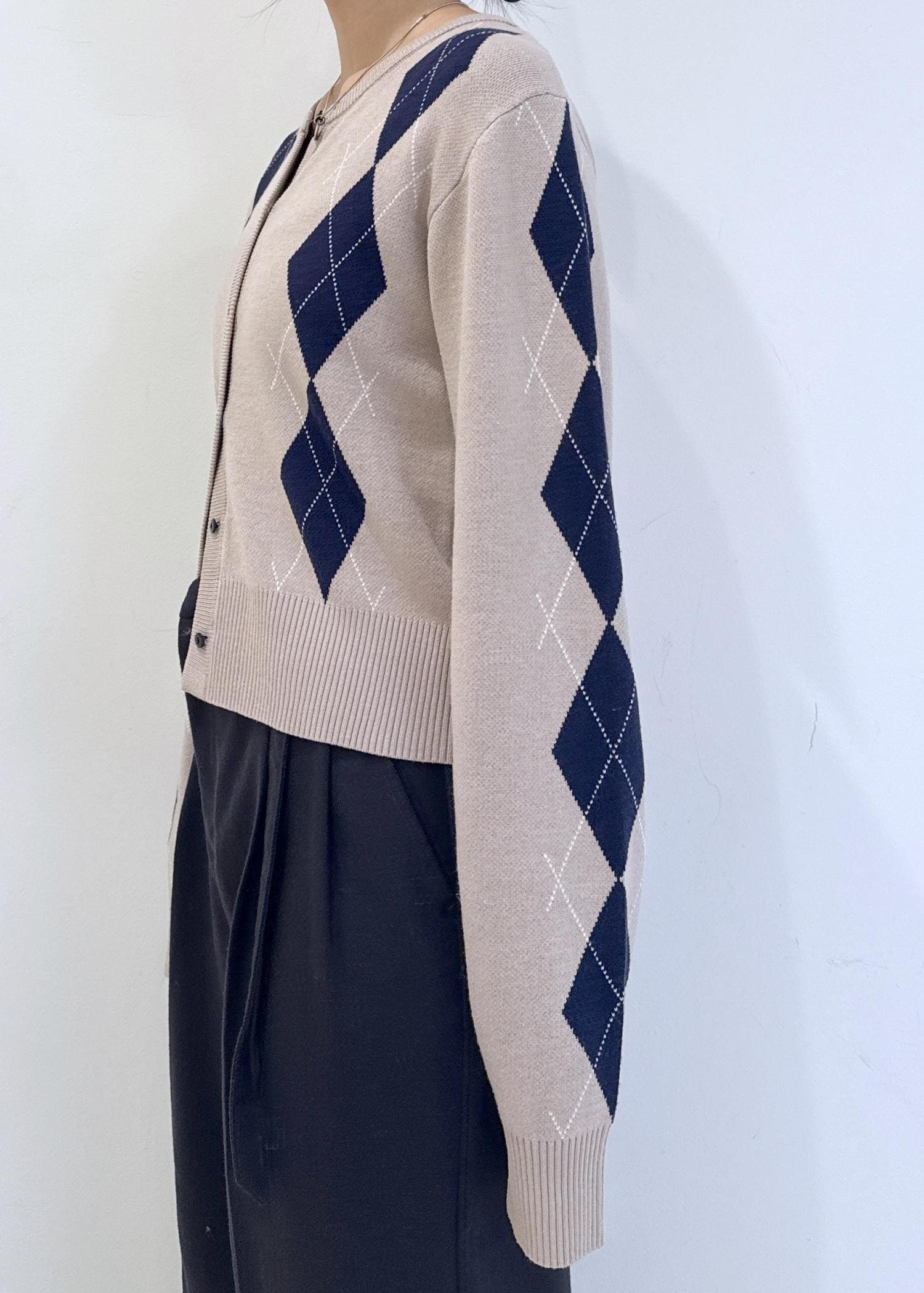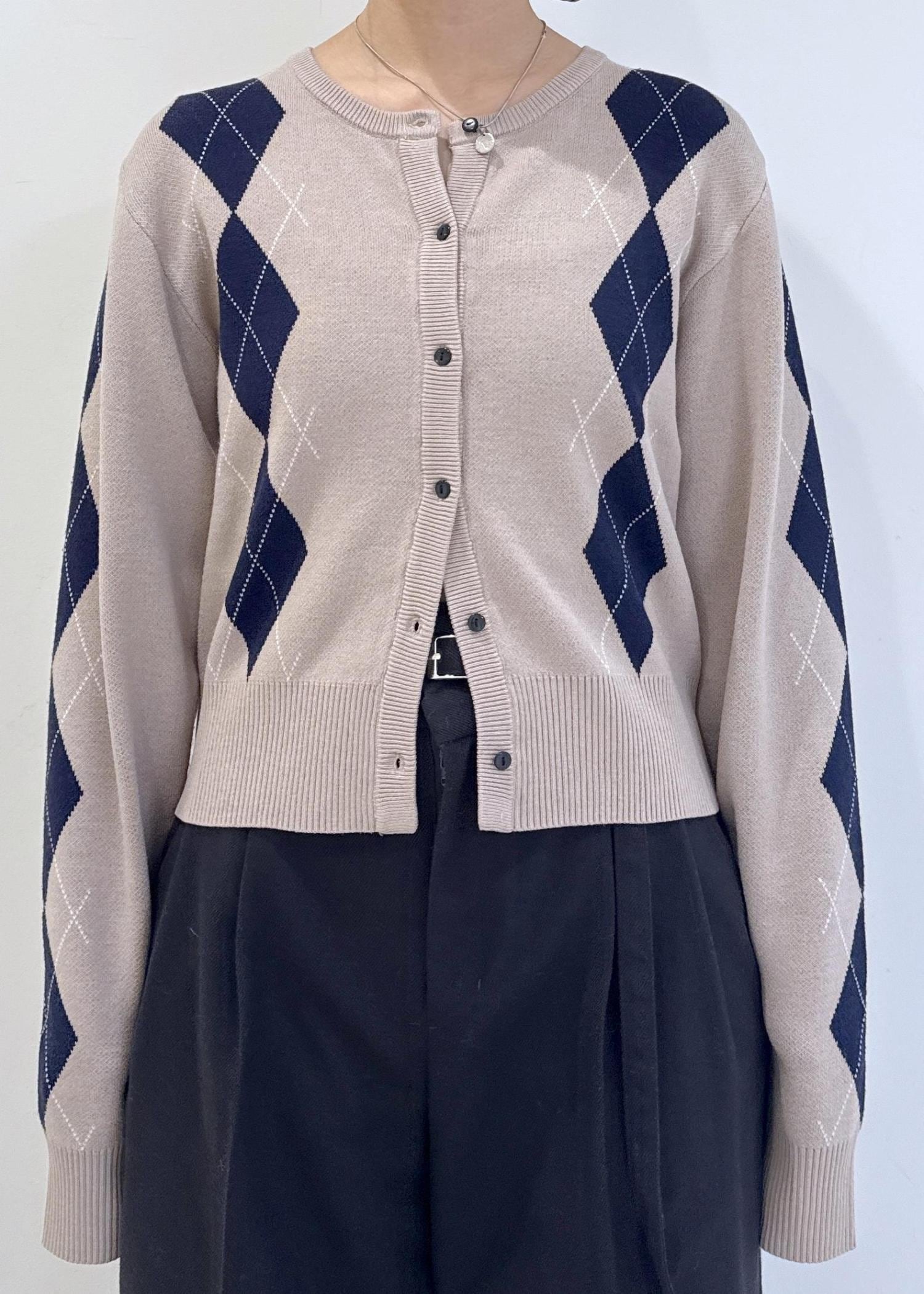 ネイビー×ベージュの色合わせが可愛いアーガイルカーディガンです。