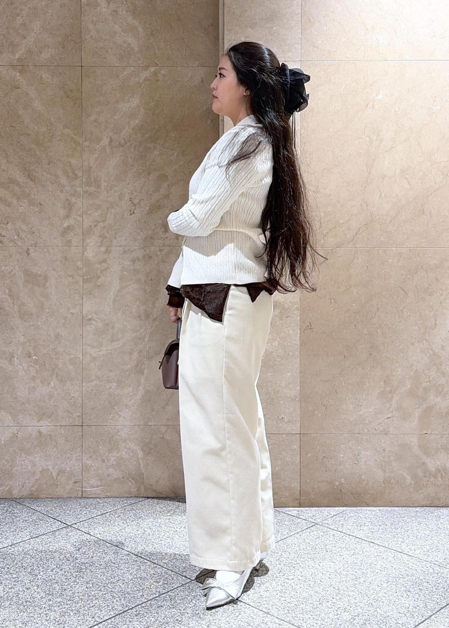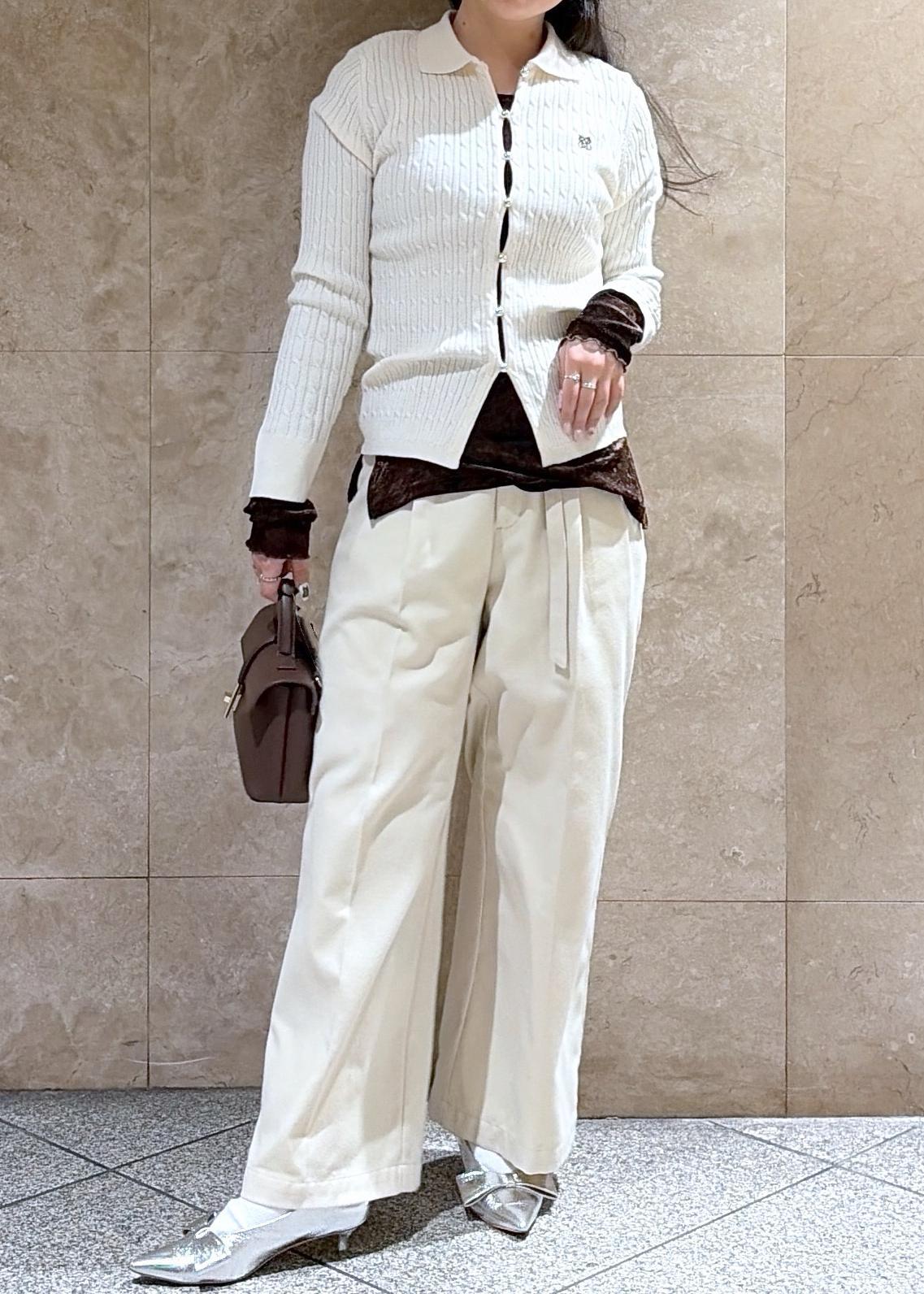 VIS起毛ウールライク版ベルトディテールタックワイドパンツキナリ / S¥5,271レビューベルト付きのパンツで生地感が冬っぽくてとっても可愛いです◎♡