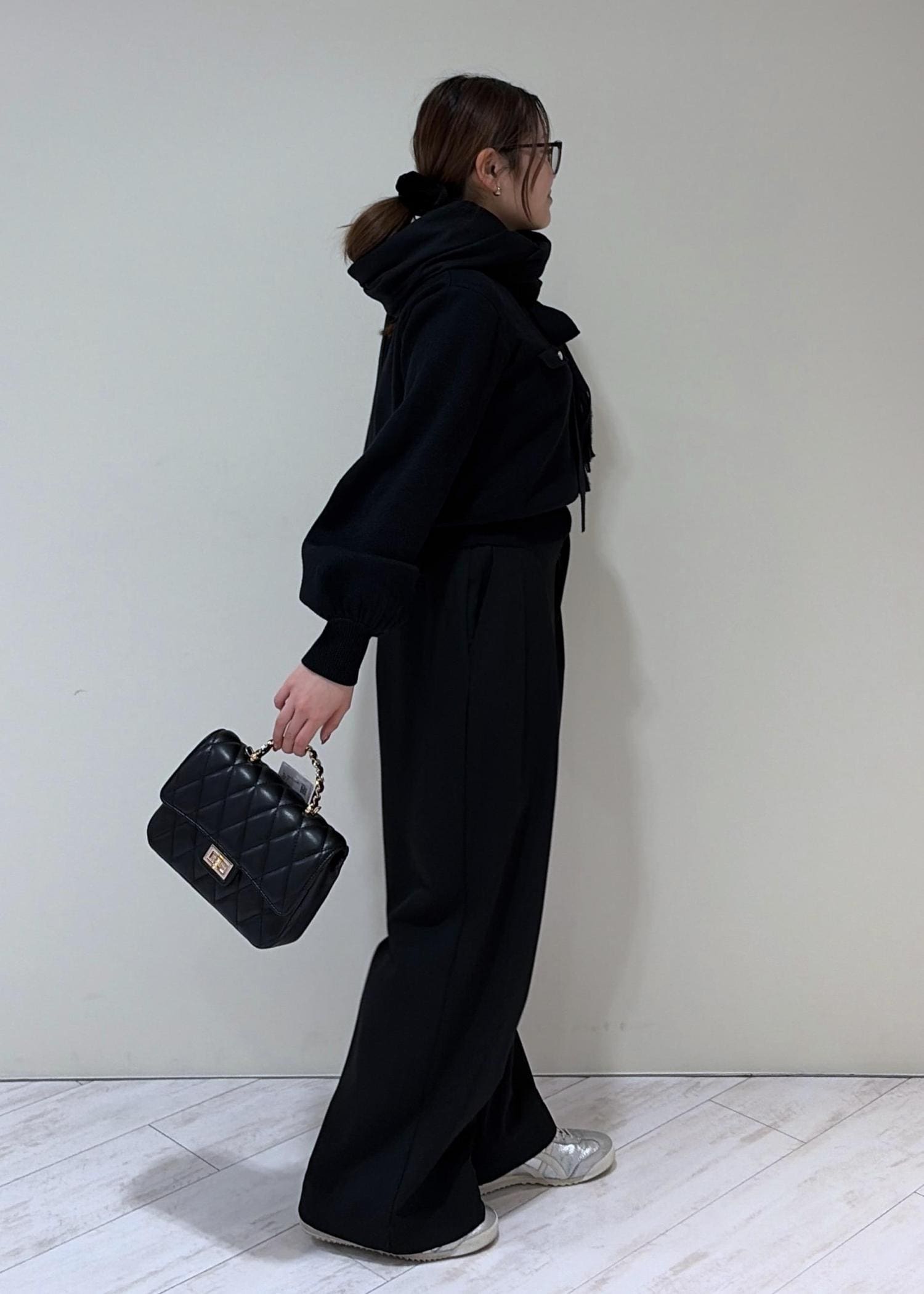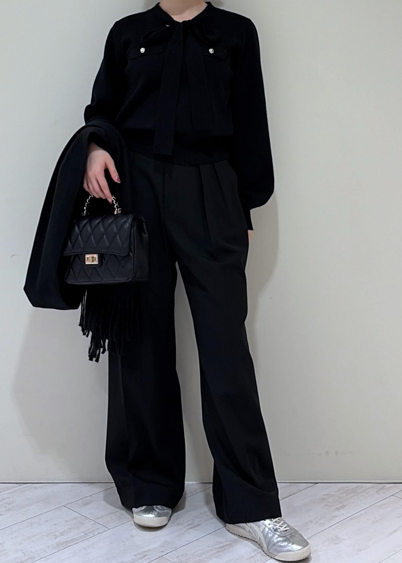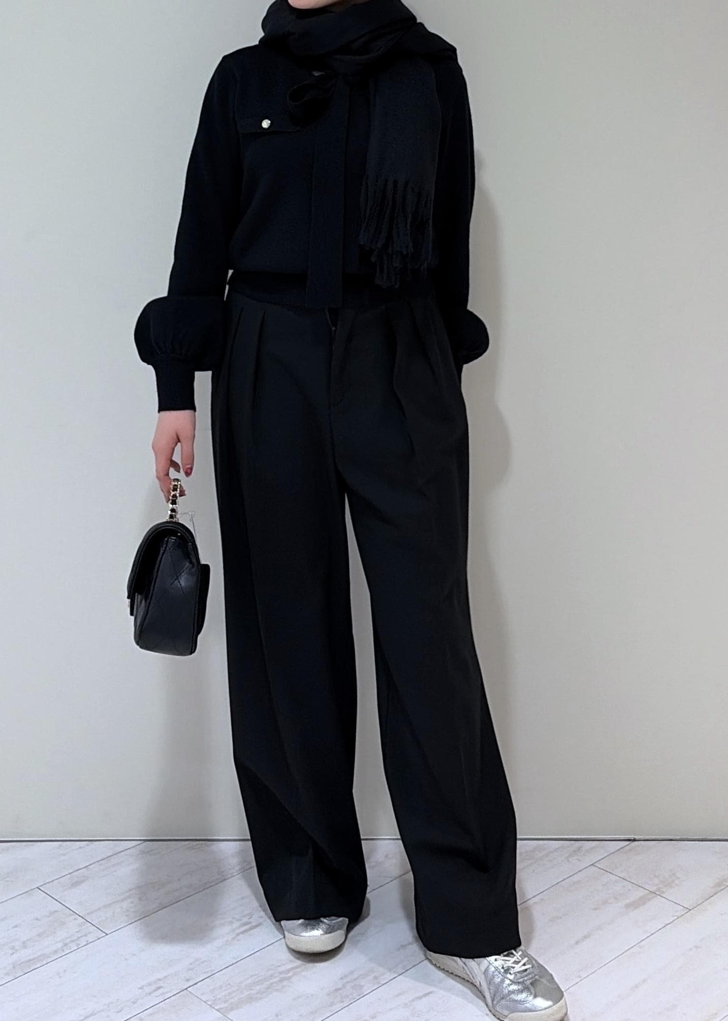 VISHot Beautyツータックワイドパンツ/イージーケアブラック / S¥5,271レビュー身長150センチSサイズだと足の甲に裾がかかる丈感。ギリギリフラットシューズ合わせでも床つきません。