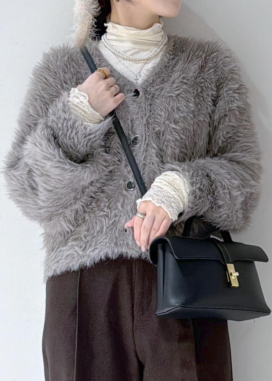2BUY10%OFFVISラビットライクVネックカーディガン/イージーケア・WEB限定カラーグレー系 / F¥4,743レビュー152cmで腰にかかるくらいの長さです◎