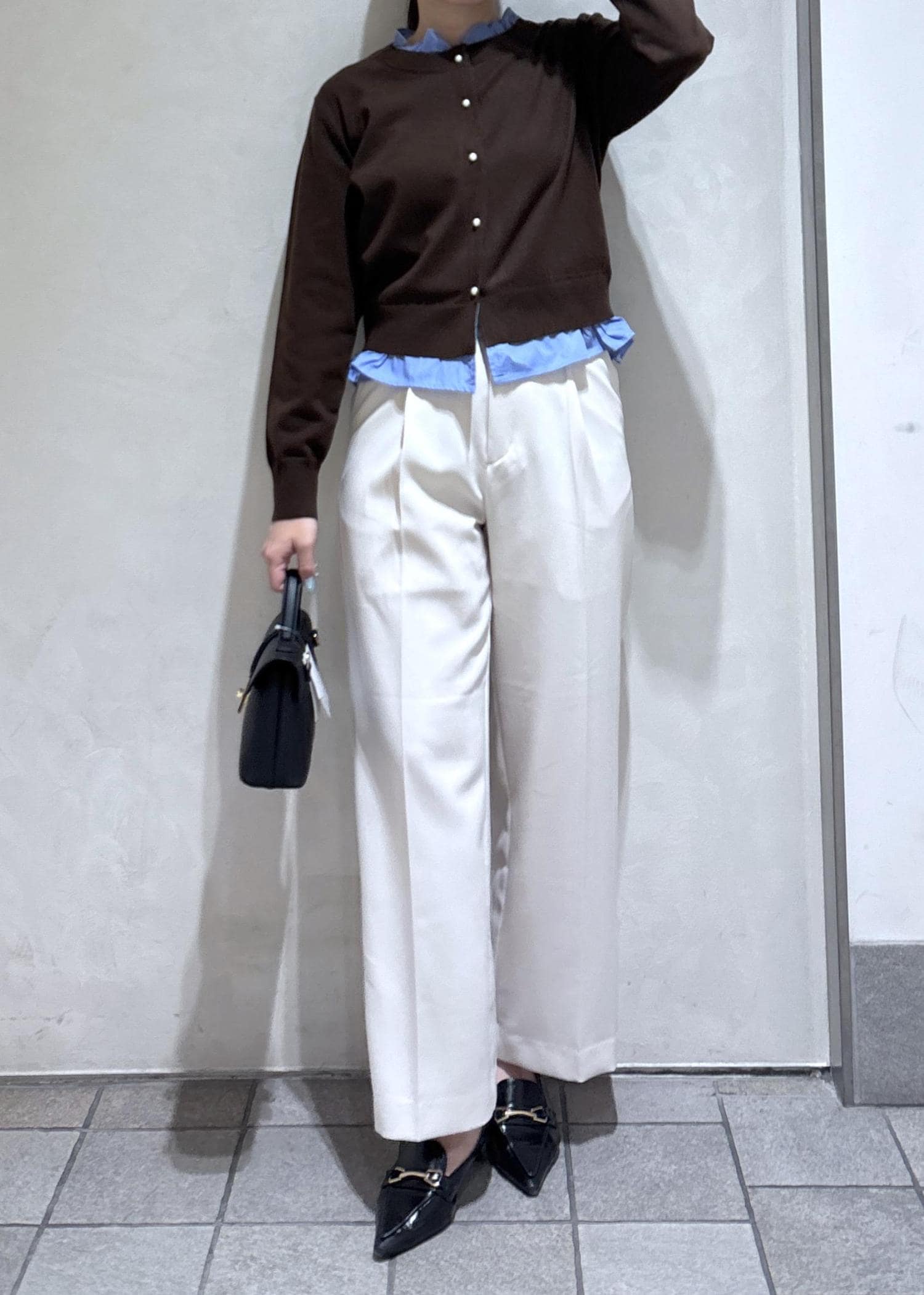 ホワイトのパンツで