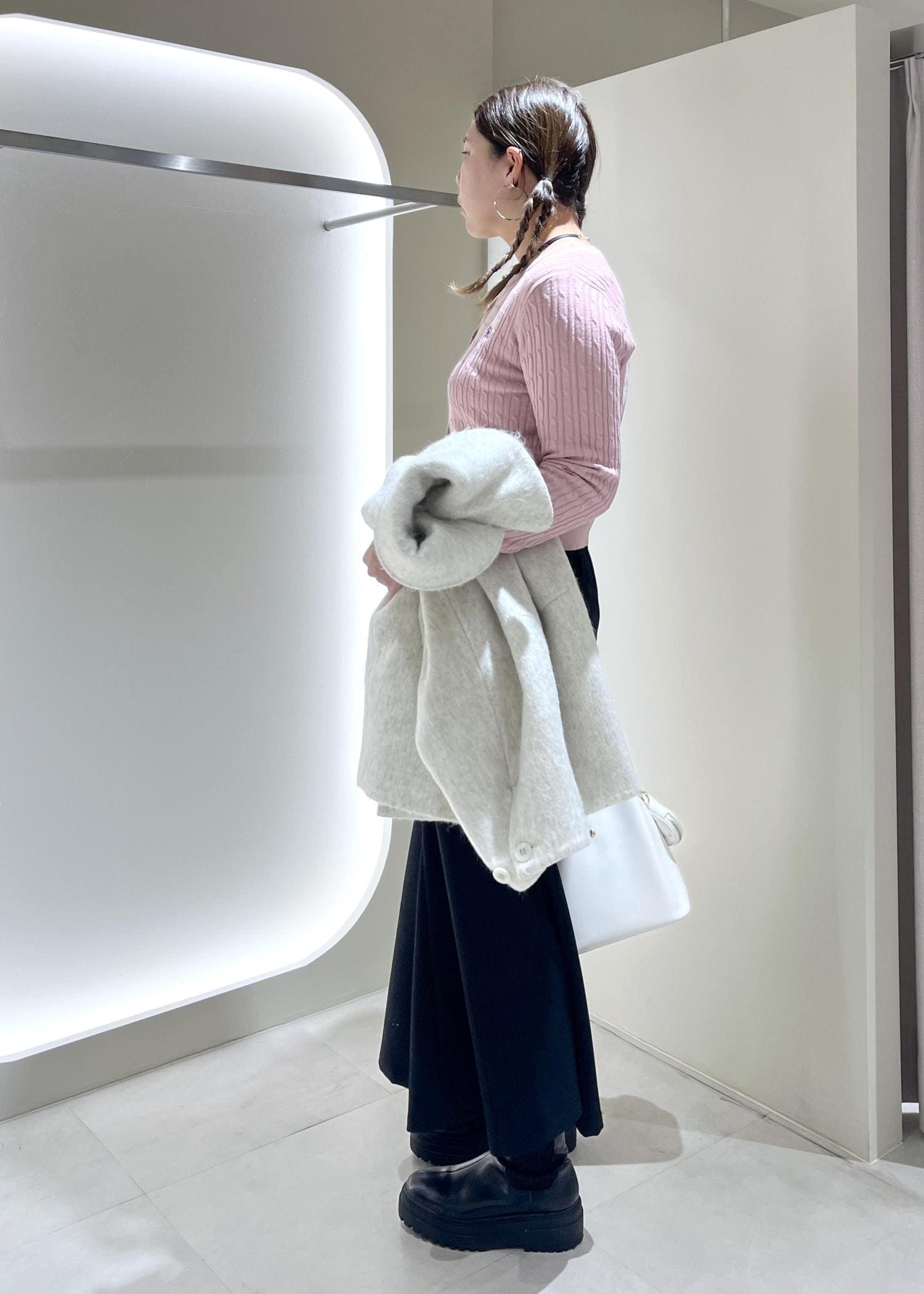 腕周りもゆるっとしているので肉厚なニットでもさっと羽織りやすいです。