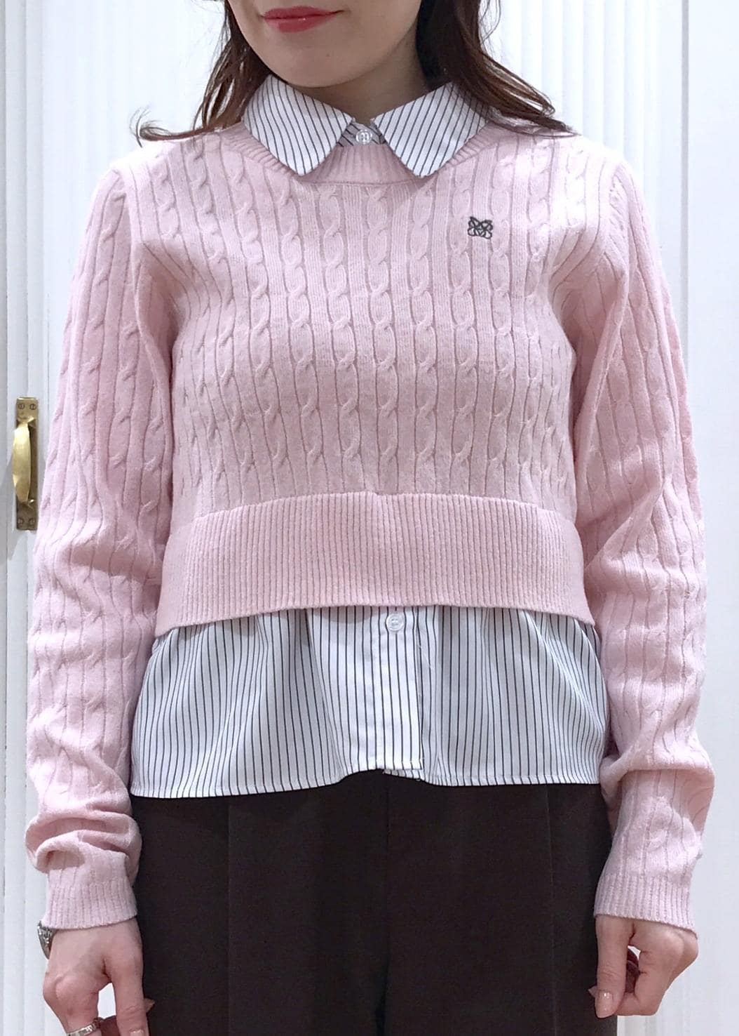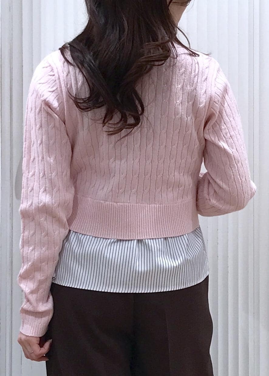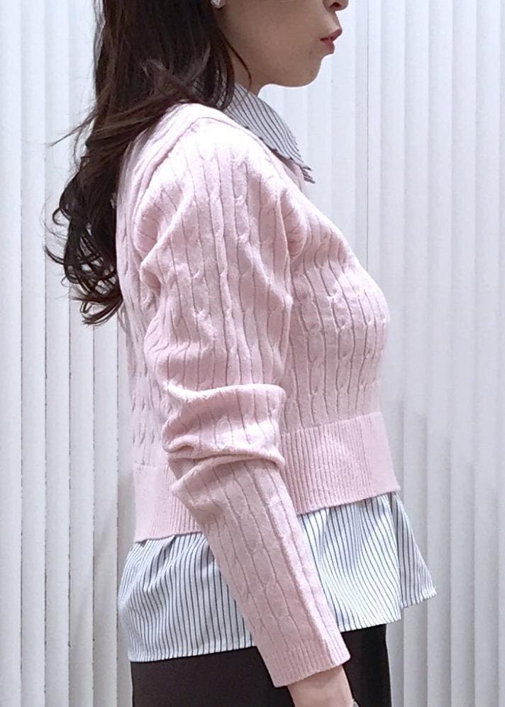 VIS【美得】ハイゲージケーブシャツドッキングプルオーバーピンク / F¥4,940レビュー着丈はお尻に少し掛かるくらいの長さです。