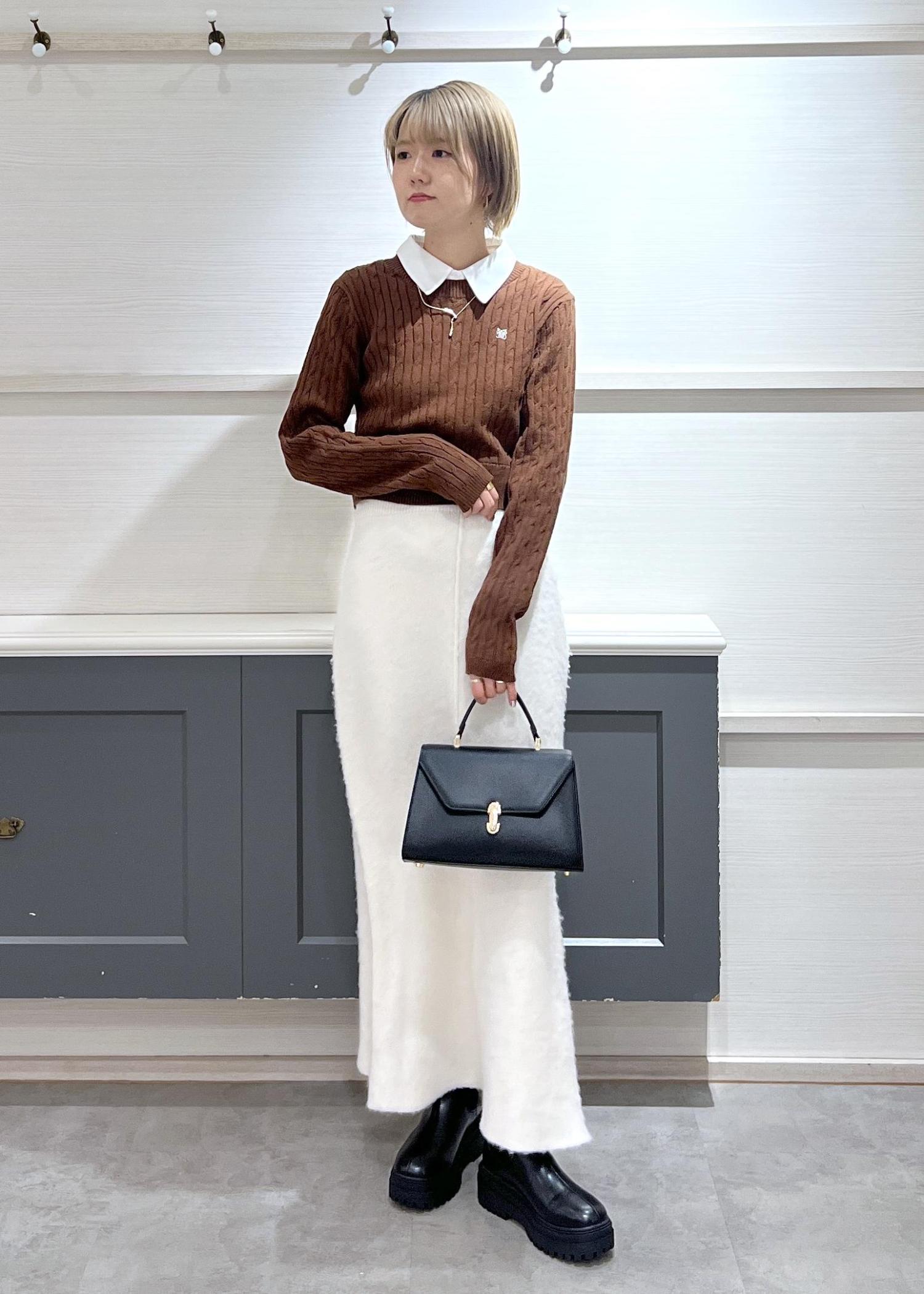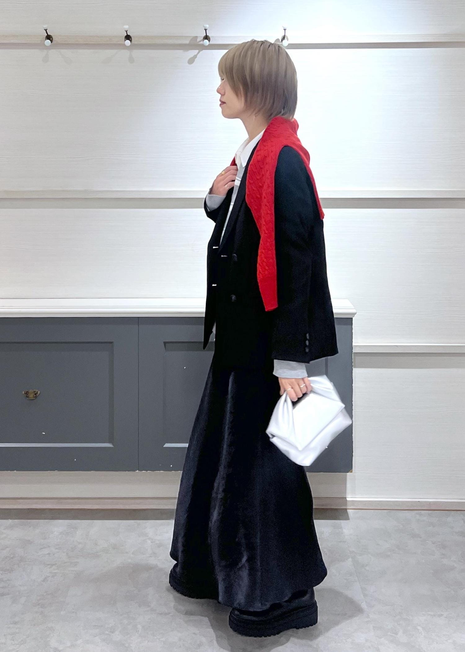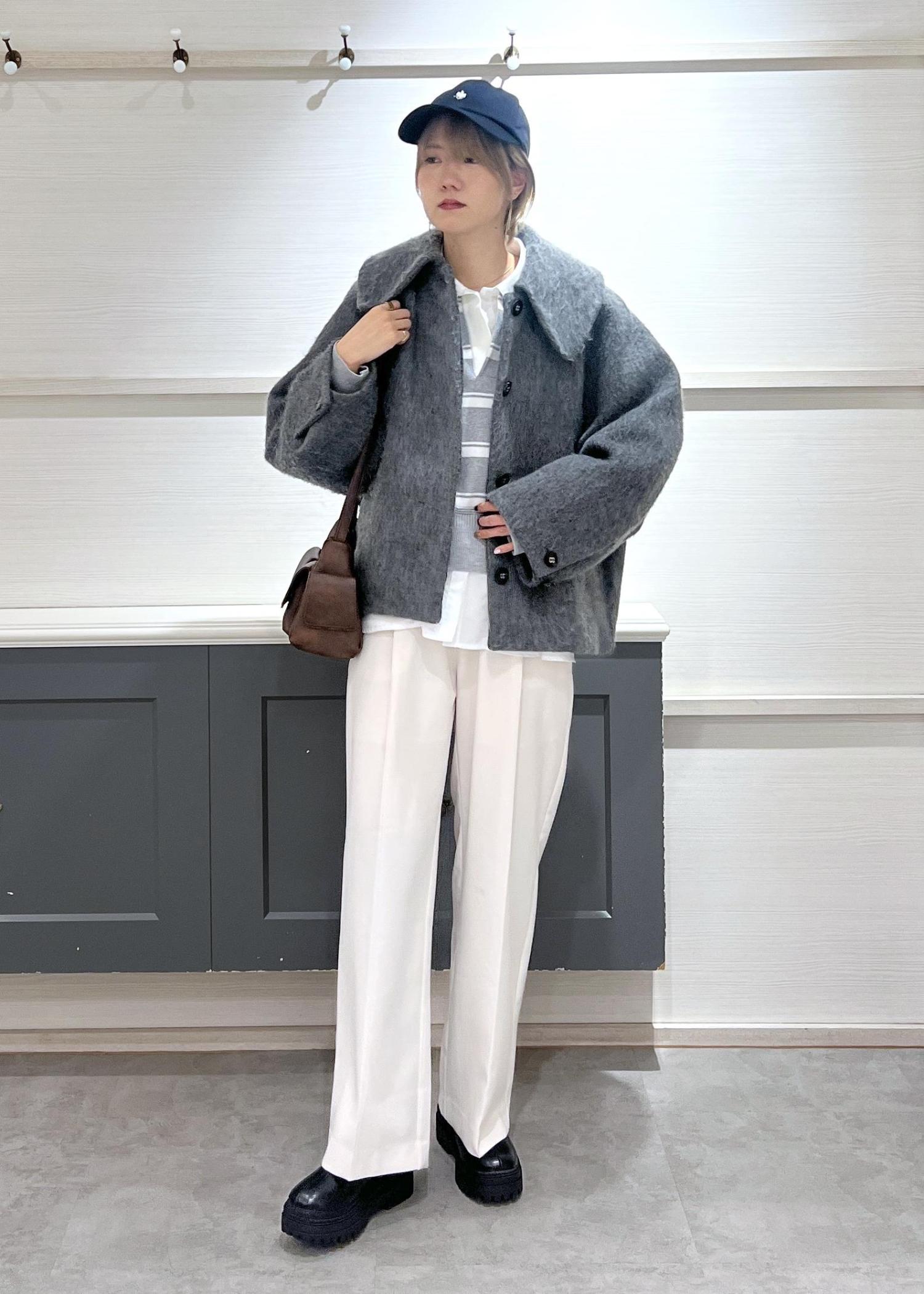 スカートでもパンツでも合わせやすいコンパクトな丈感でスッキリ合わせていただけます! -