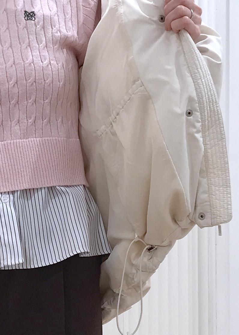ボリューム感がありつつも肩幅はセットインスリーブなので身体が大きく見えず、シルエットも綺麗ですよ。