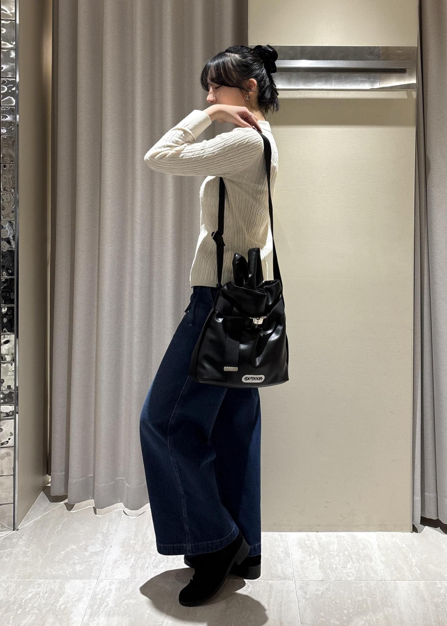 ベルトを調節することでフォルムの変化も楽しめます!またショルダーと手持ちの2WAY仕様で、気分やコーデに合わせて持ち替えられます◎