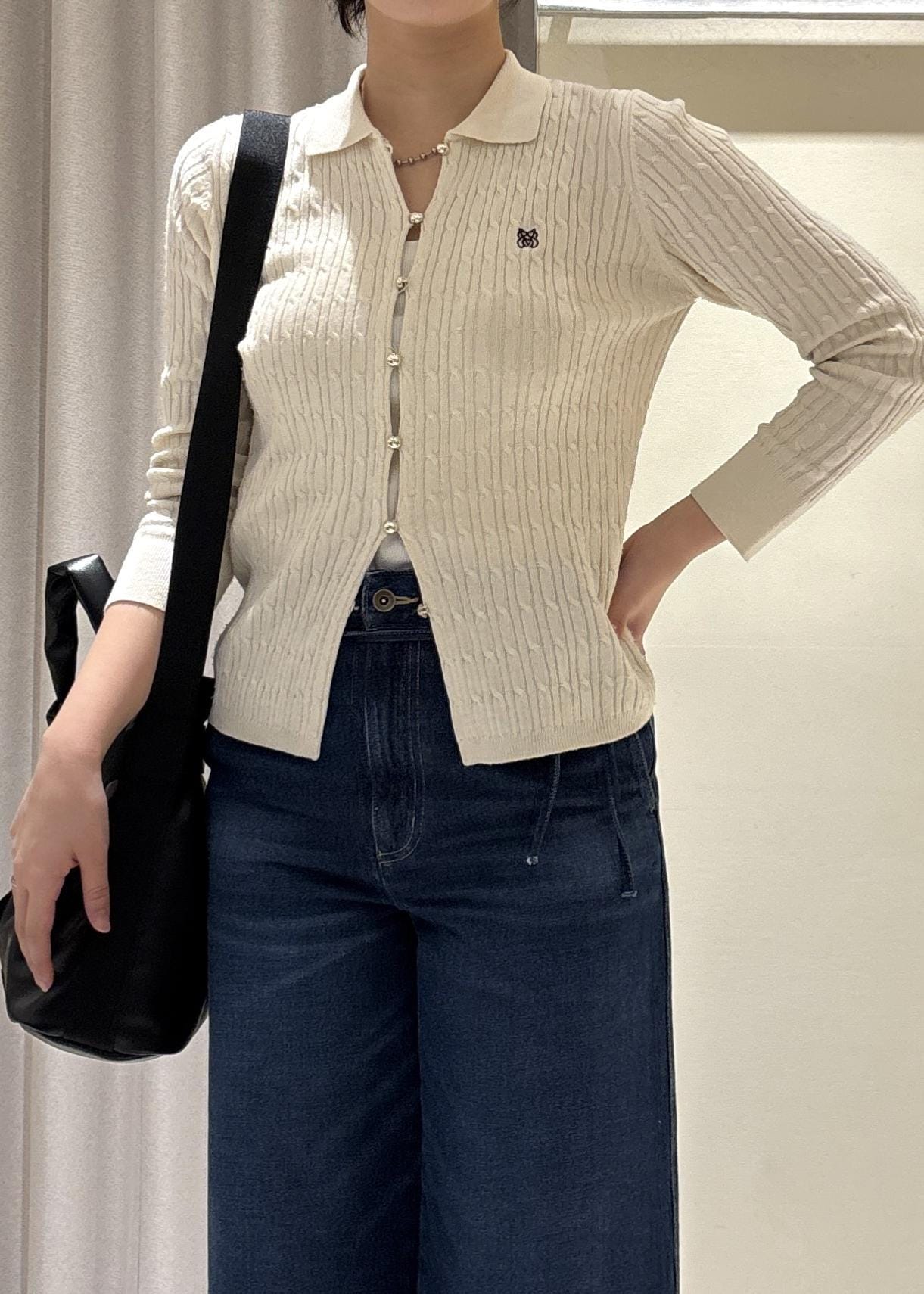 2BUY10%OFFVISポロ衿ケーブルカーディガンキナリ / F¥4,743レビューケーブル編みが可愛いカーディガン!