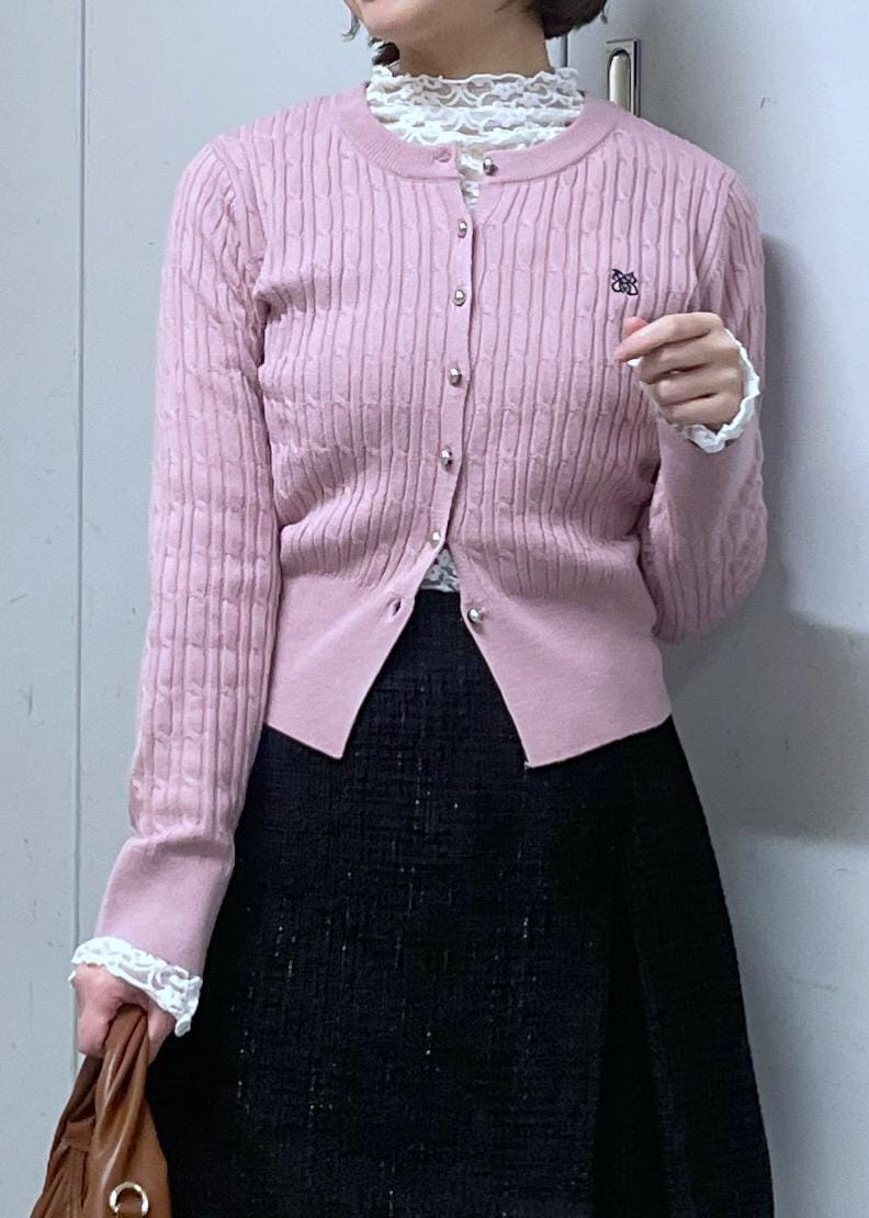 2BUY10%OFFVISケーブルコンパクトカーディガンピンク / F¥4,391レビュー細めのケーブル柄編みなので、モコモコせずスッキリ見えします。