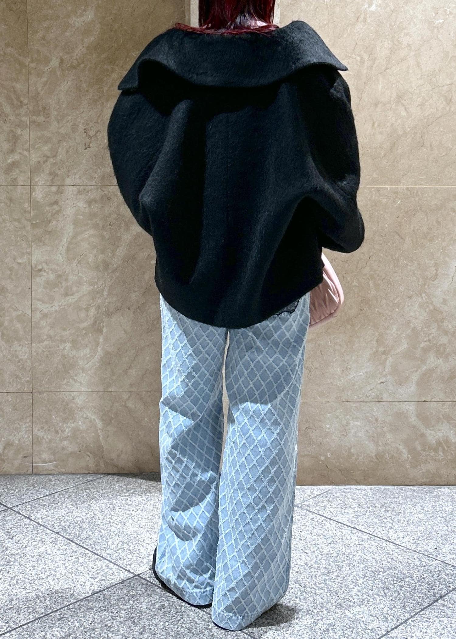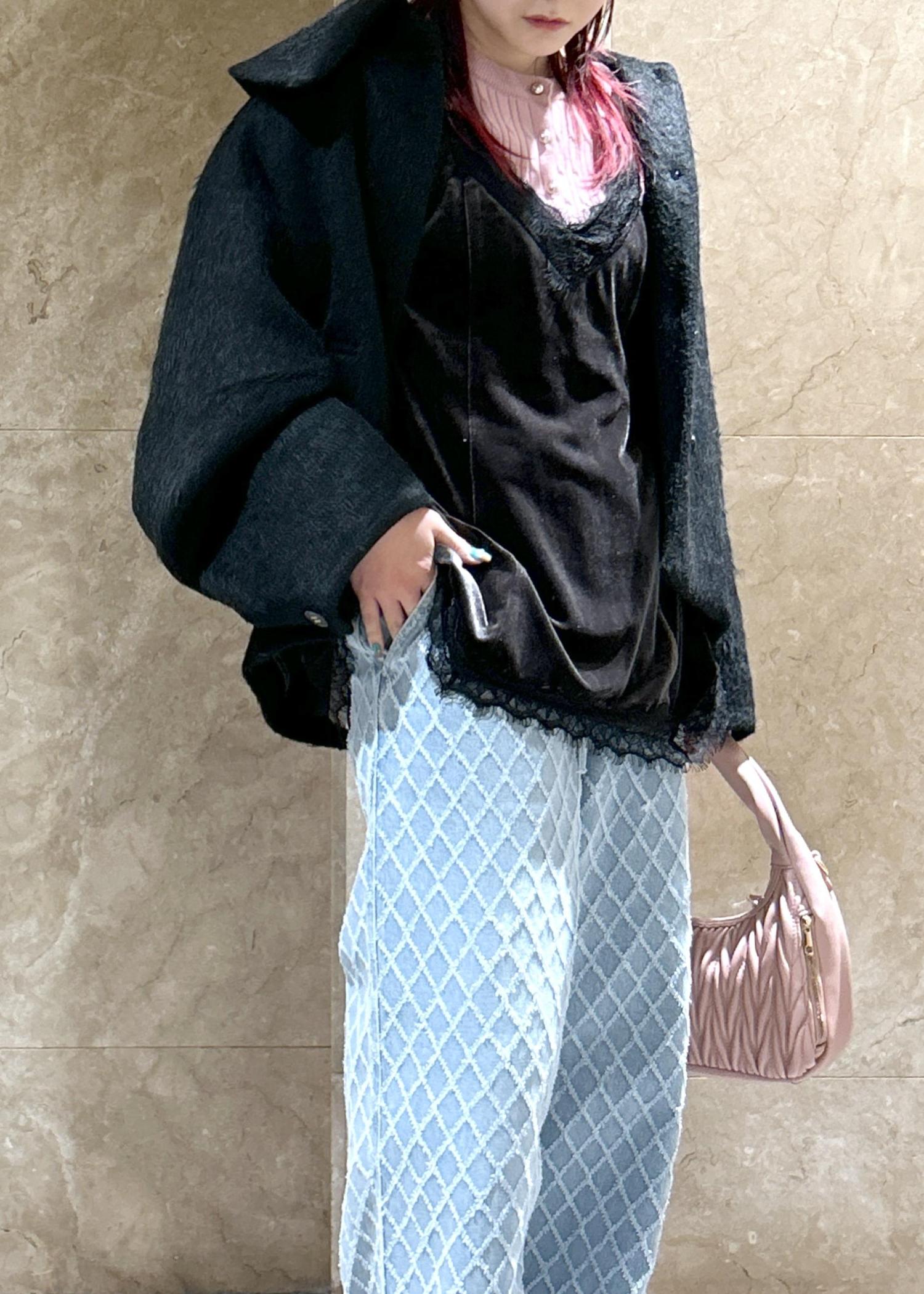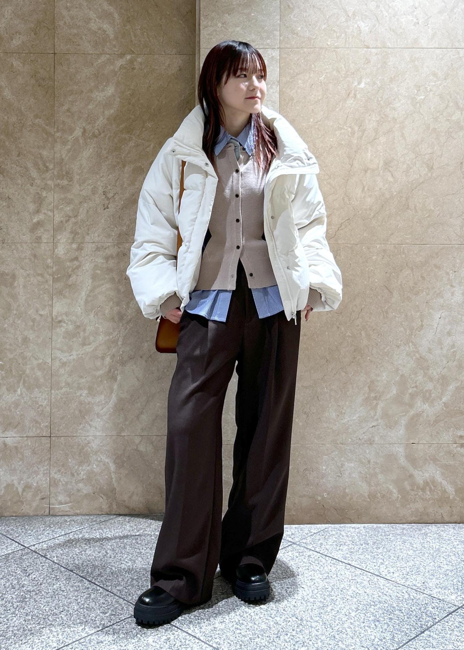 身幅は割とゆとりがあるので、ニットなどの上からでも着用可能です◎ -