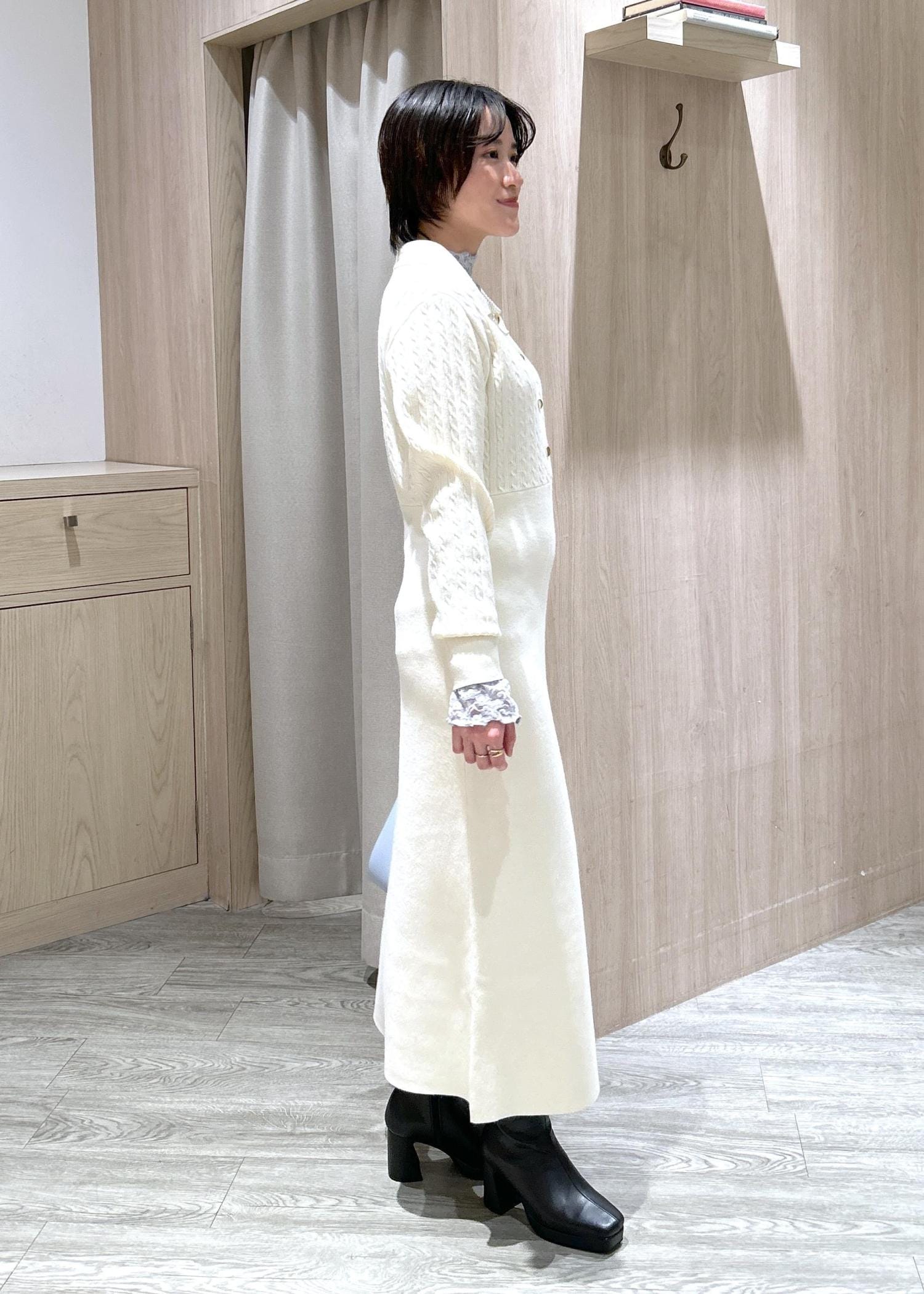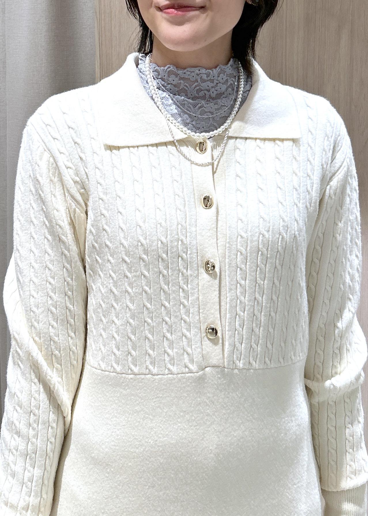 2BUY10%OFFVISポロケーブルモチモチニットワンピースオフホワイト / F¥7,119レビュー身長155cm、足首が見える長さです。