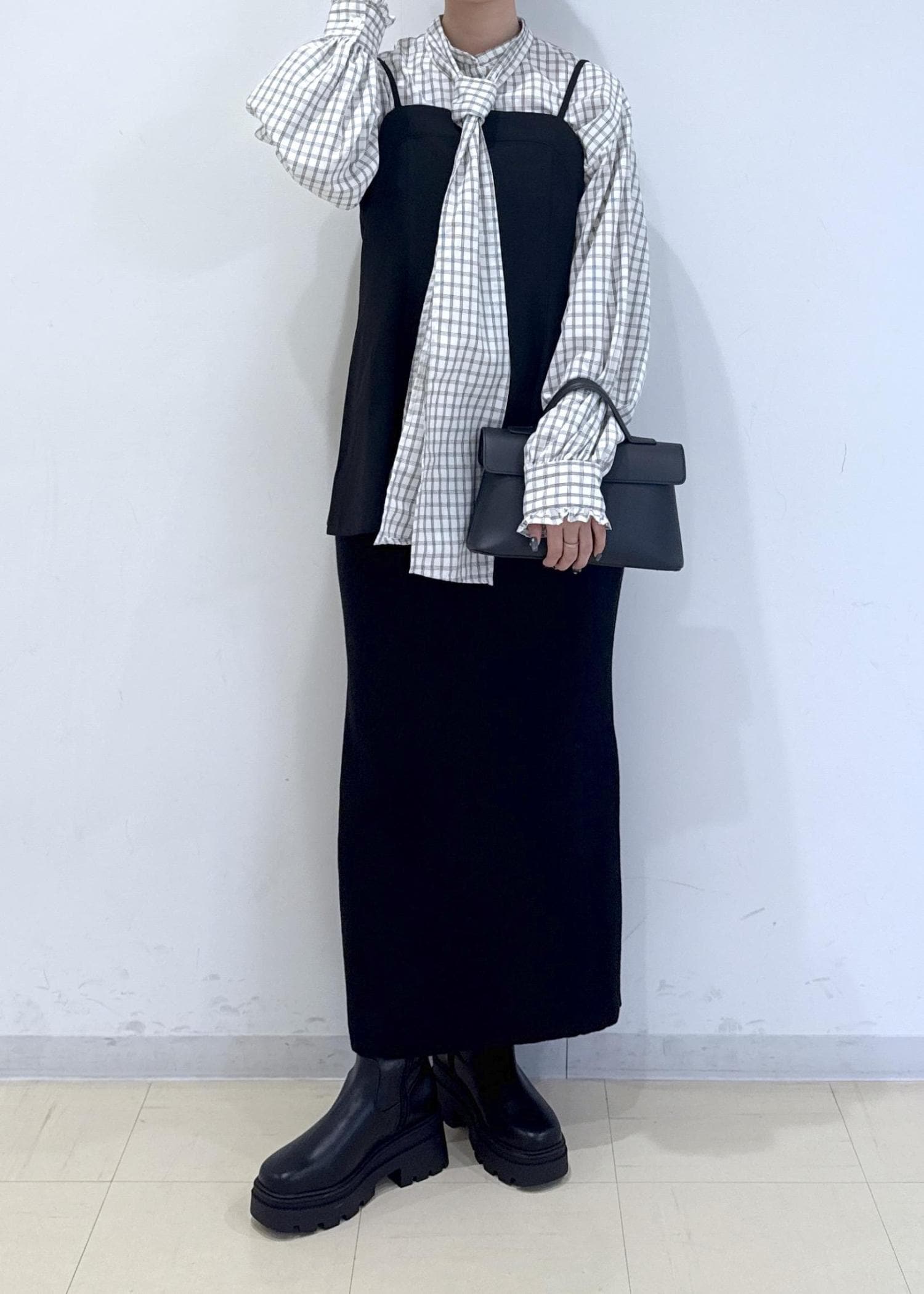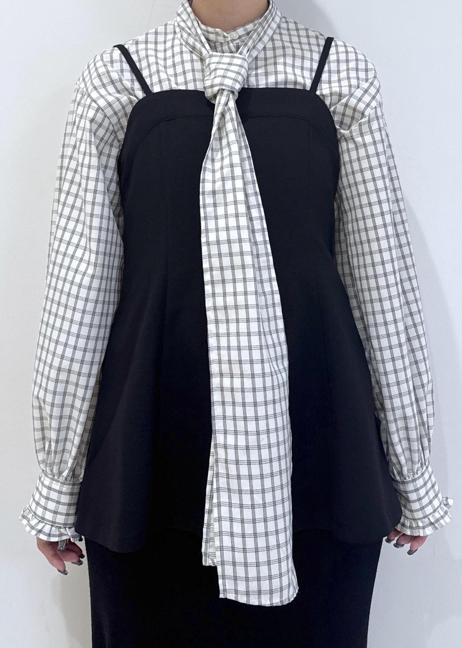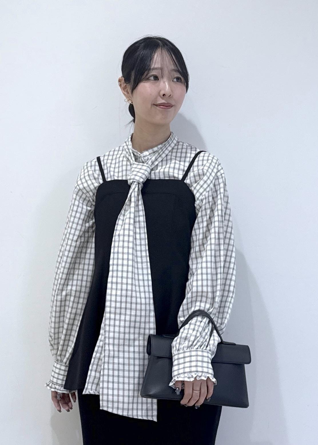 シャツのボウタイ、リボンだと甘すぎる…と思ったのでネクタイ巻にしてみました♪