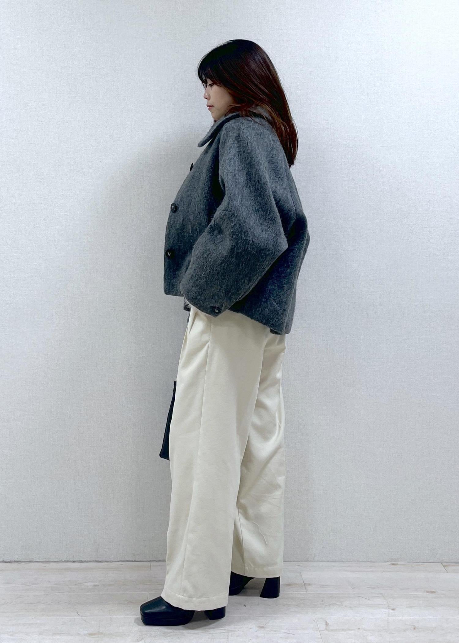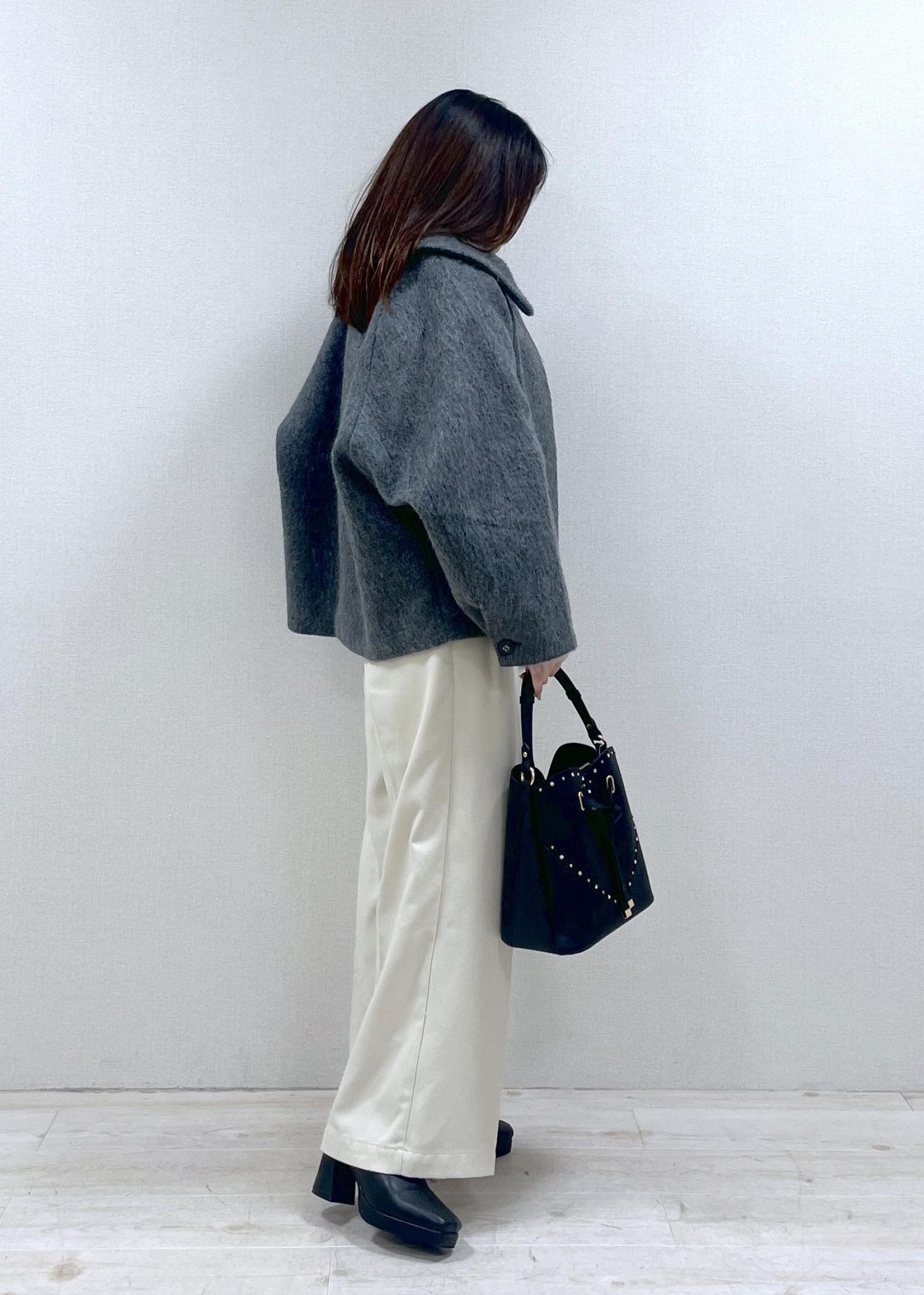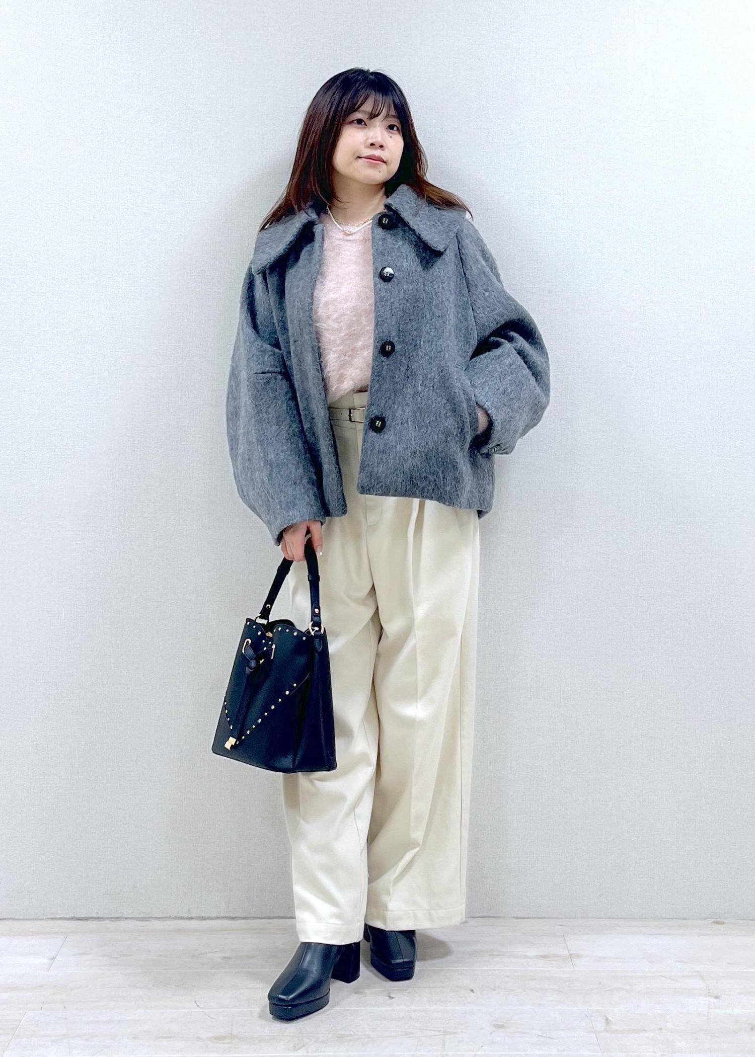 VIS【アウター総選挙1位】ビッグカラーモモンガシャギーショートコートグレー / S¥8,791レビューオーバーサイズで腕周りや身幅に余裕があり、厚手のニットやボリュームスリーブのインナーを着れるくらいのゆとりがあります。