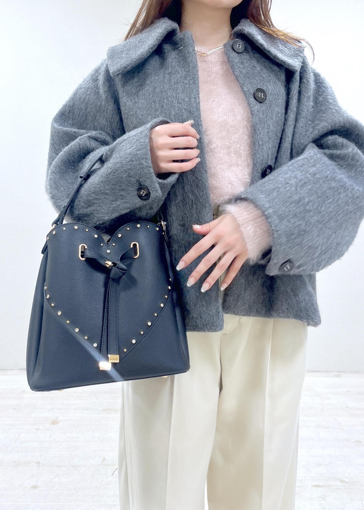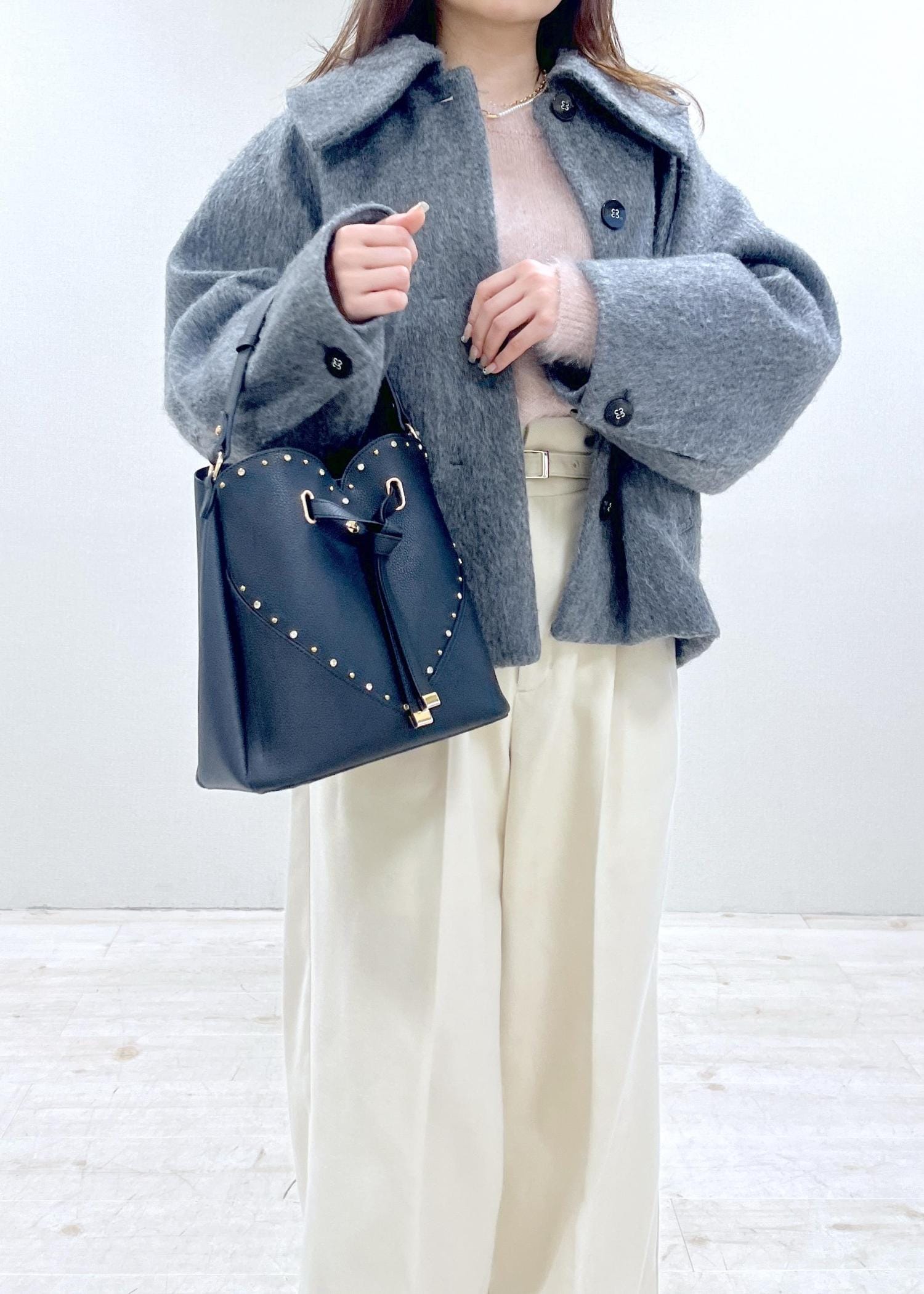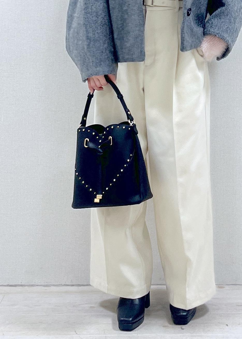 VISラインストーン&スタッズハートカットバッグブラック / F¥7,909レビュー縦にペットボトルが入るサイズ感です。