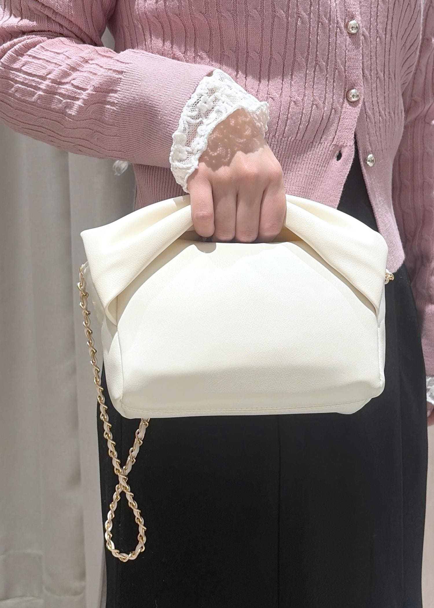 ギャザーのデザインが華やかなのでシンプルなコーデに合わせると映えます♪ -
