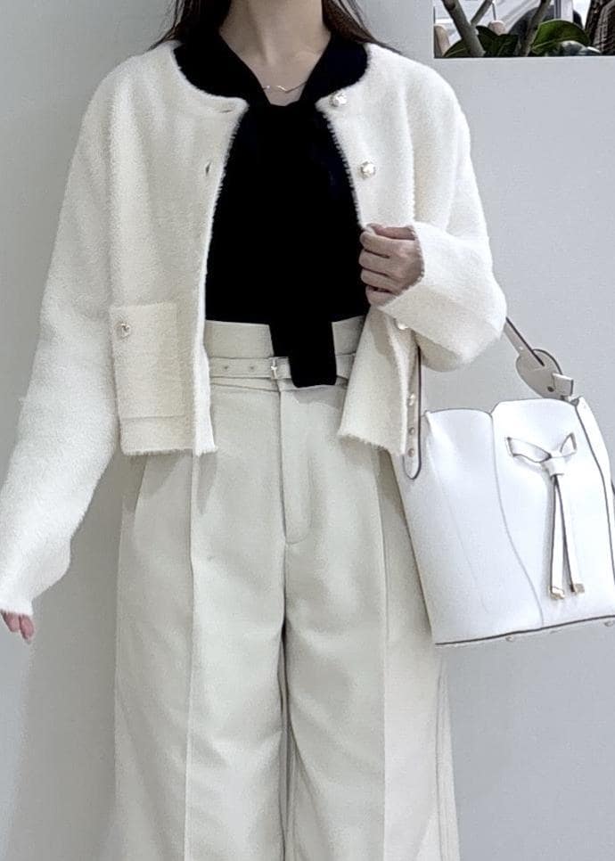 VIS接結ミニフェザーニットジャケットカーディガン/一部WEB限定カラーオフホワイト / F¥6,919レビューふわふわの触り心地で、毛足も短いので毛玉にもなりにくく、軽いです◎
