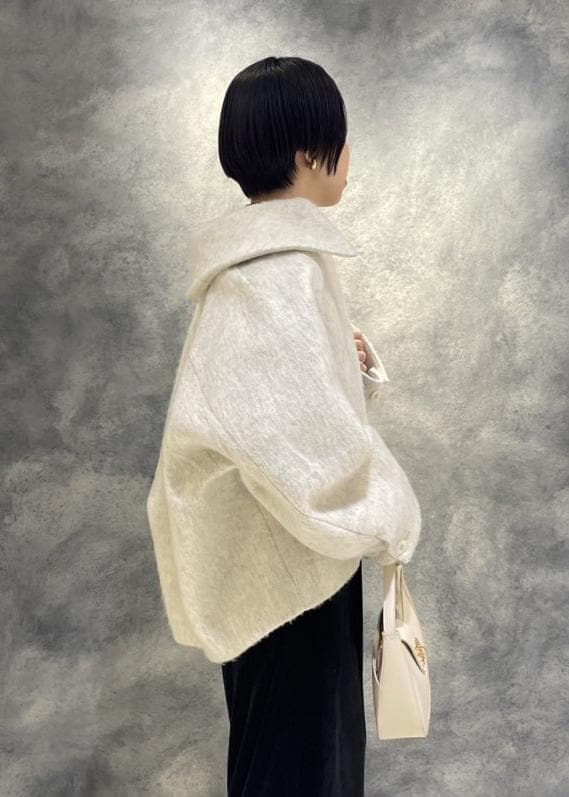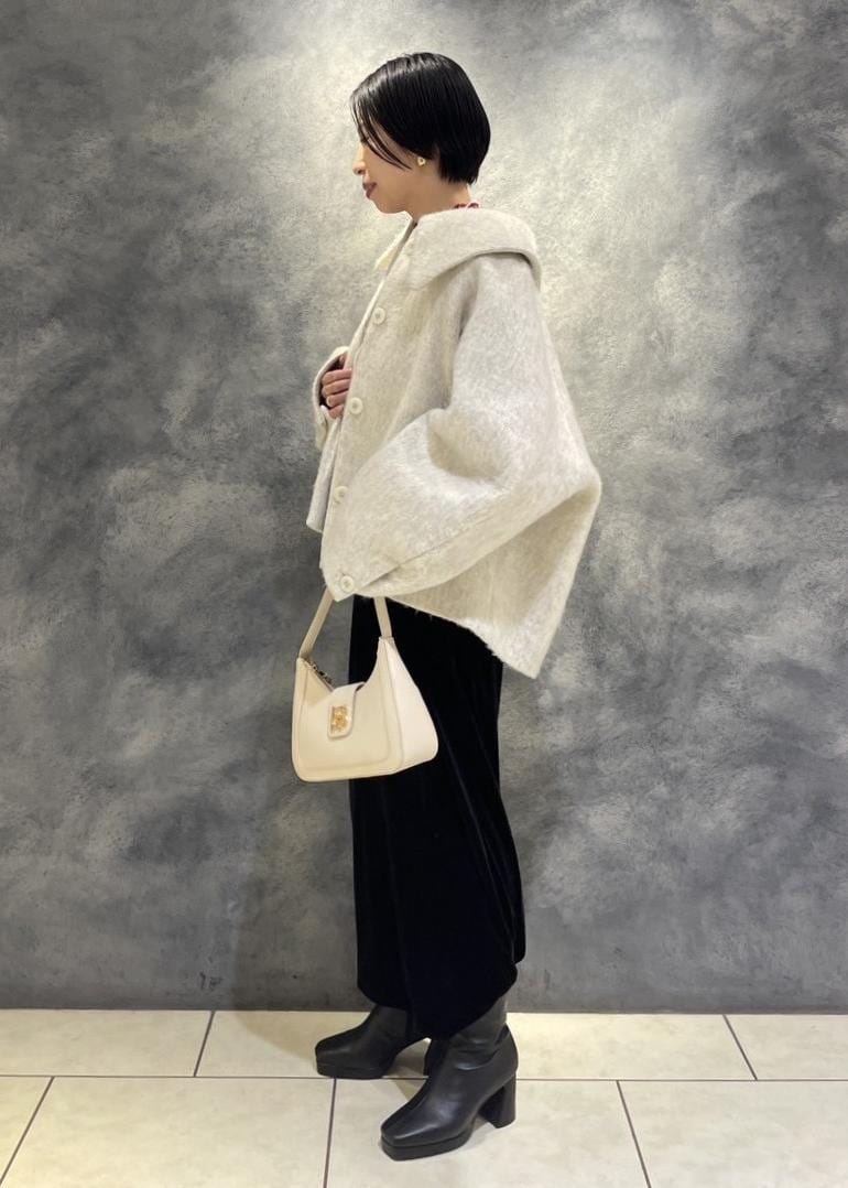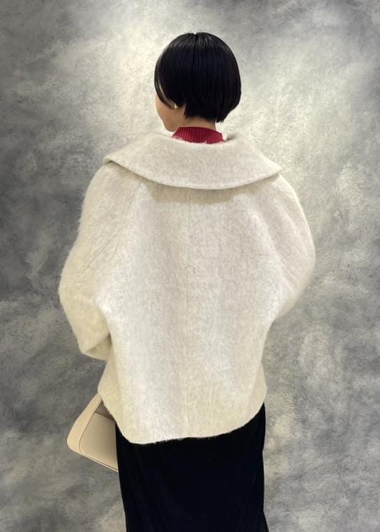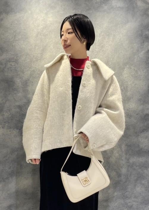 VIS【アウター総選挙1位】ビッグカラーモモンガシャギーショートコートオフホワイト / S¥8,791レビューゆったりしたシルエットで、厚手のニットも余裕で着れるサイズ感です。