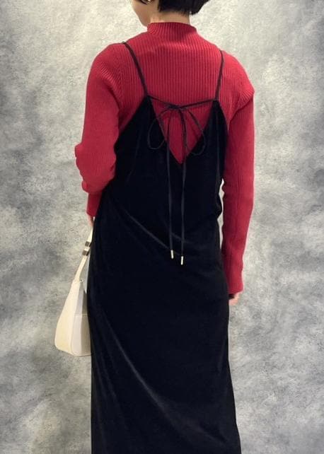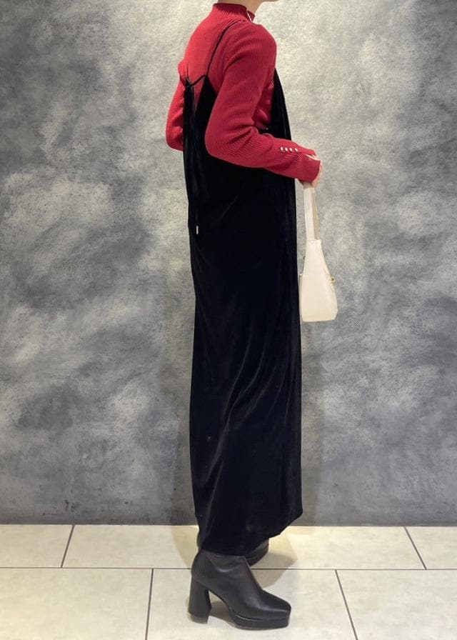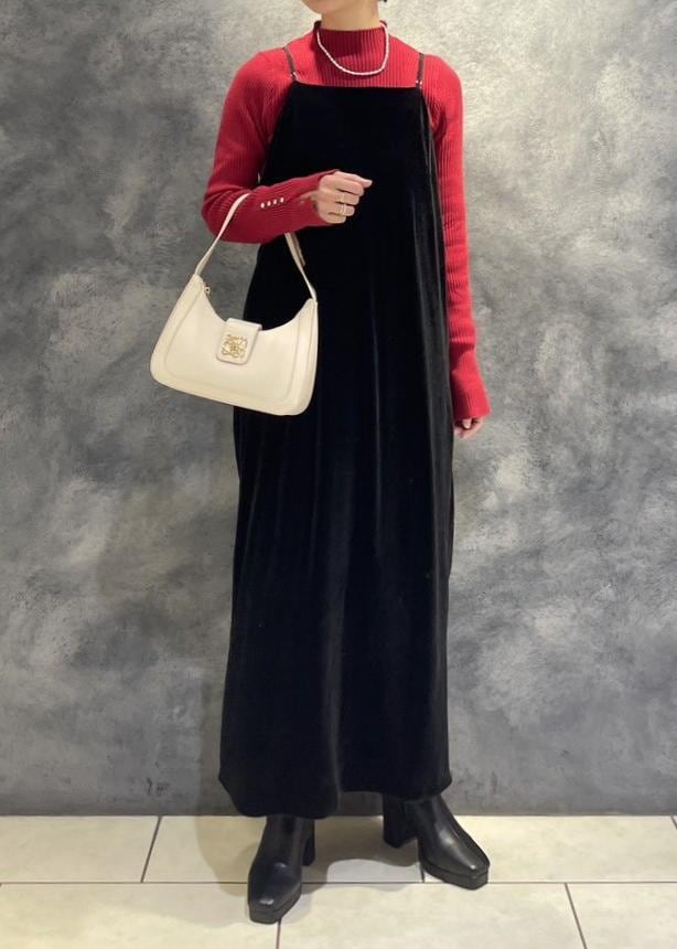 VIS刺繍アソートベロアキャミワンピース/2WAYブラック / F¥8,899レビューベロア素材が大人顔のキャミワンピースです。