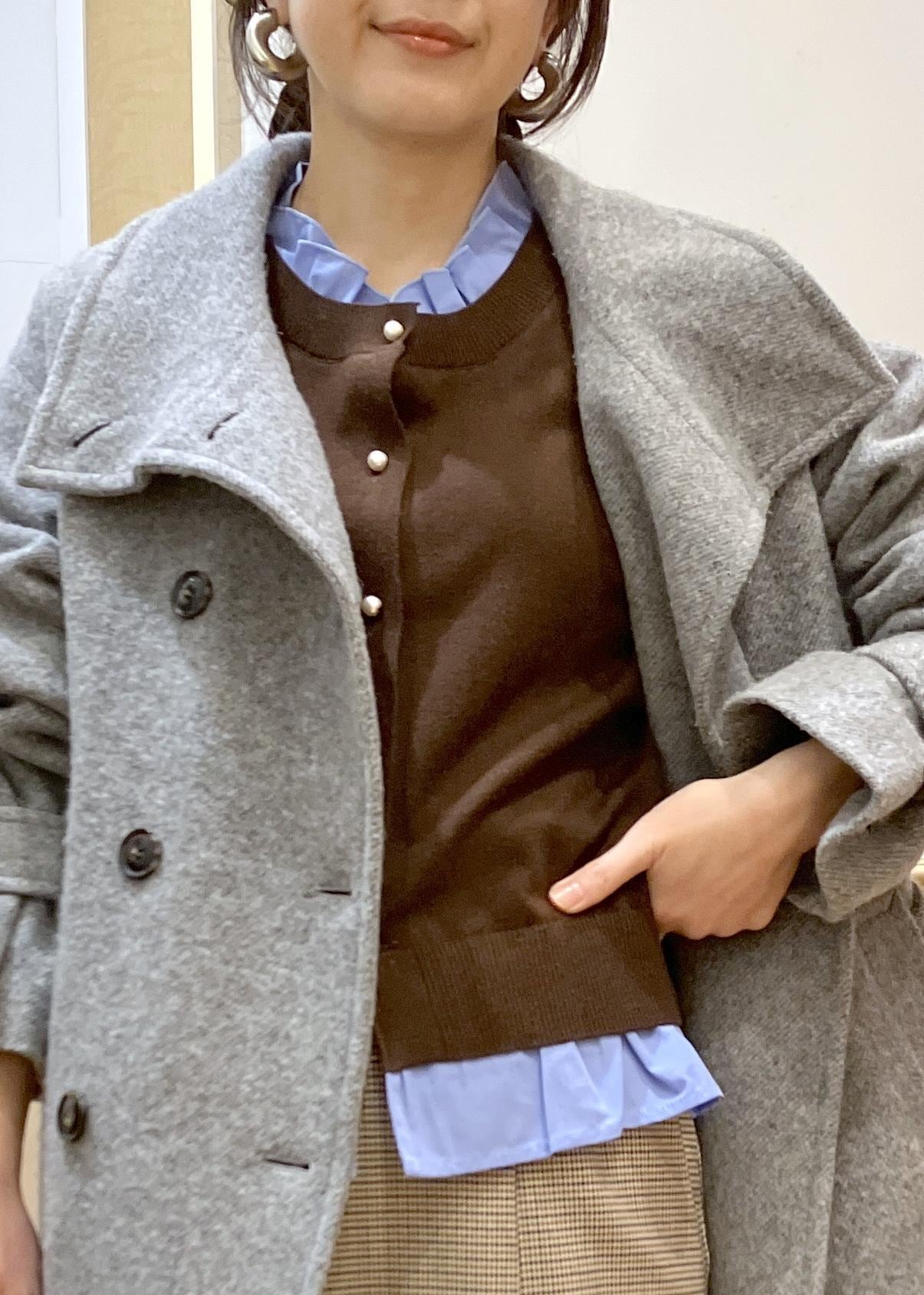 VIS【美得】フリル襟ドッキングニットカーディガントップスダークブラウン / F¥5,929レビュー国産ウールが68%しっかり入ったあったかくて軽量のロングコートです。