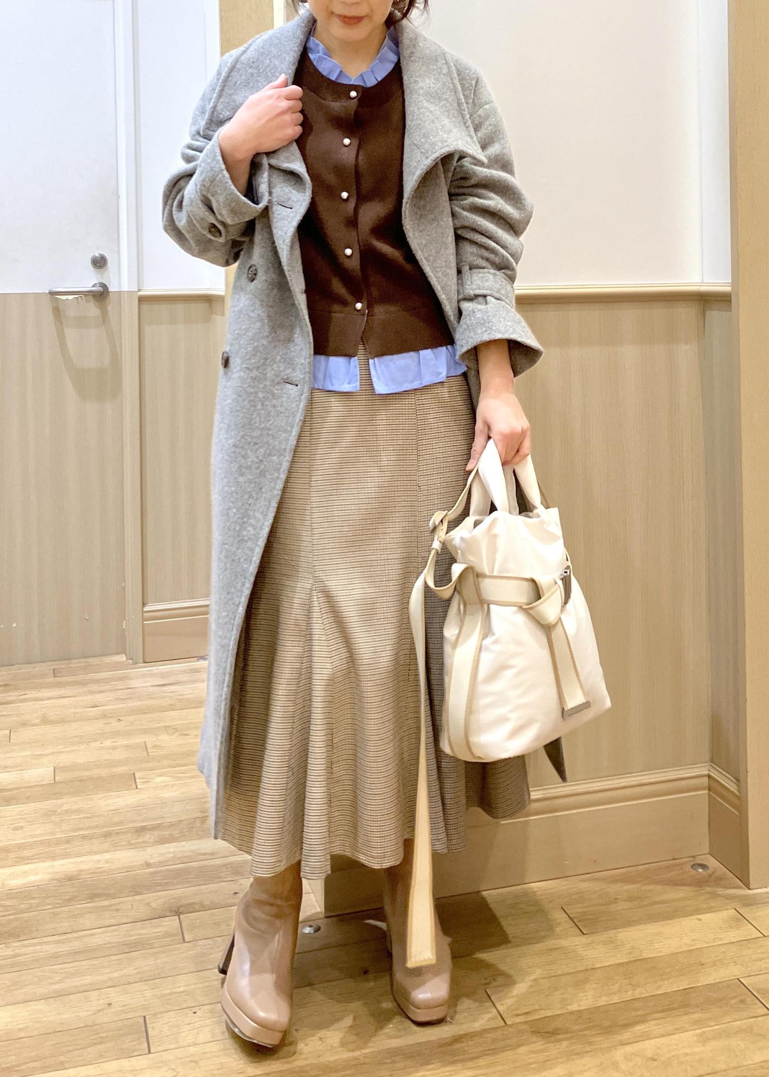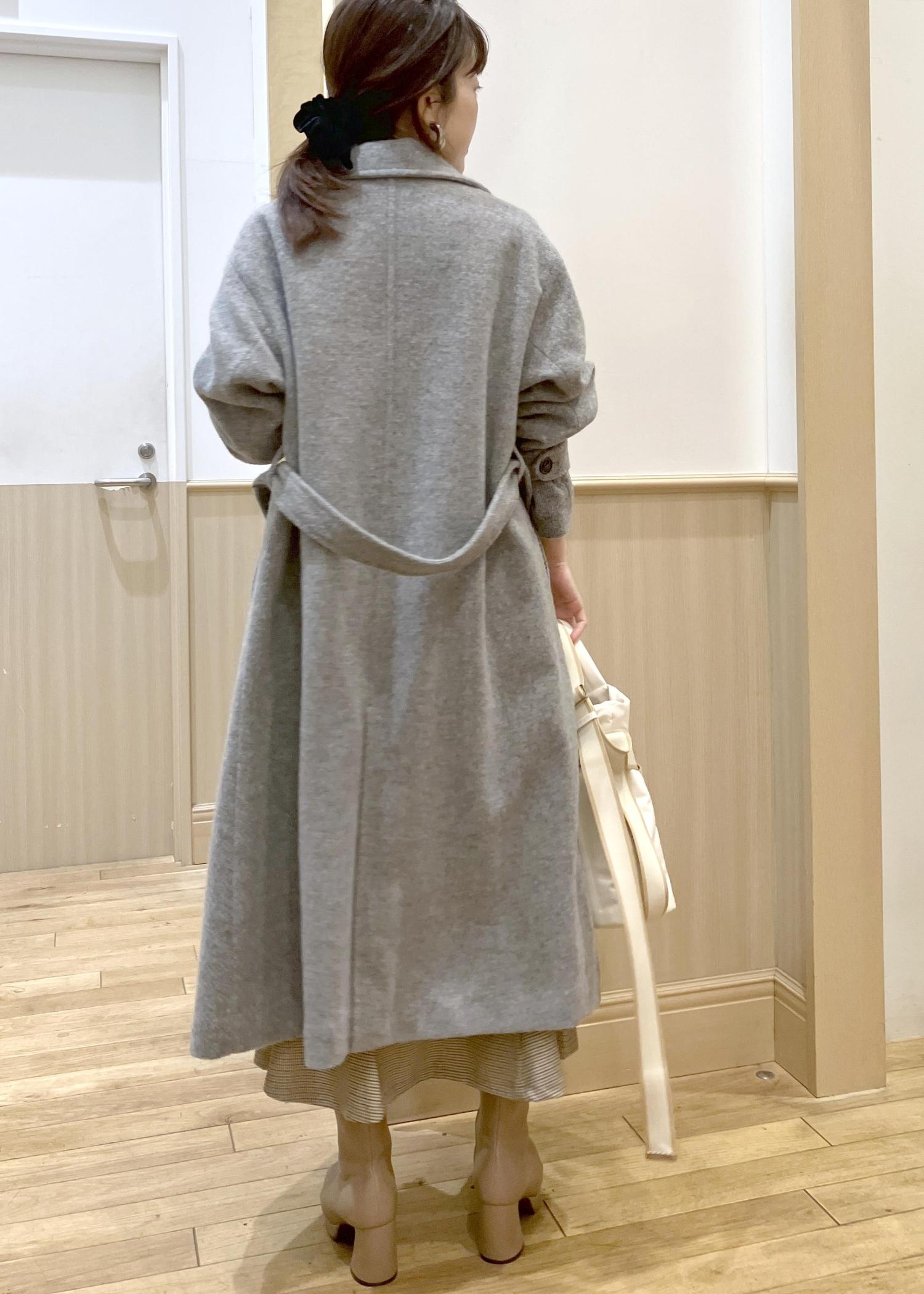 ロングコートはしっかり長めの着丈なので羽織るだけで大人女子のきちんと感◎ですよ。