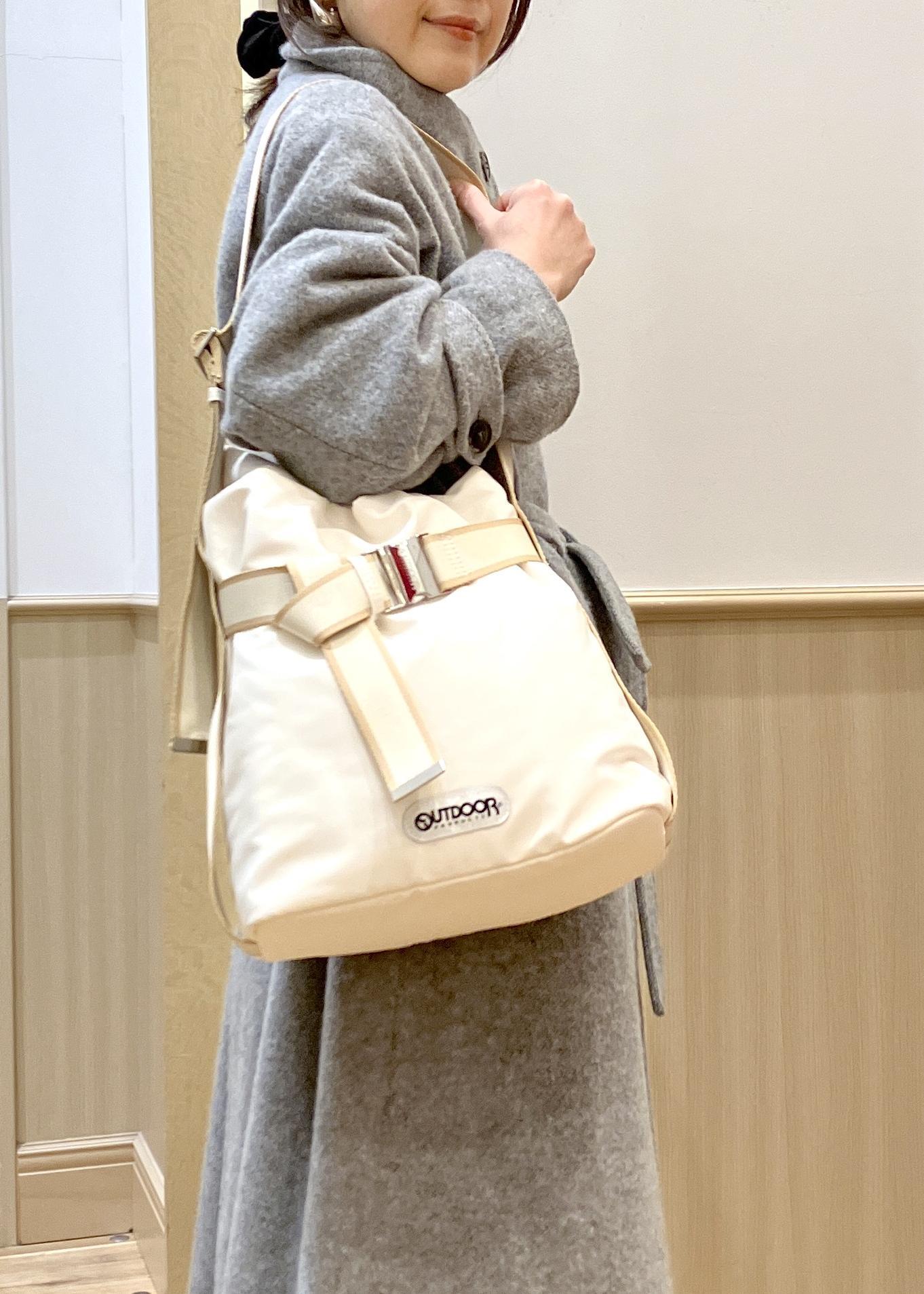 フロント部分のバックルデザインがカワイイ人気のbagです。軽くて柔らかい素材で持ちやすいです。