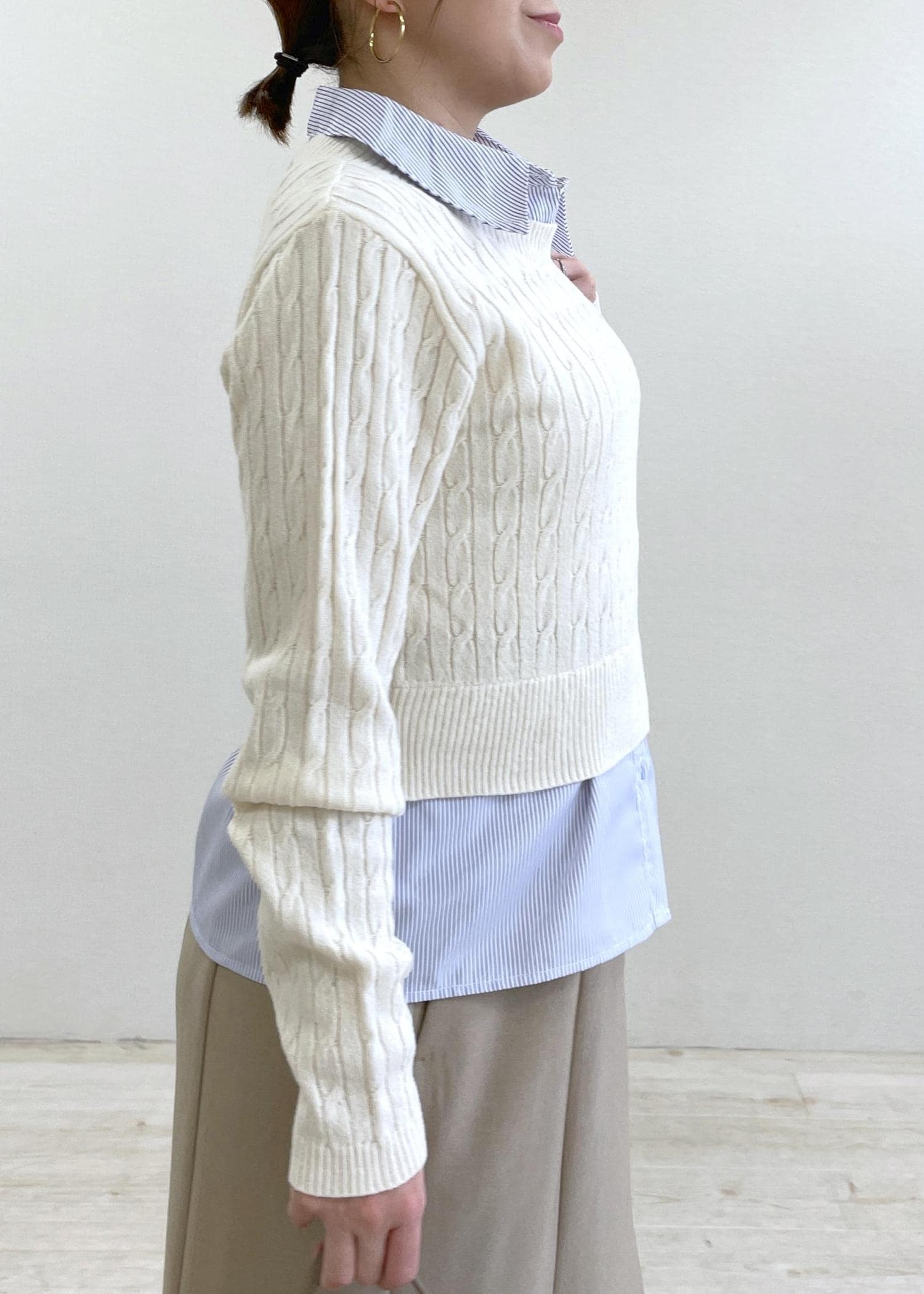 2BUY10%OFFVIS【美得】ハイゲージケーブシャツドッキングプルオーバーキナリ / F¥4,940レビュー150cmでFサイズ着用です。