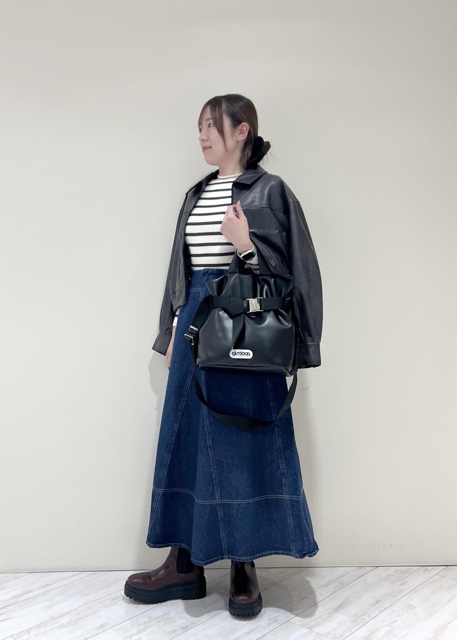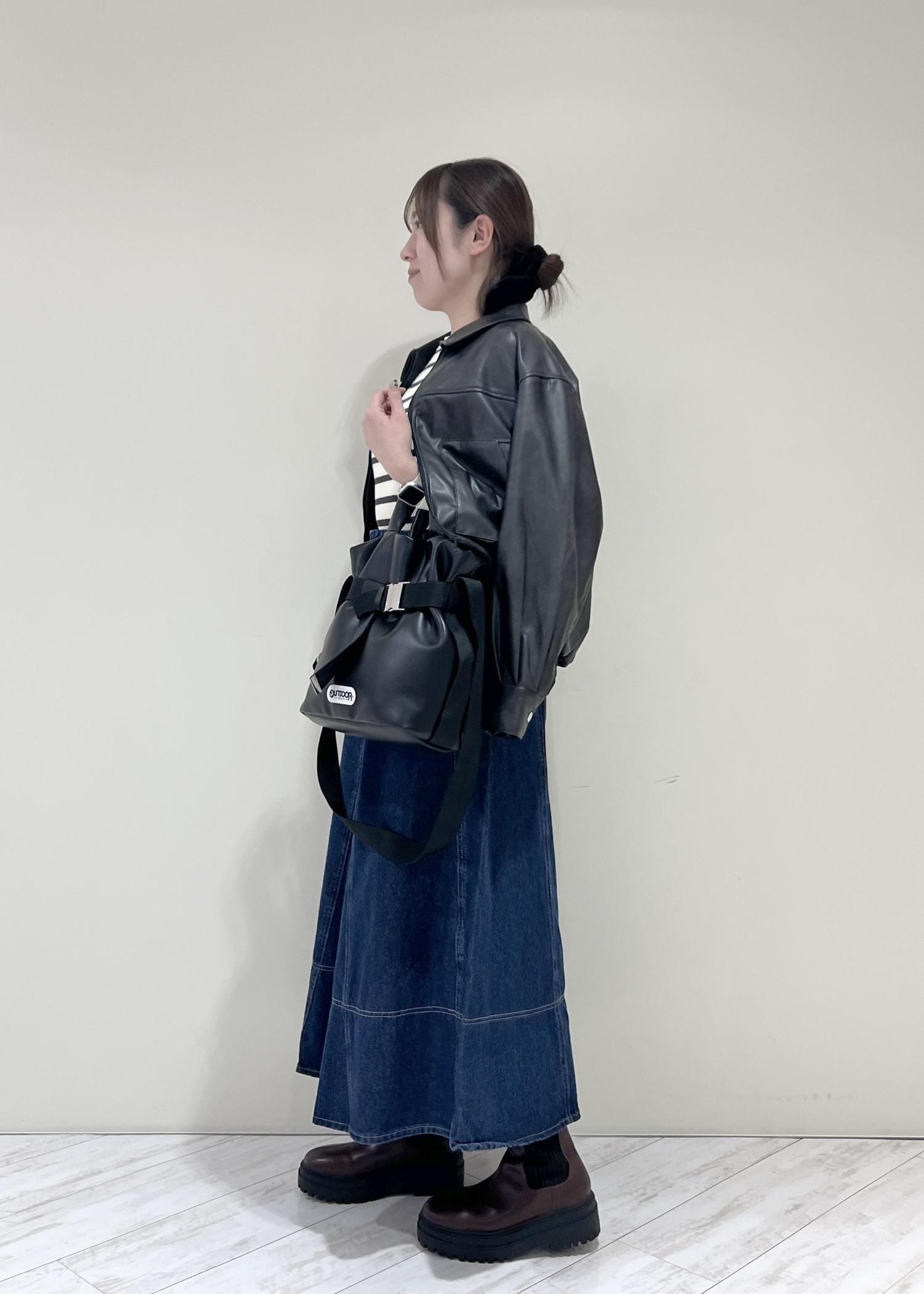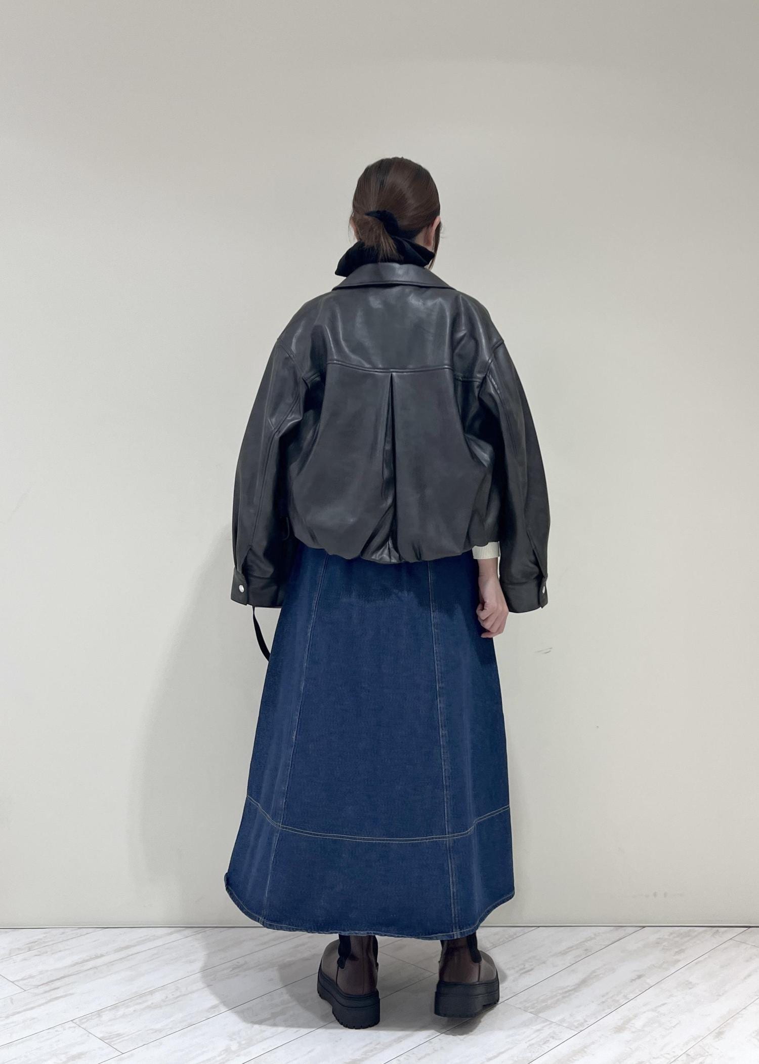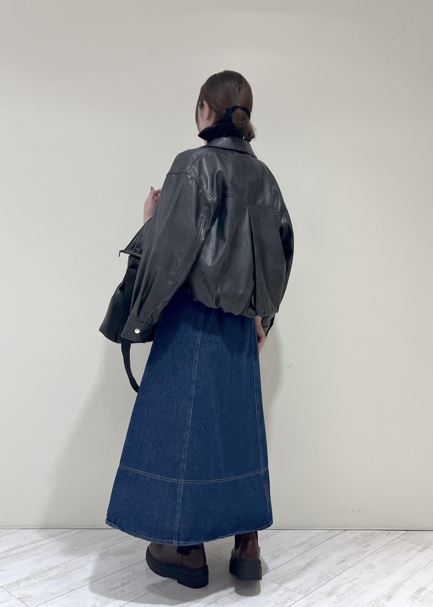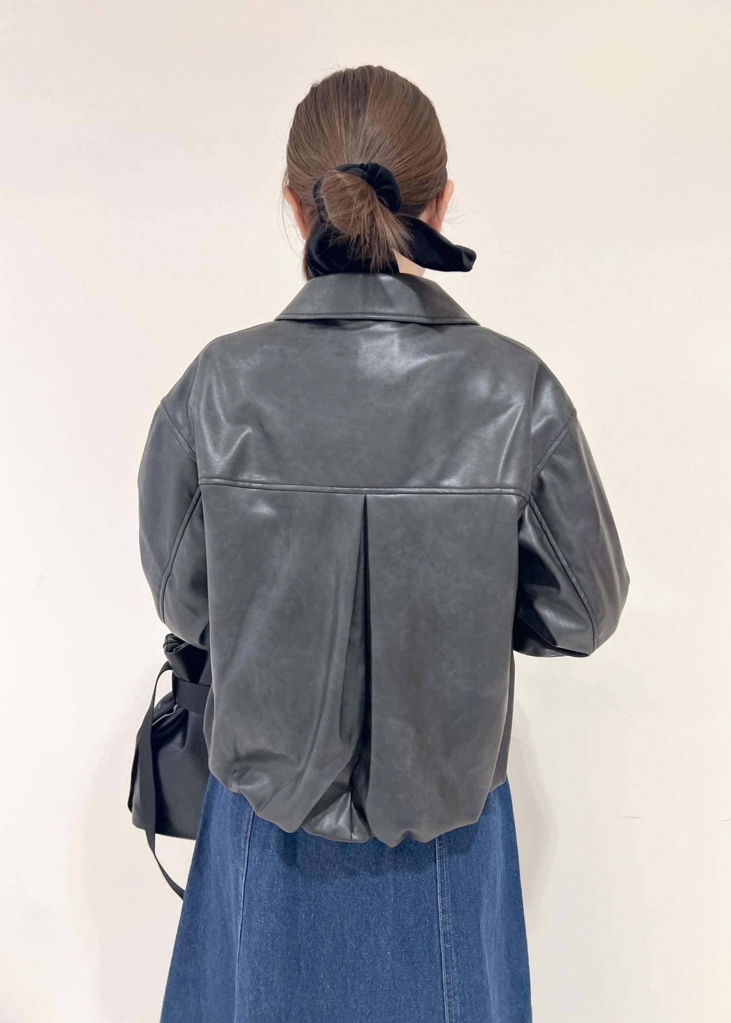VISアウトポケット合皮ブルゾンブラック / F¥10,989レビューくしゅっとした裾と丸みのあるシルエットで柔らかい印象になります!程よくゆとりのあるサイズ感で中にも着込めます◎