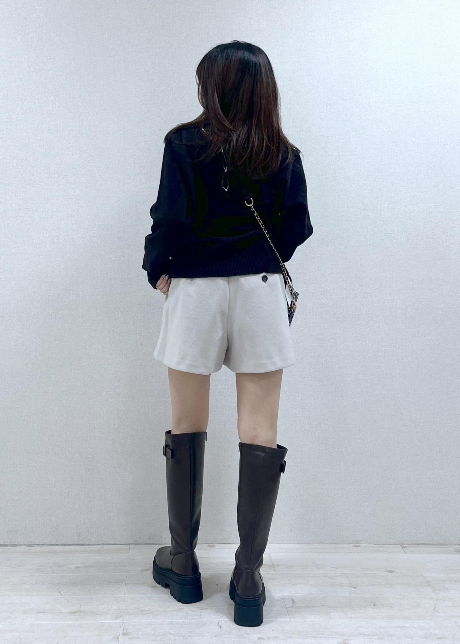 サイズは体のラインは拾わないくらいで、着丈が腰あたりですっきりしているのでアウトスタイルができます。