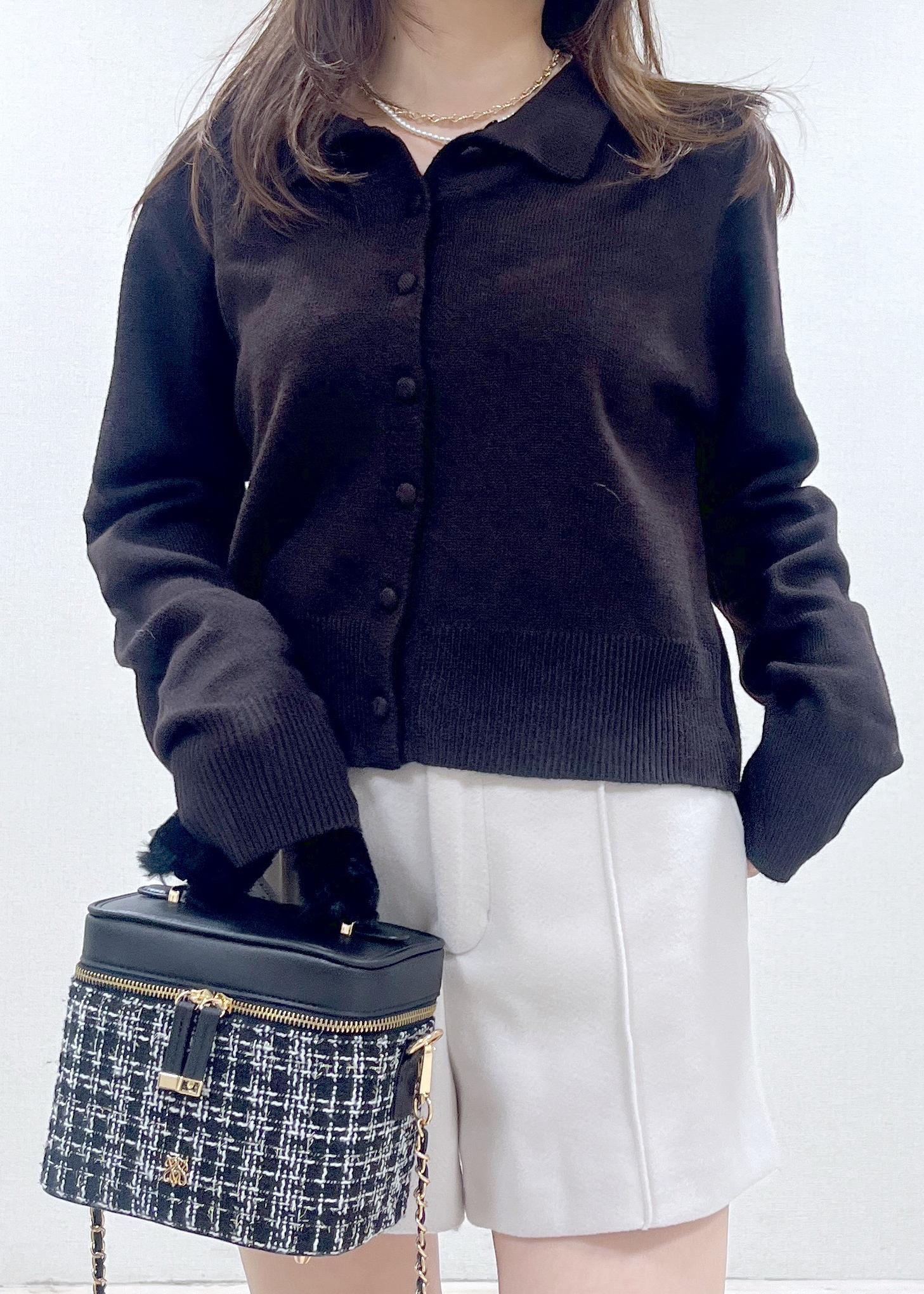 VIS衿ファー取り外しカーディガンダークブラウン /¥6,589レビューファーを取り外すとベーシックなポロニットになるので着回しができます。