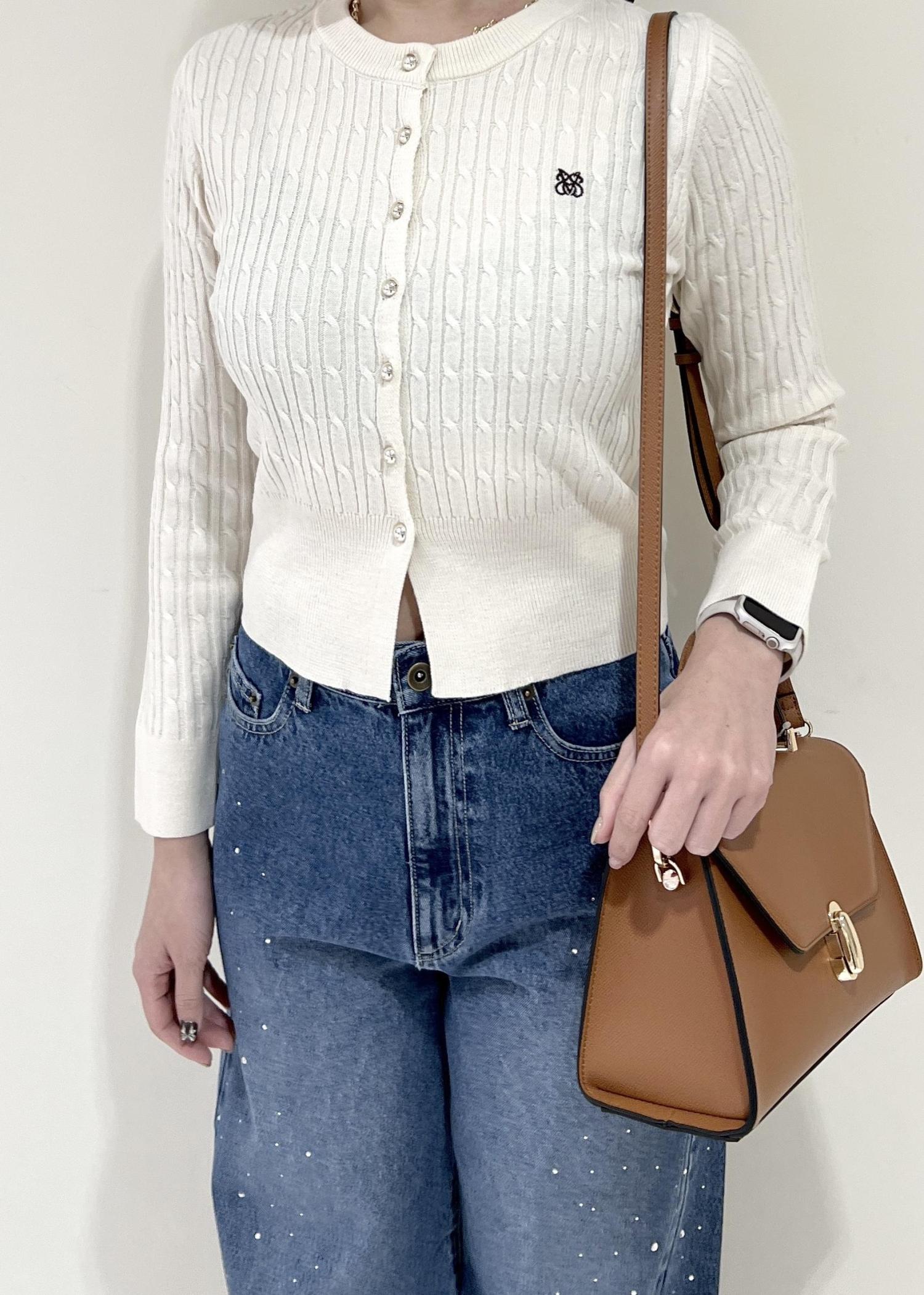 2BUY10%OFFVISケーブルコンパクトカーディガンキナリ / F¥4,391レビューニットなので伸縮性はありますが、ぴったりめのコンパクトなサイズ感です。おへそ下くらいの丈なので、ワンピースやハイウエストのボトムと相性抜群です◎