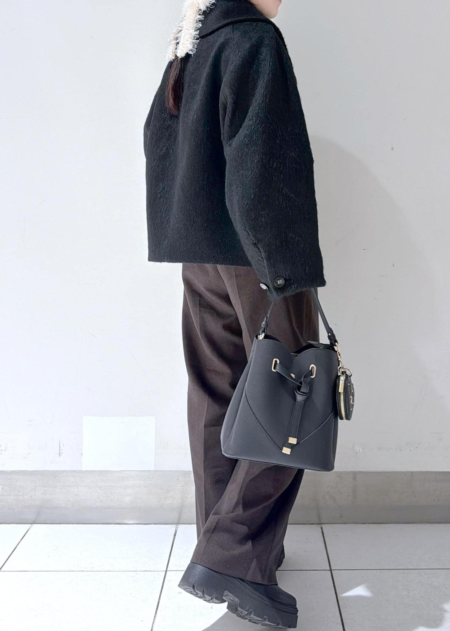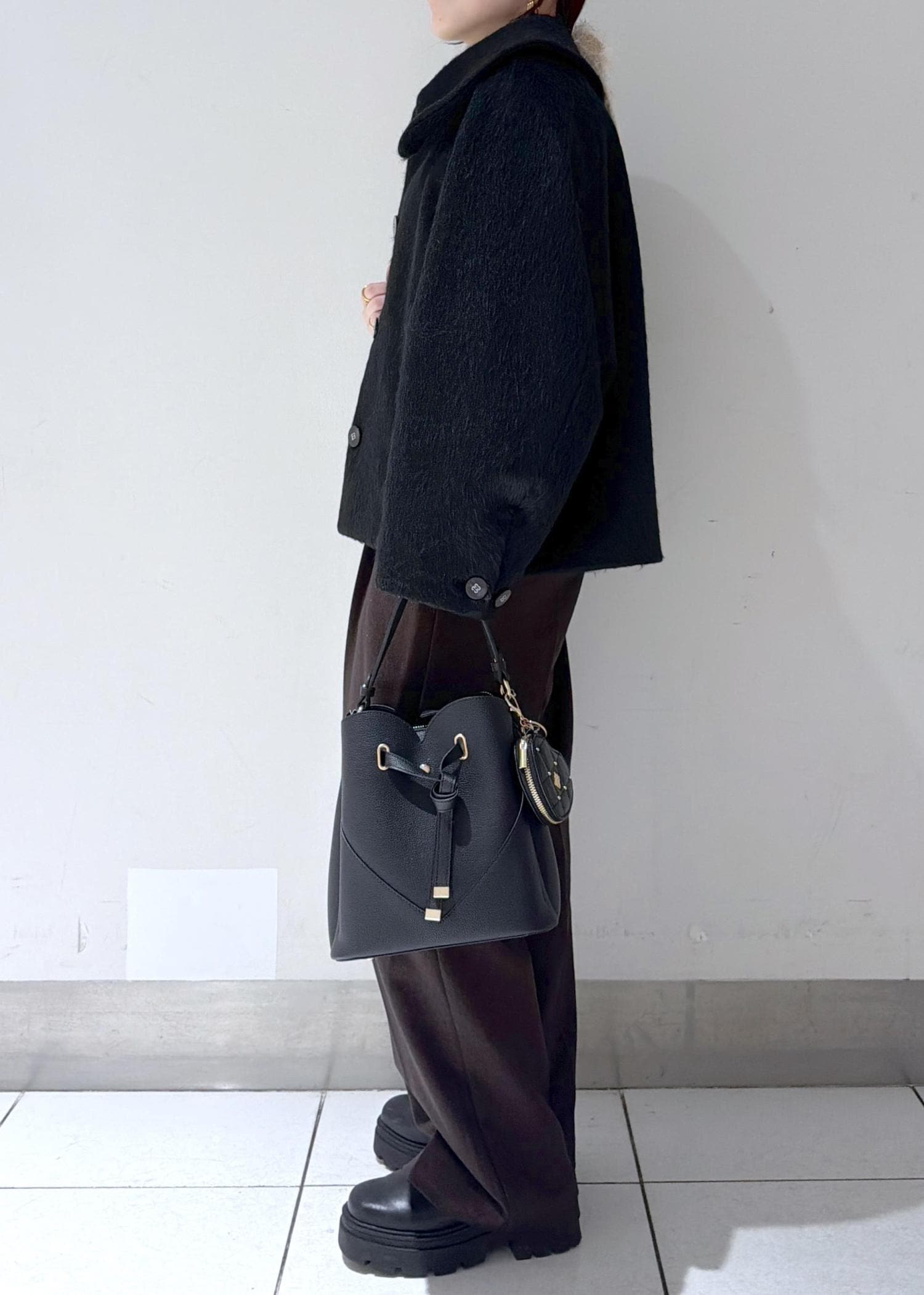 ブラックは、ハートがさり気なく分かるようになってるので、いろんなテイストのコーデにも使いやすいです◎金の金具が高見えします♪