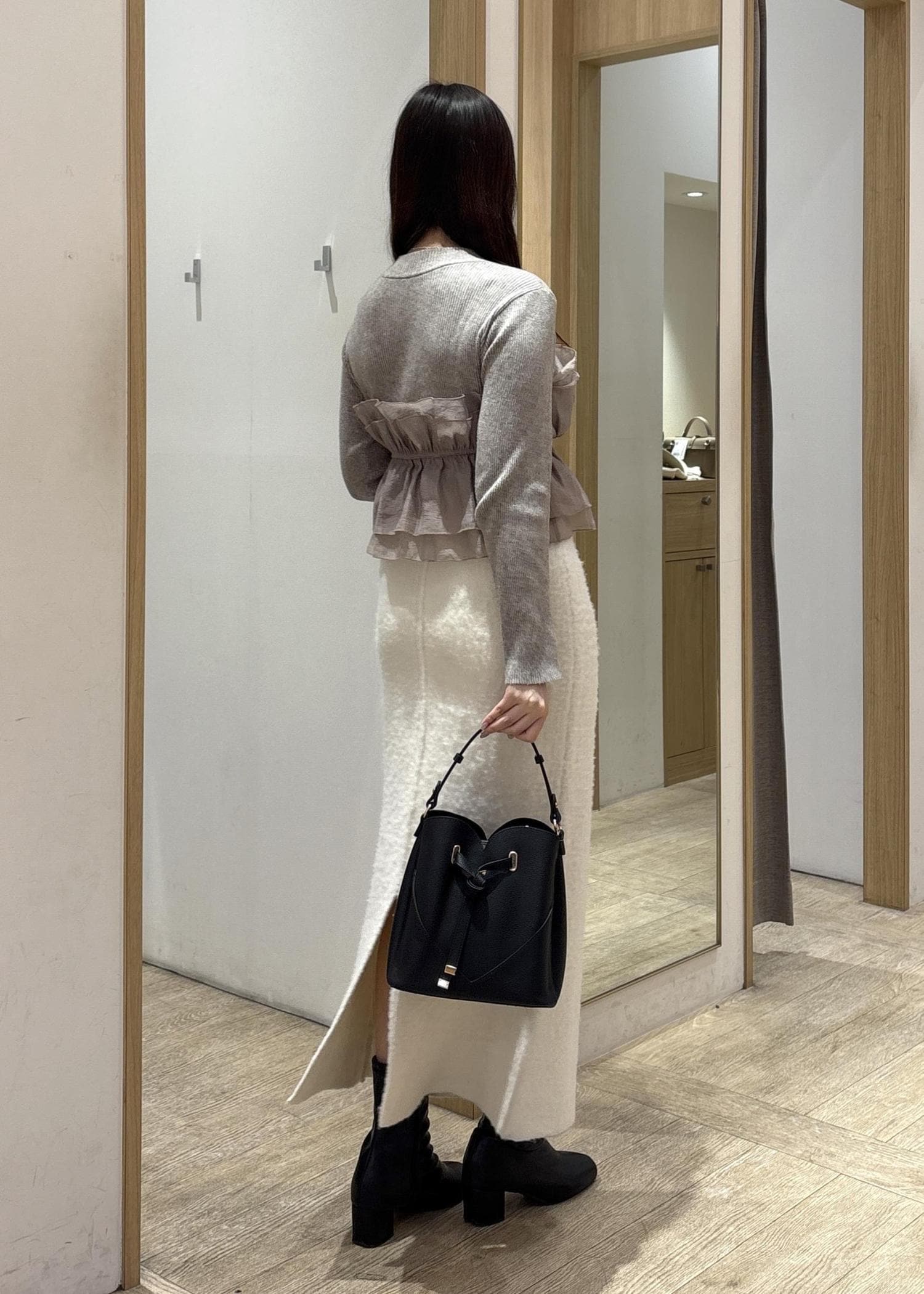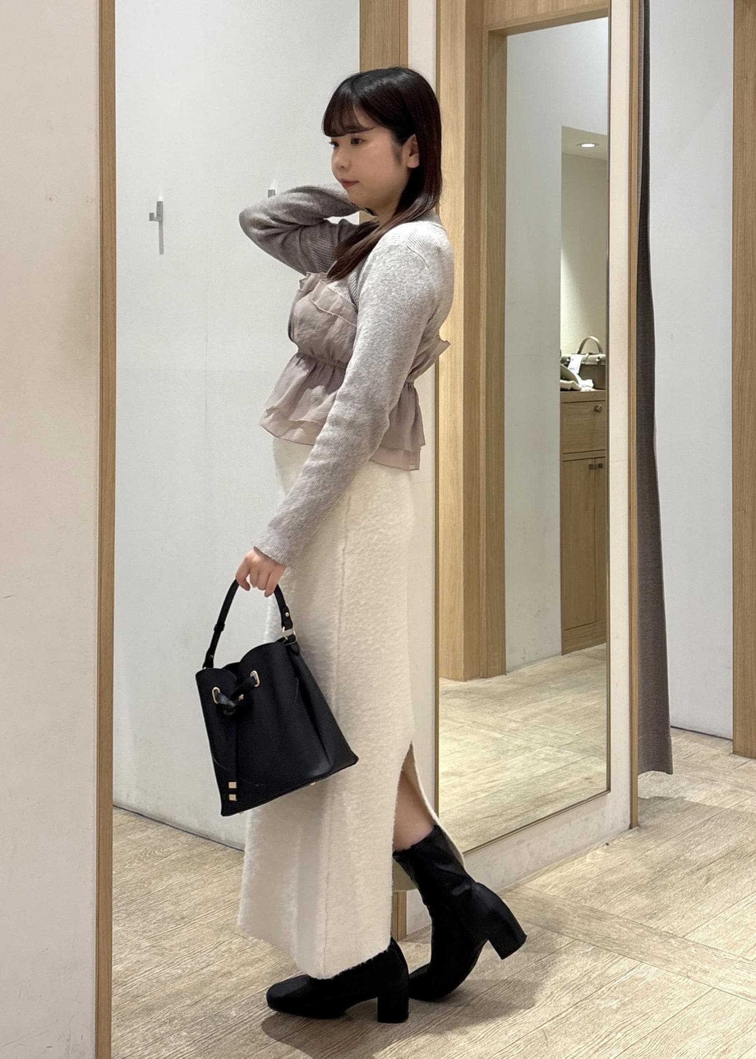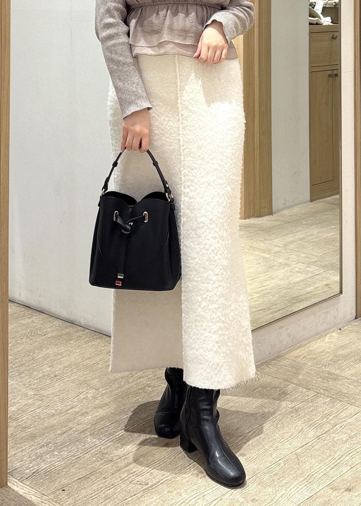 シャギー素材のやわらかな質感なのに広がりすぎず、メリハリのあるシルエットに仕上がります。 -