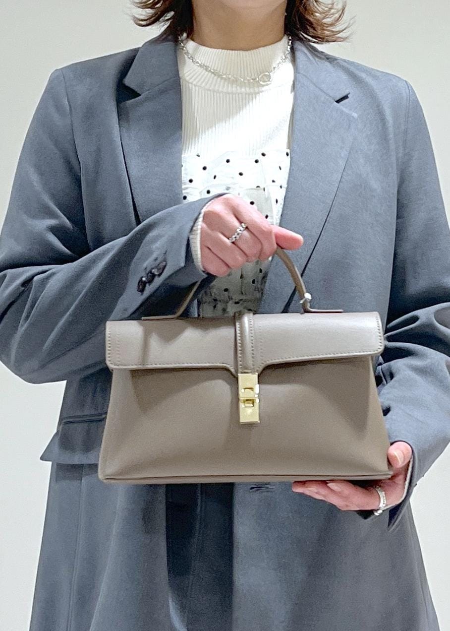 ショルダーが付いているので、斜め掛けでもワンハンドルでもお待ち頂け使いやすいです。