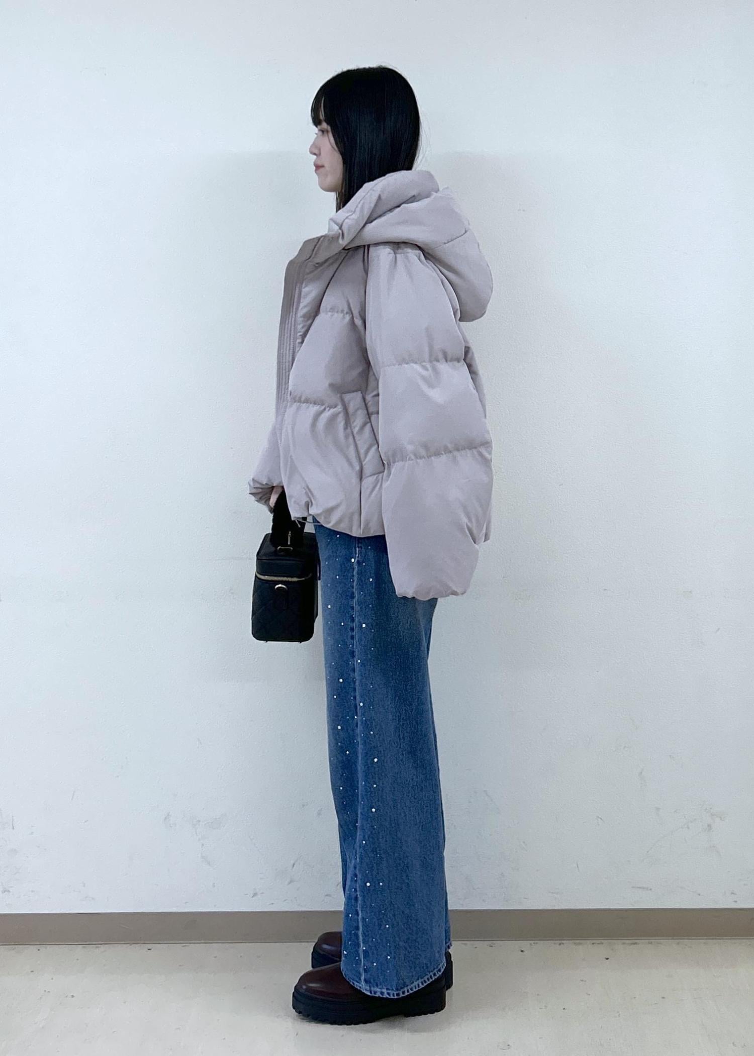 裾を絞ってシルエットを変えたり、フードの取り外しなどが可能です。内側にもポケットがあるので寒い日はカイロを入れておけばかなり暖かく過ごせると思います! -