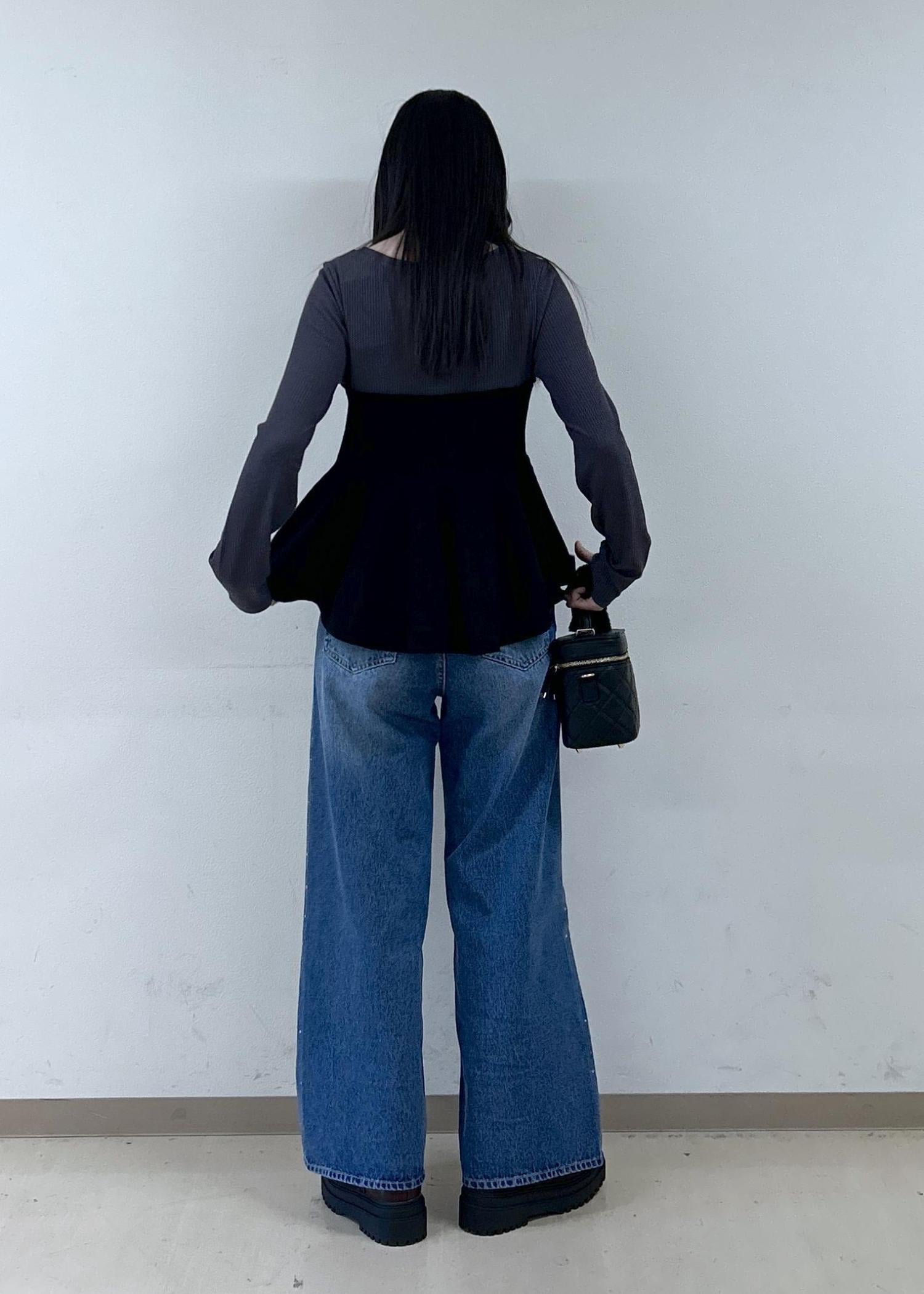 VISペプラムニットドッキングプルオーバーブラック系 / F¥5,929レビュービスチェがドッキングされたデザインなので1枚でレイヤードが楽しめます!柔らかくモチモチした生地感なので着心地が良く動きやすいです。