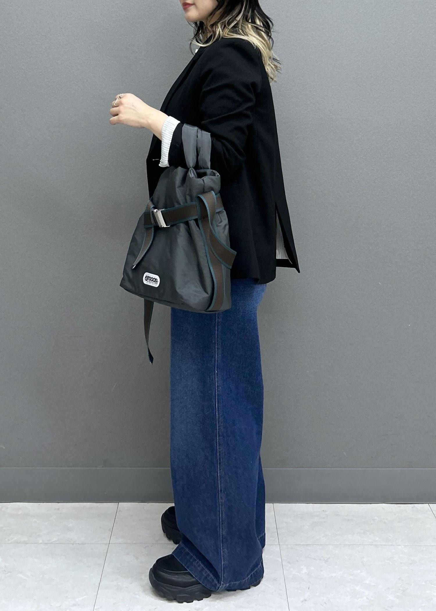 NEW!VIS【OUTDOOR PRODUCTS】VIS別注2WAYベルト付きパデッドトートバッグチャコール / F¥8,580レビュー500mlのペットボトル、三つ折り財布、iPhone、メイクポーチ、タオルを入れても余裕のサイズ感◎
