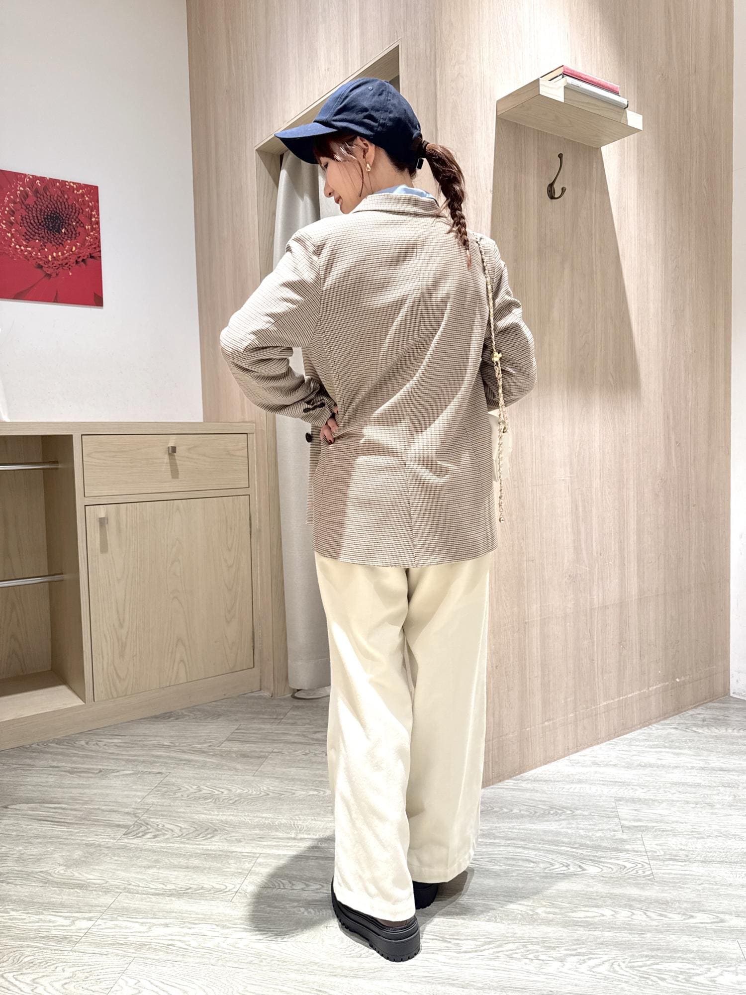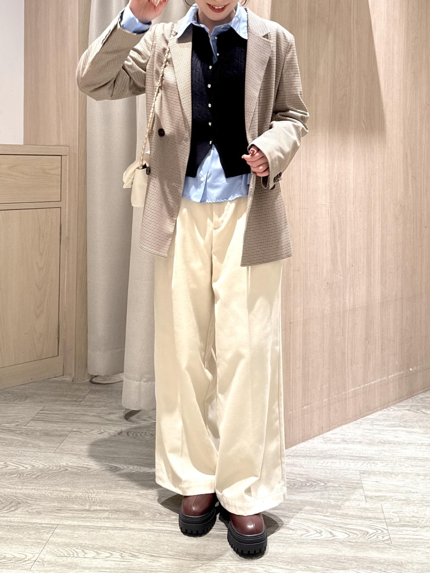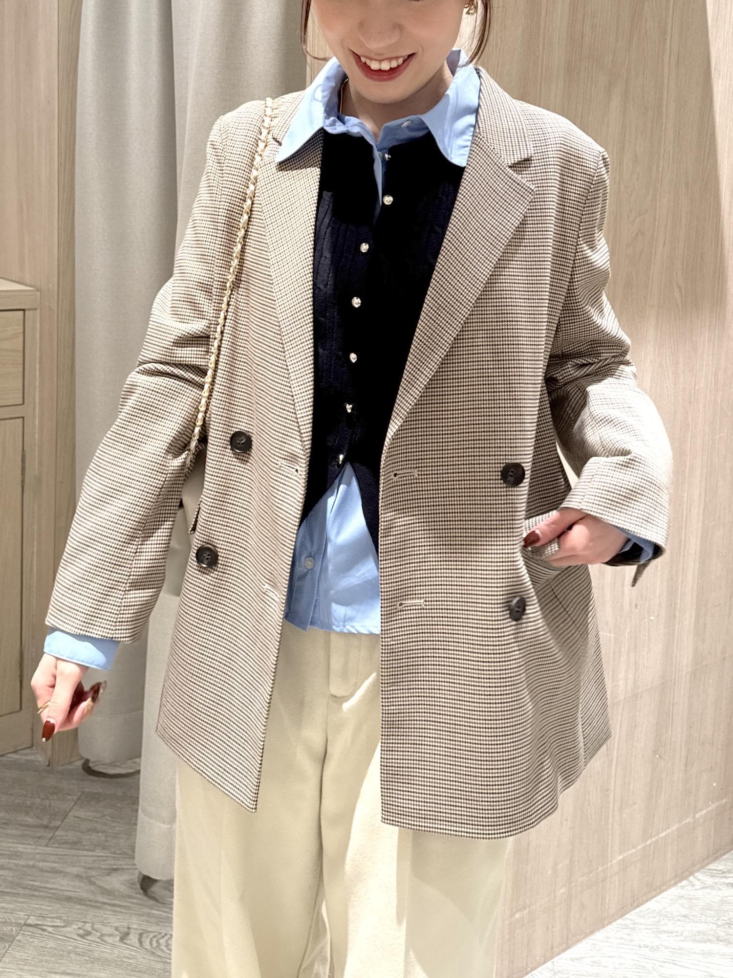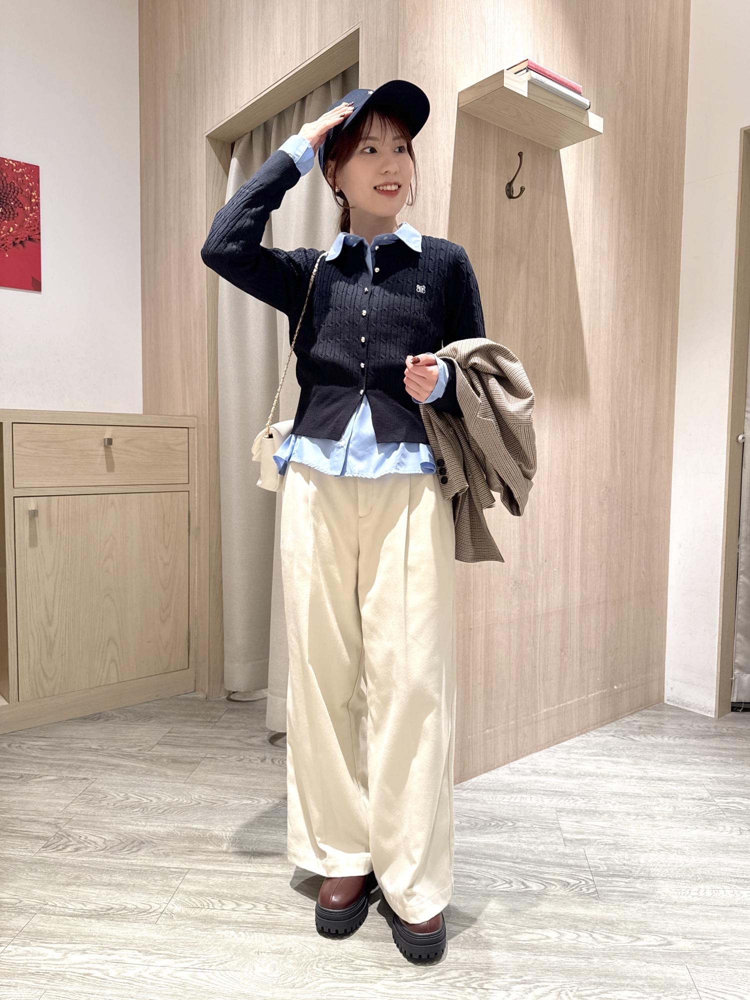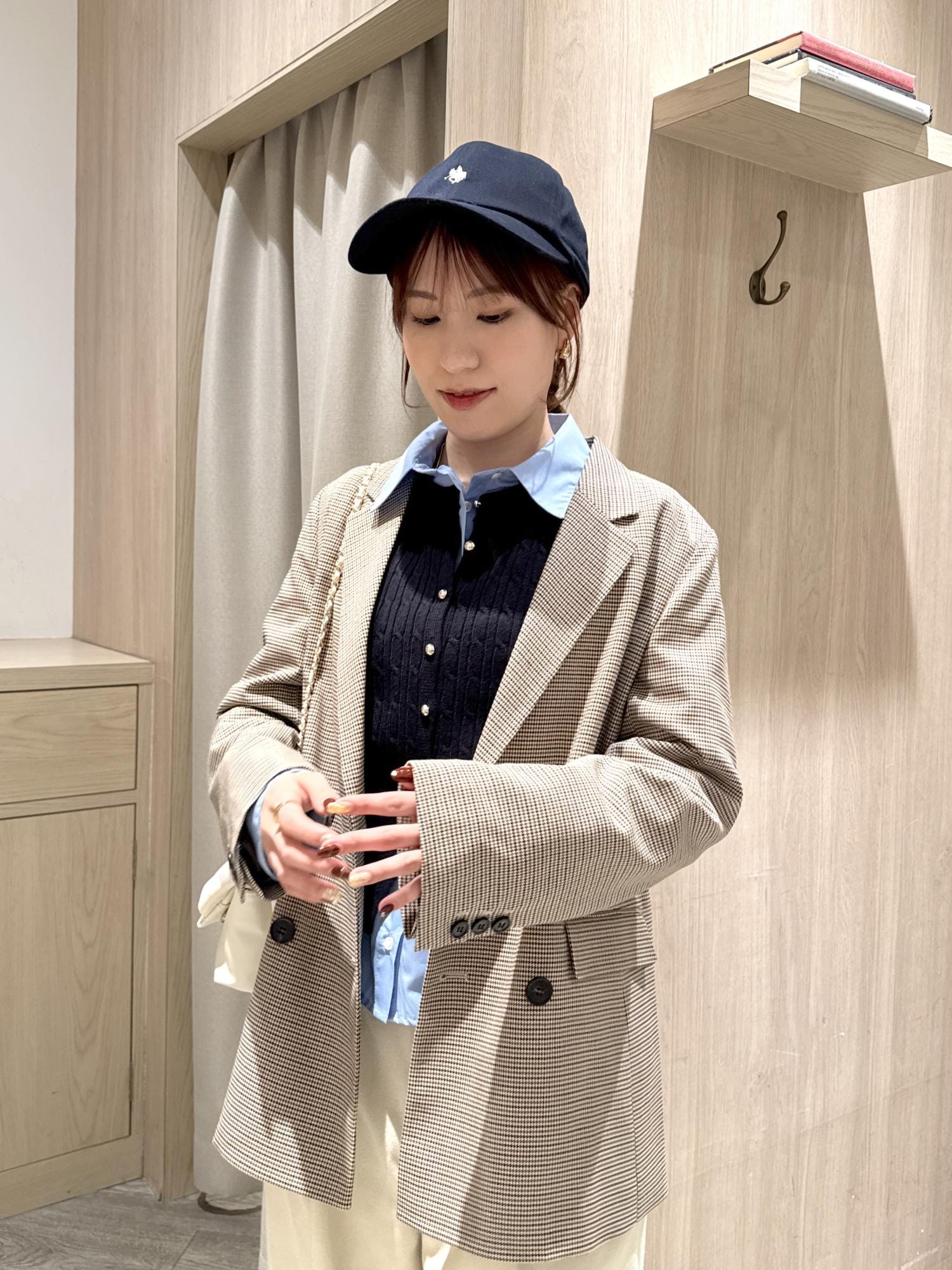 オーバーすぎないサイズ感なので、冬はカーディガンやニットの中にレイヤードしやすいです!