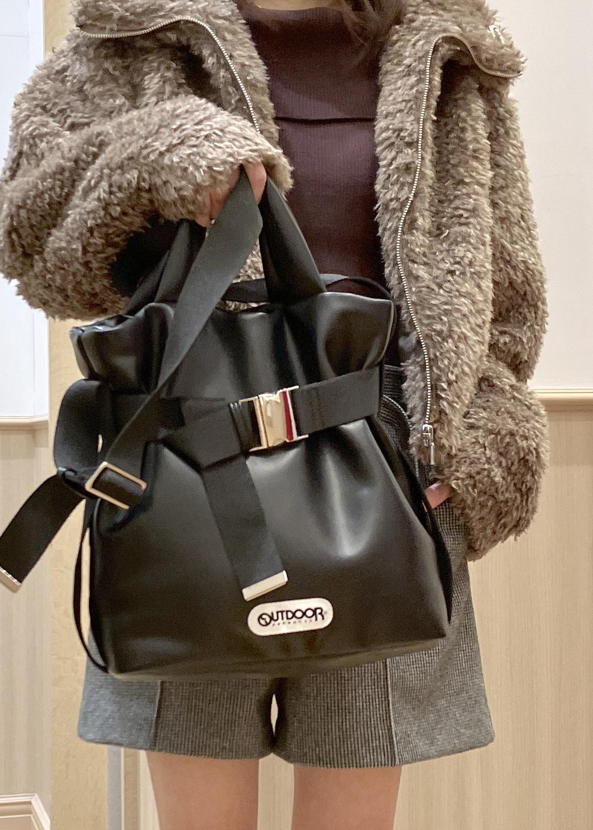 フロント部分のバックルデザインがカワイイ人気のbagです。軽くて柔らかい素材で持ちやすいです。