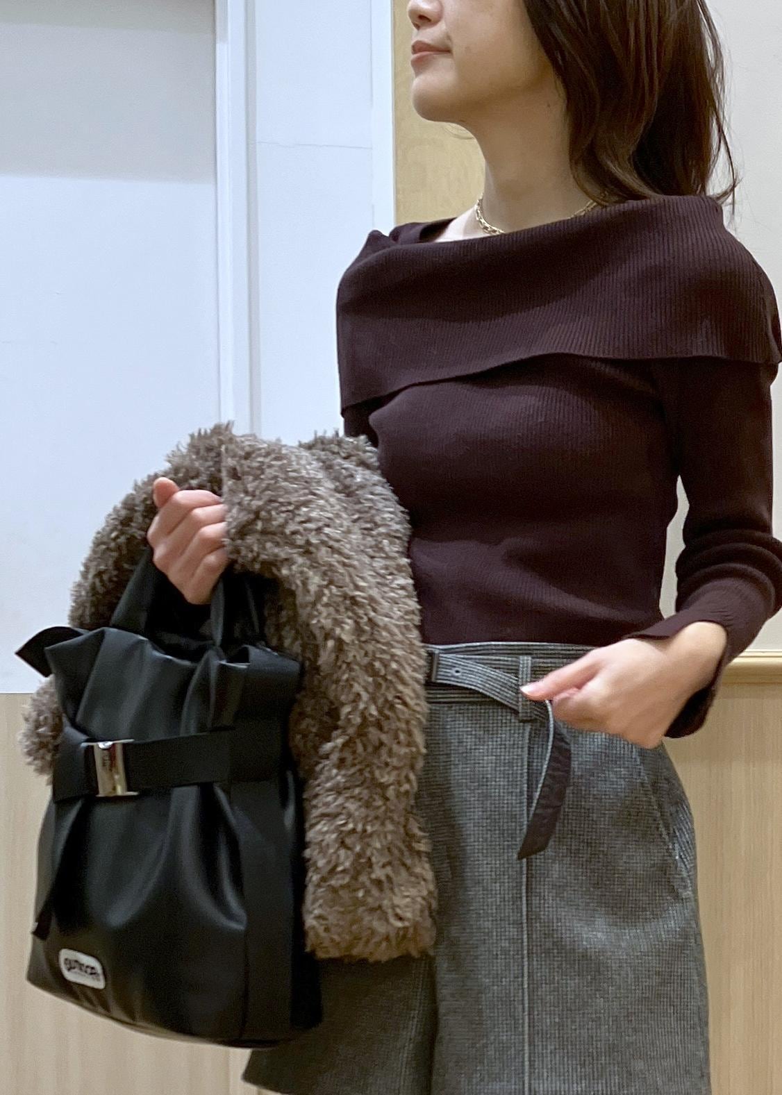 VIS【美得】オフショルダーモチモチリブニット/好評につき再入荷ダークブラウン / F¥5,489レビューモッチモチの肌触りで着心地◎
