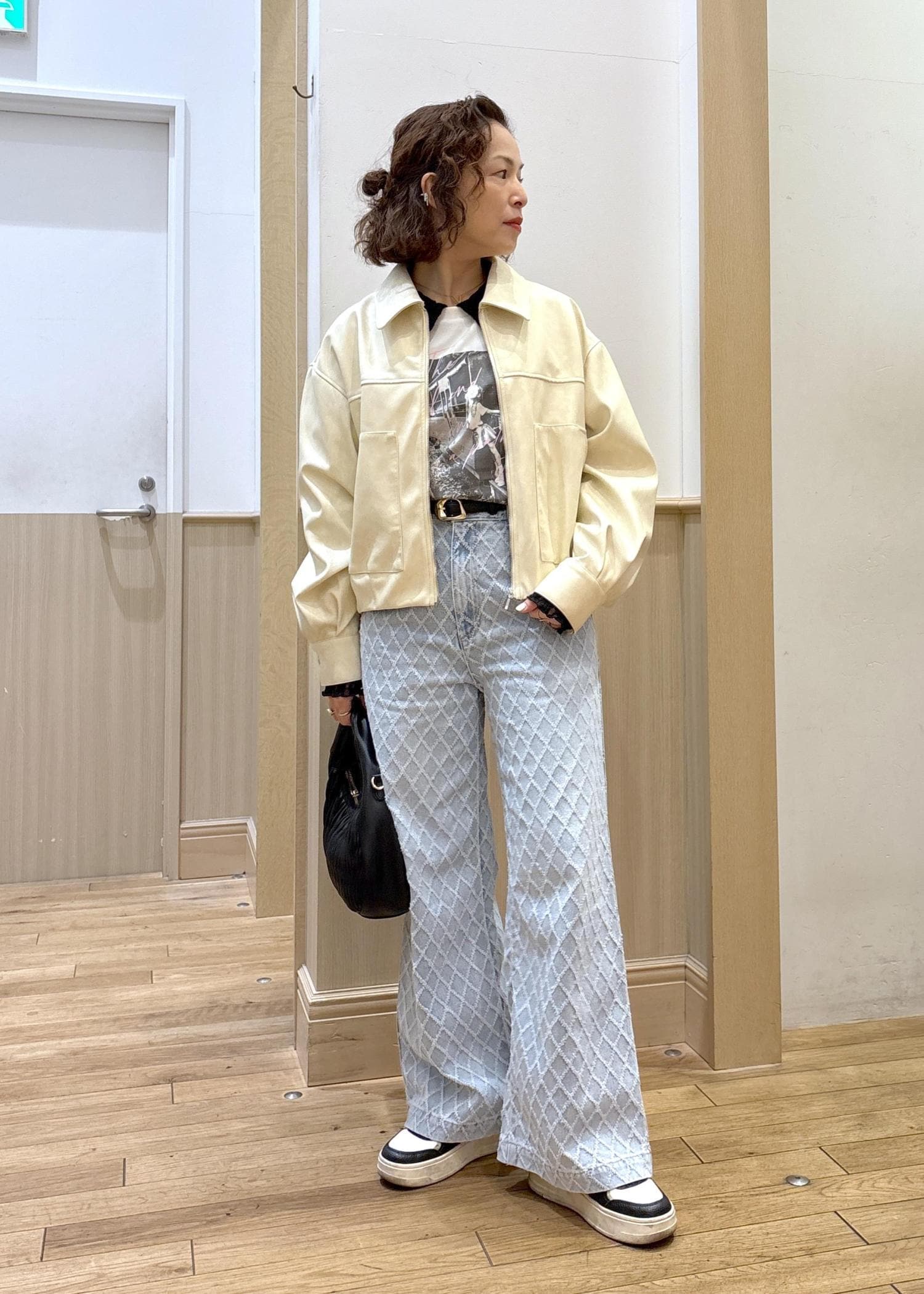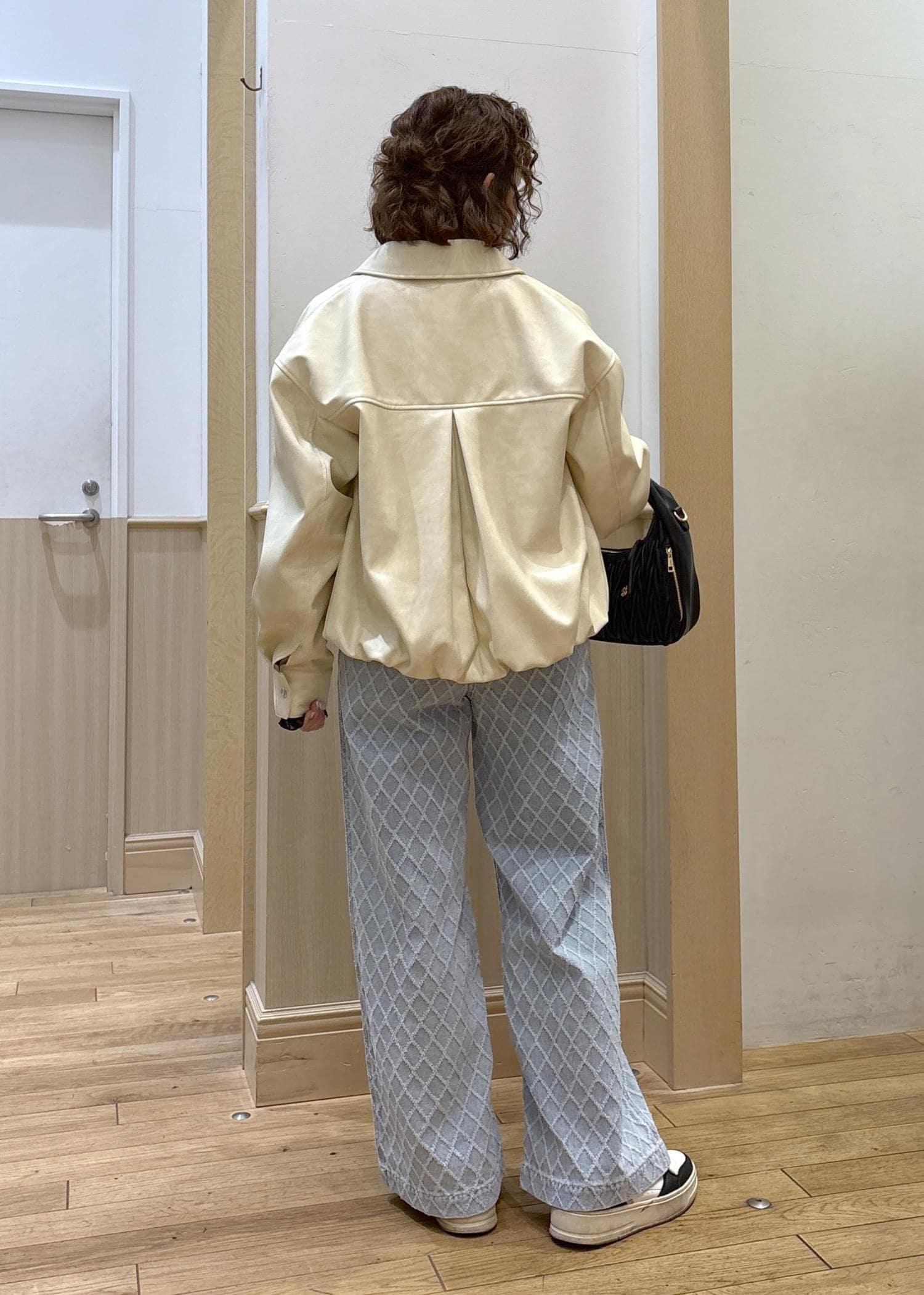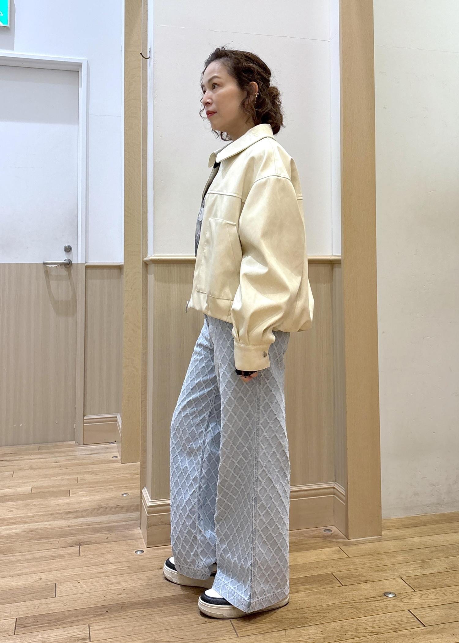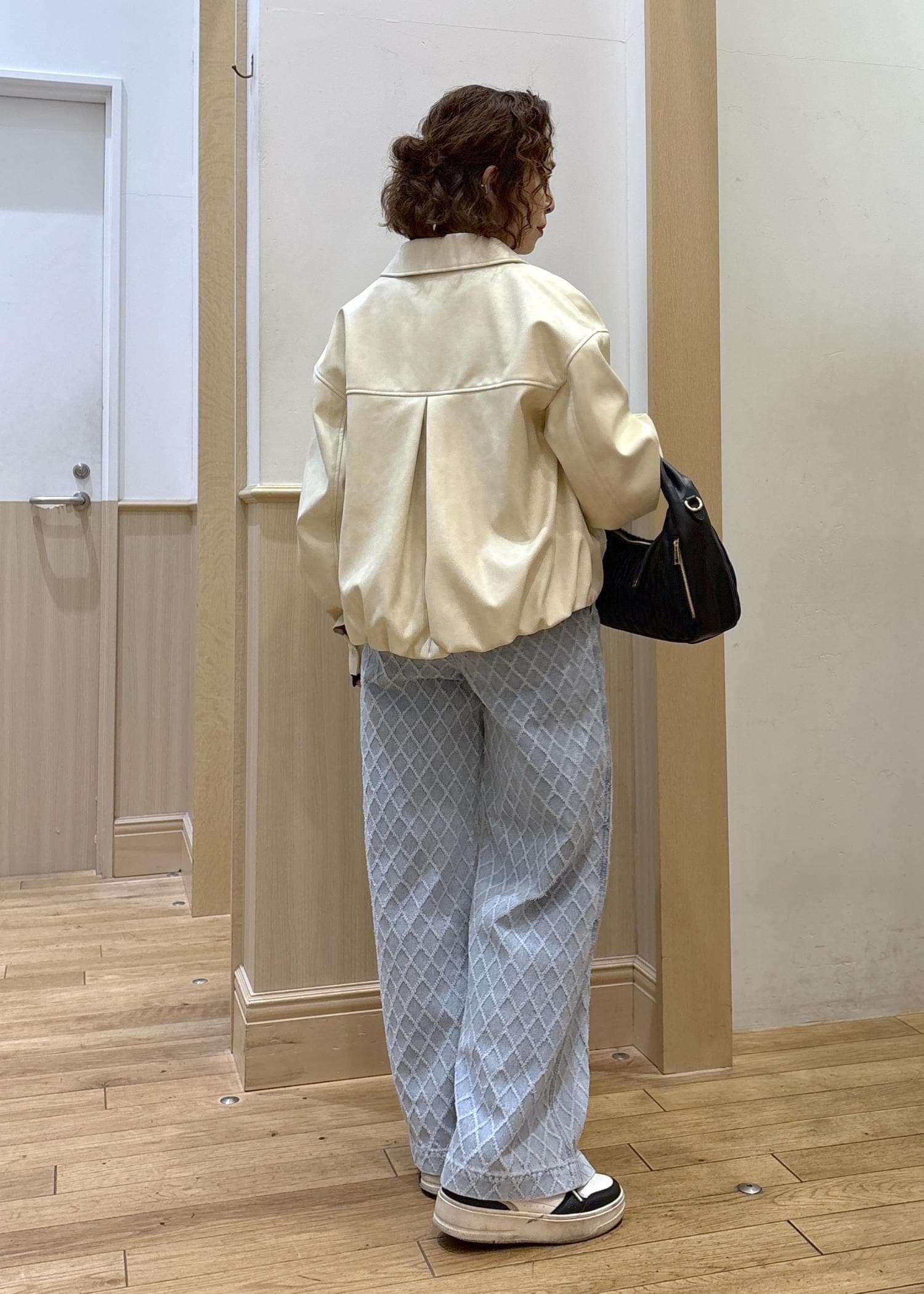VISアウトポケット合皮ブルゾンクリーム / F¥10,989レビュー153cmでお尻が半分くらい隠れる丈感です。