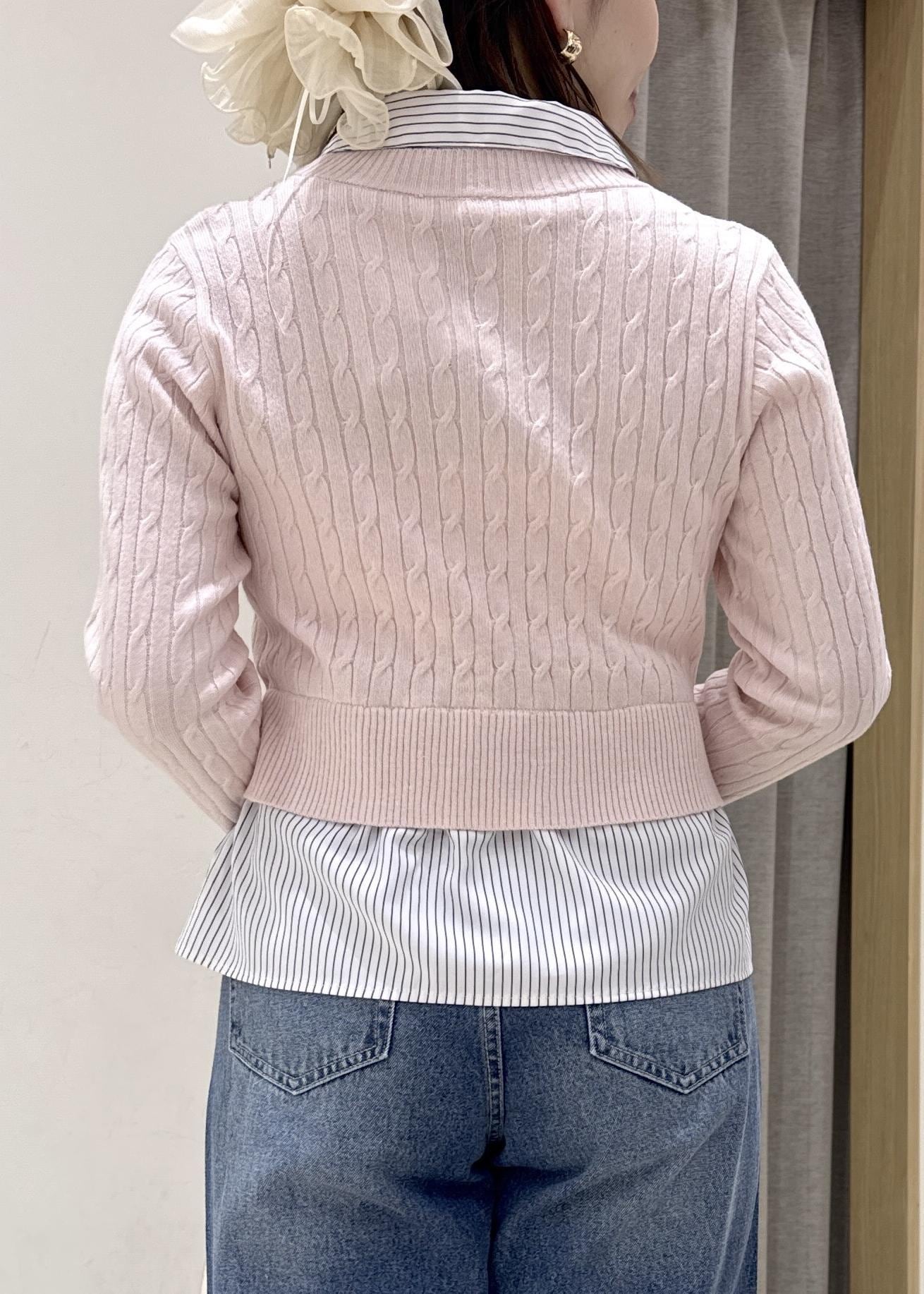2BUY10%OFFVIS【美得】ハイゲージケーブシャツドッキングプルオーバーピンク / F¥4,940レビュー【着心地】