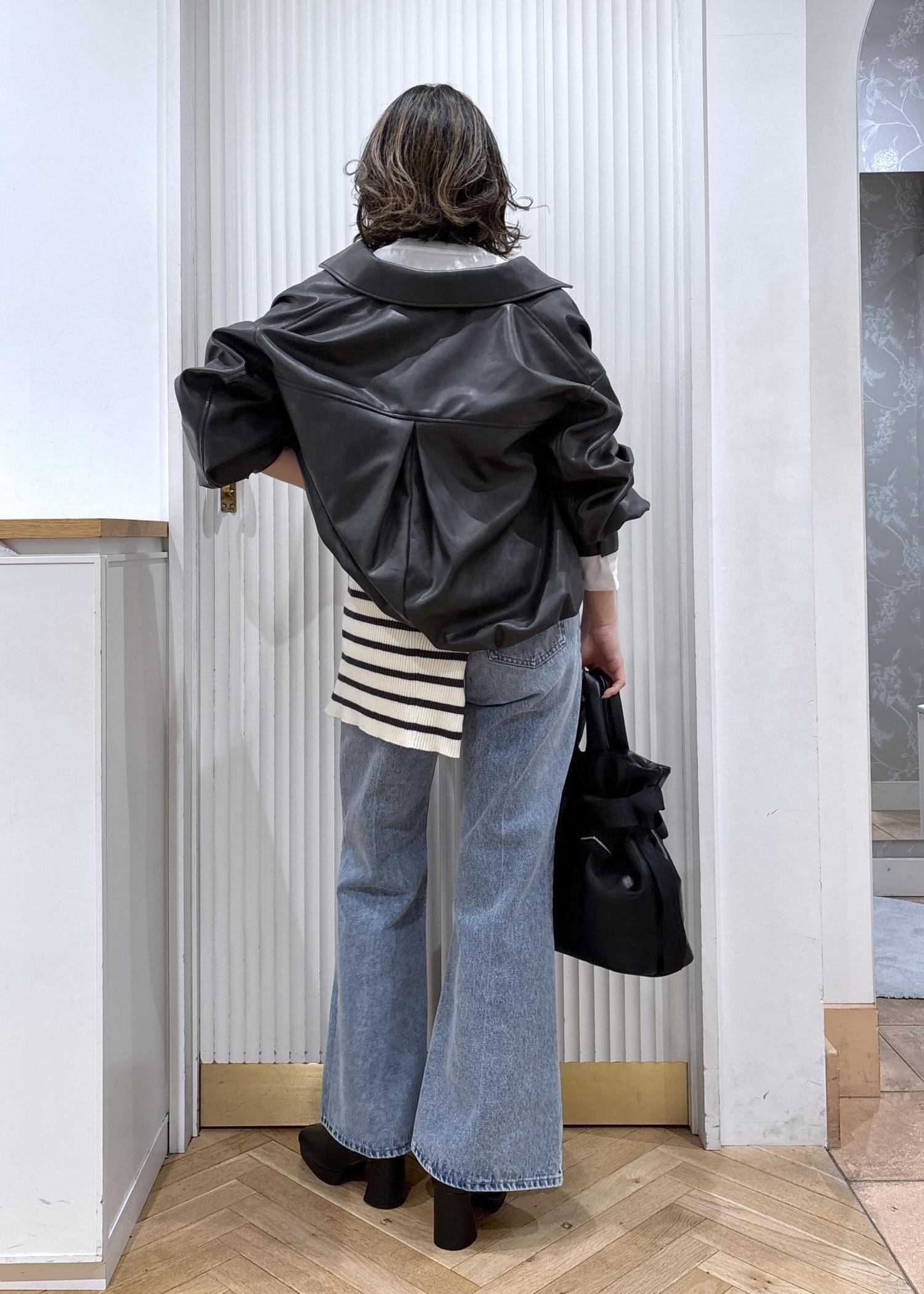 VISアウトポケット合皮ブルゾンブラック / F¥10,989レビュー柔らかい合皮素材のブルゾン。程よい艶のあるヴィンテージな風合い。身幅にはしっかり余裕がありますが丈感はスッキリとしているのでボトムを選ばずワンピースやスカートに合わせても◎バックシルエットのフォルムが女性らしく、強すぎないのでレザージャケット初心者さんもトライしやすいブルゾンです。