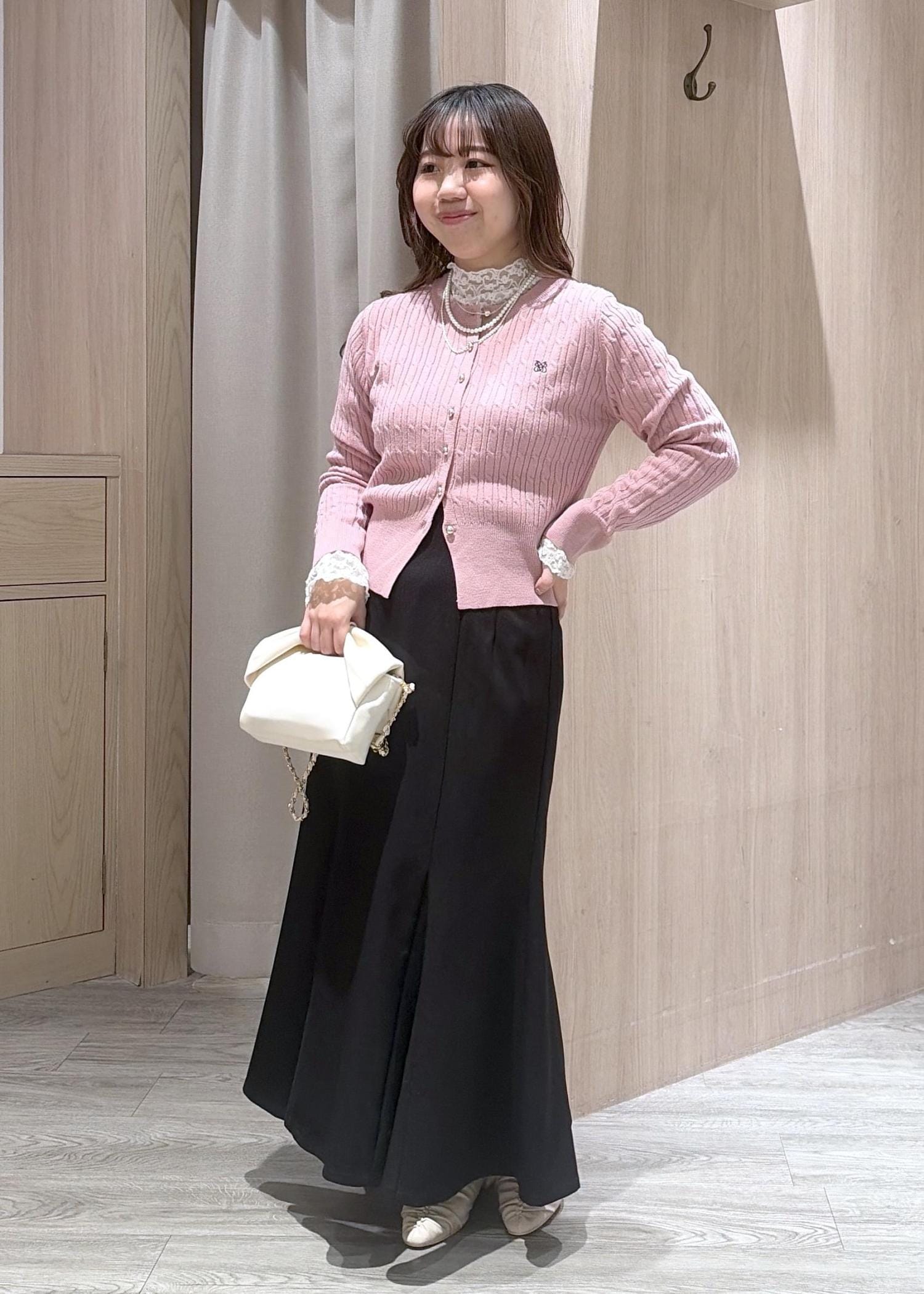 ブルゾンがブラックなので重たく見えないようにバッグはサックスカラーでポイントなるようにしました!