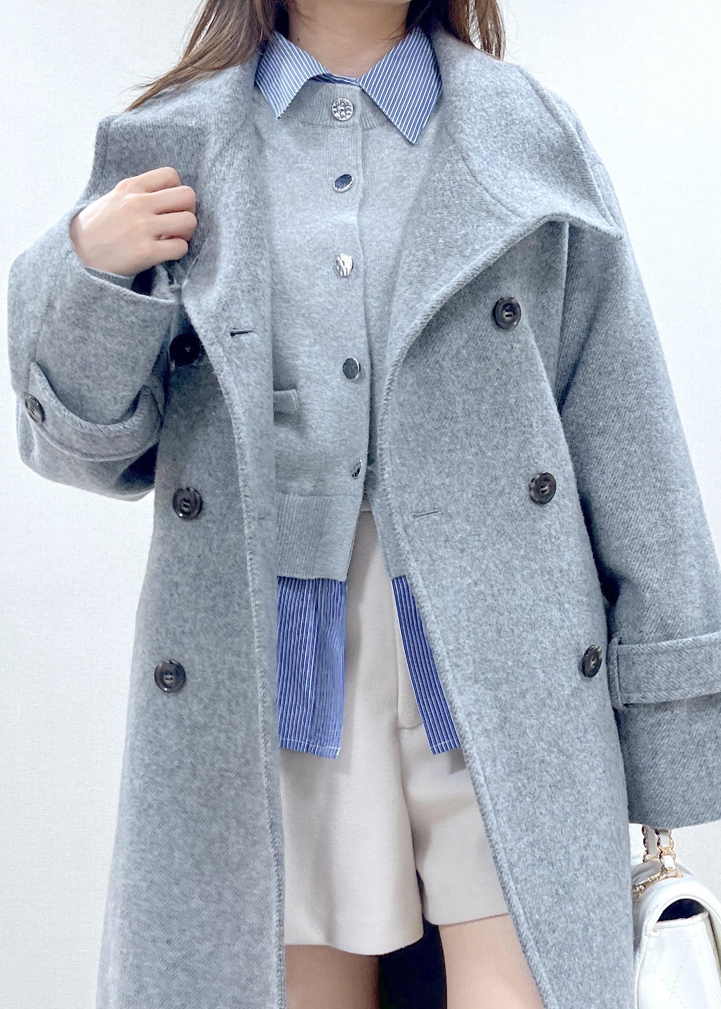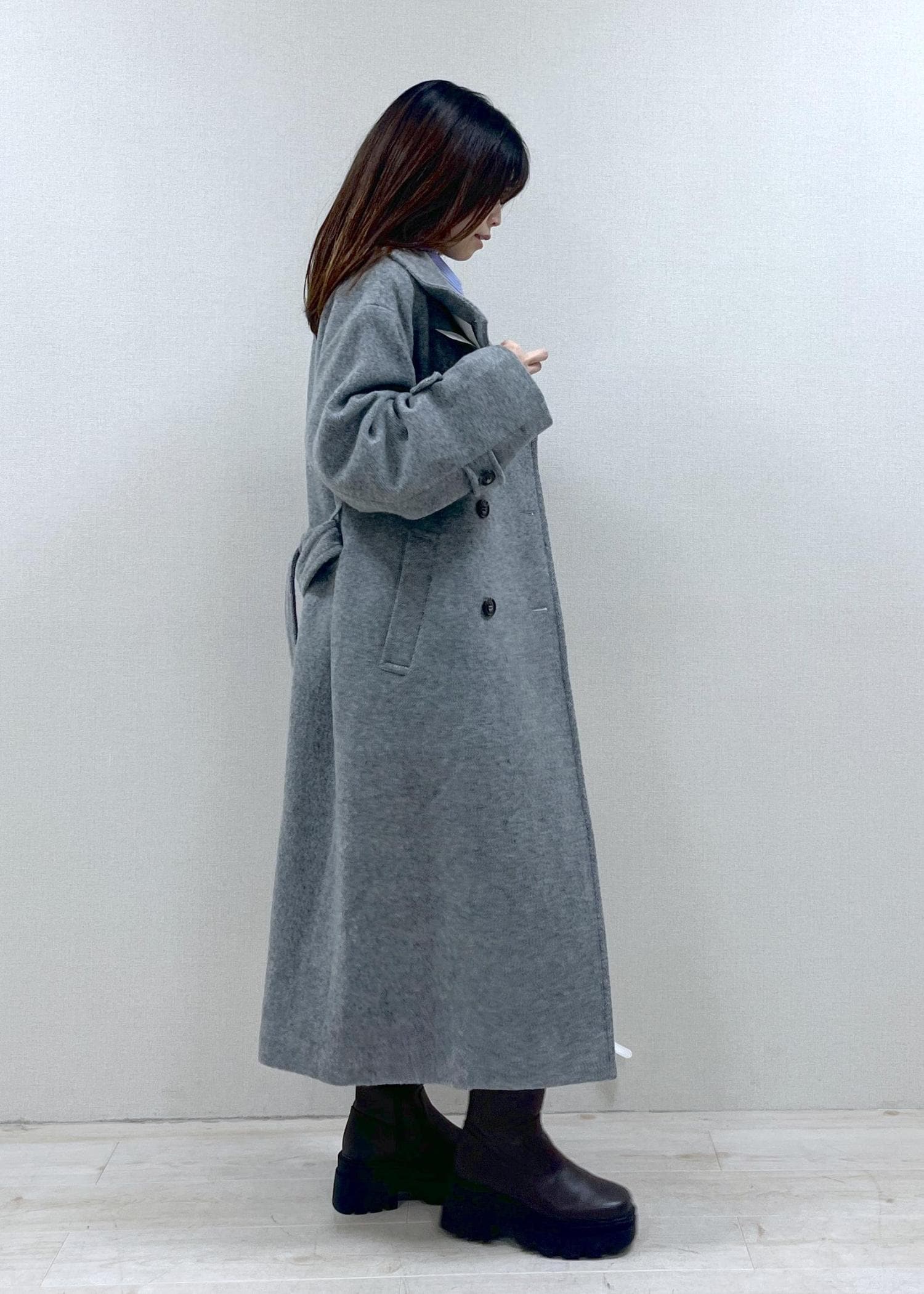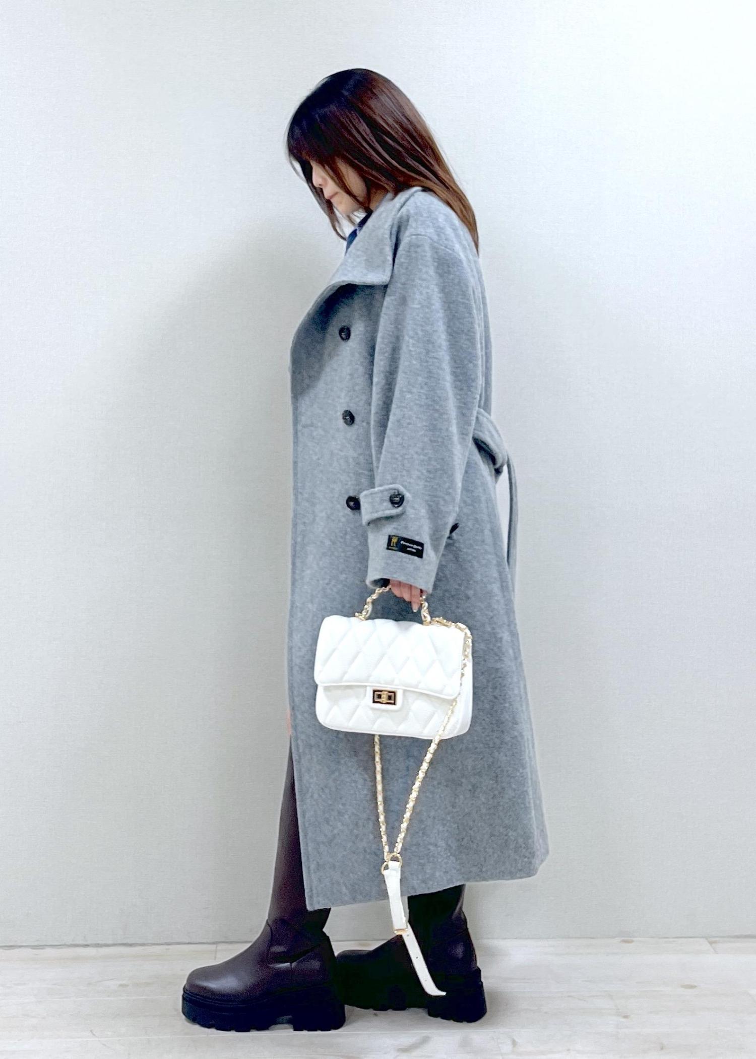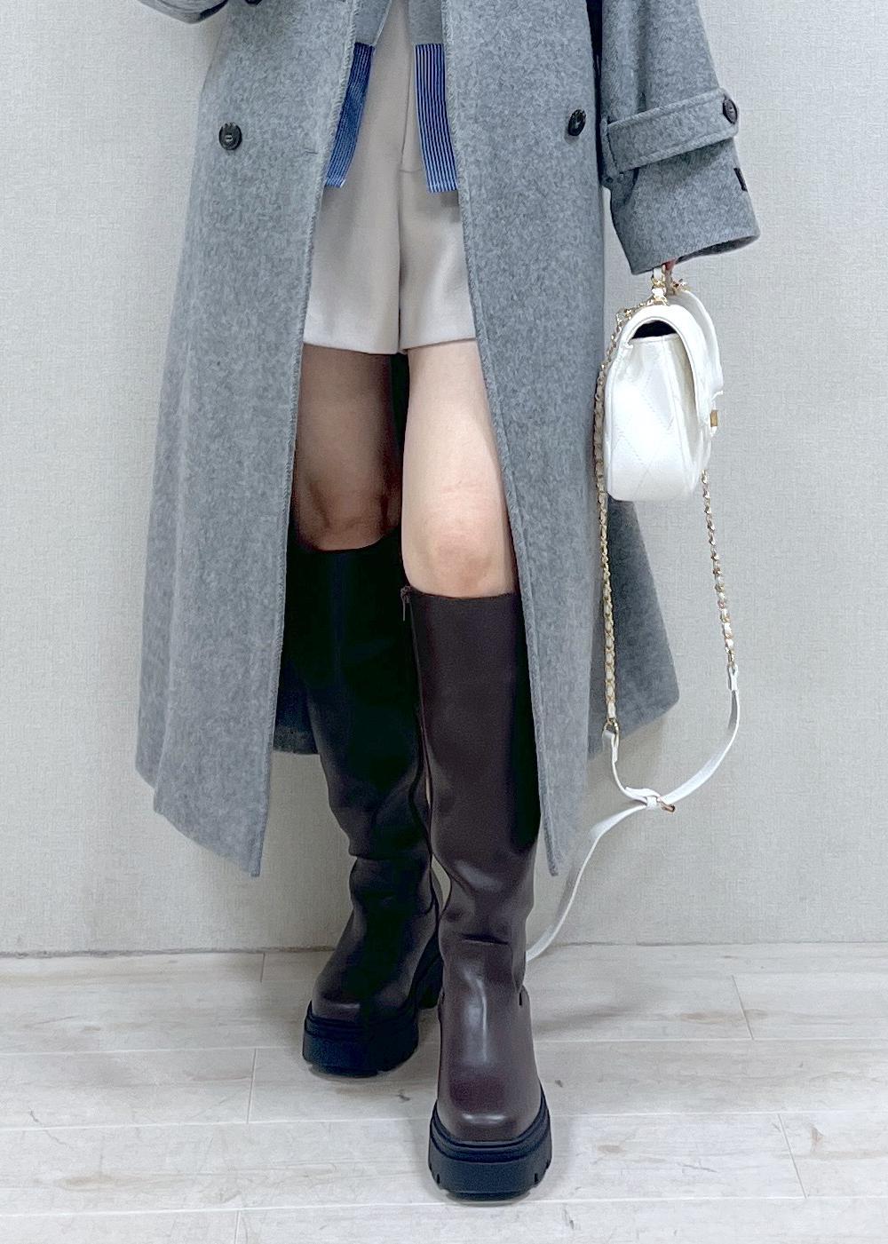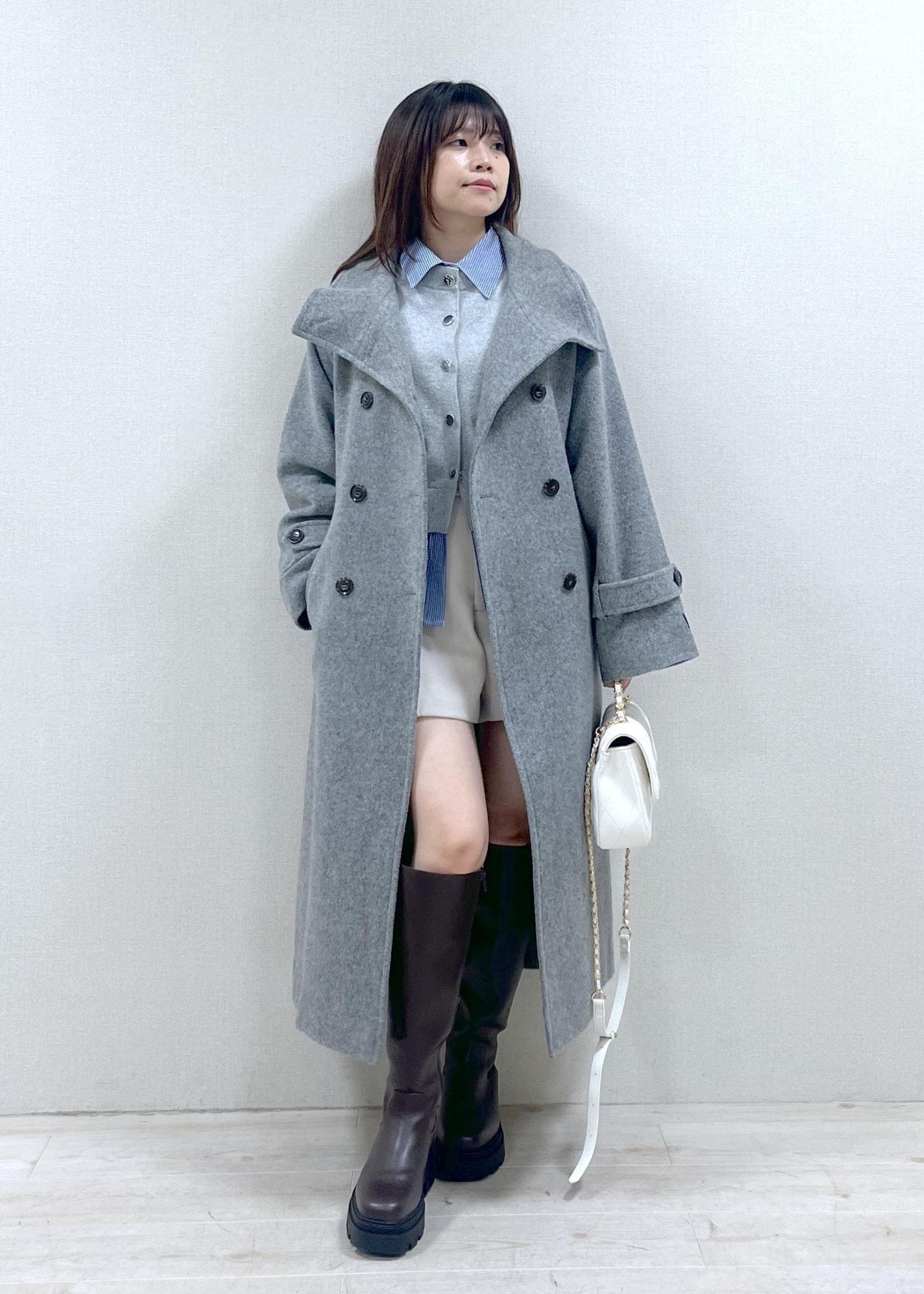 冬場のミニ丈コーデにもぴったりな暖かいロングコートです。