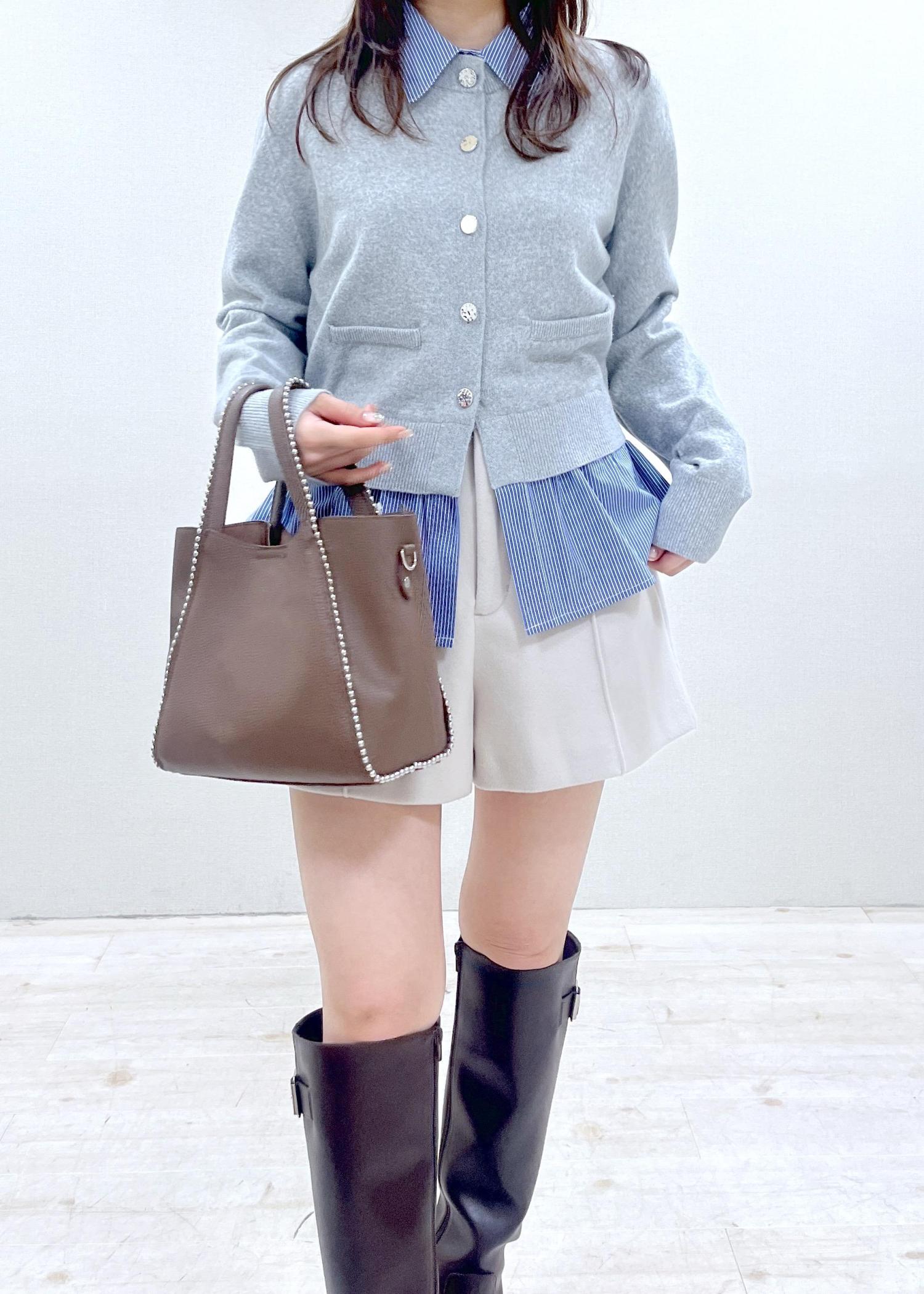 シャツドッキングのニットがきちんと感もあり、大人の女性にもおすすめなミニ丈コーデです!