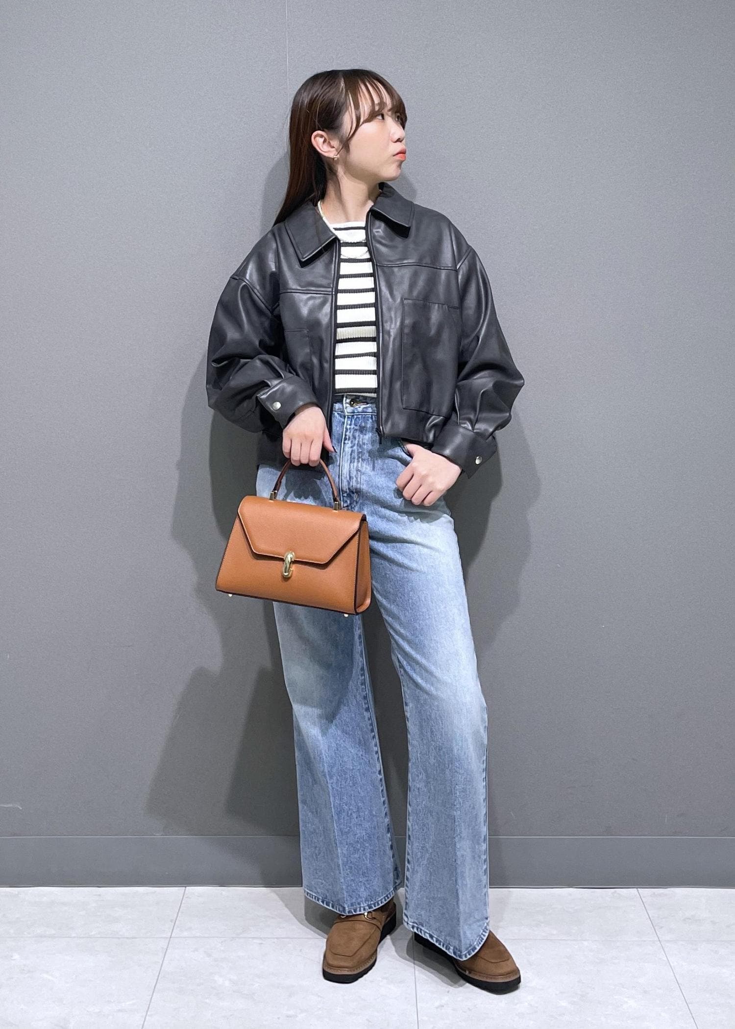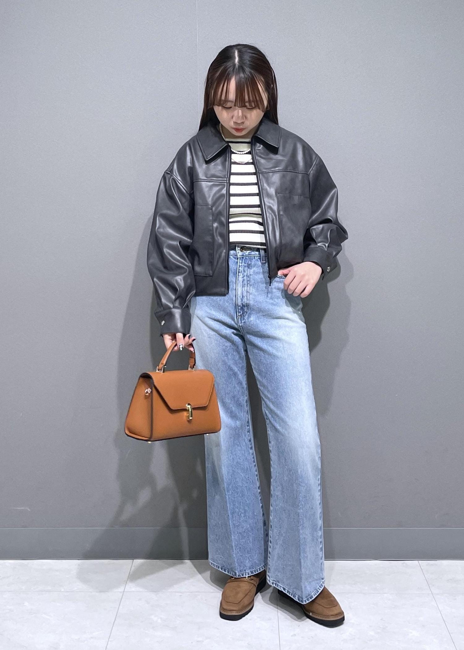 フロントのデザインが可愛く、コンパクトなので軽アウターとして使いやすいです。 -