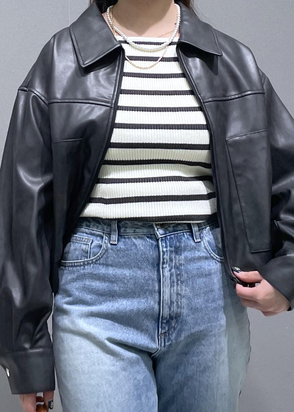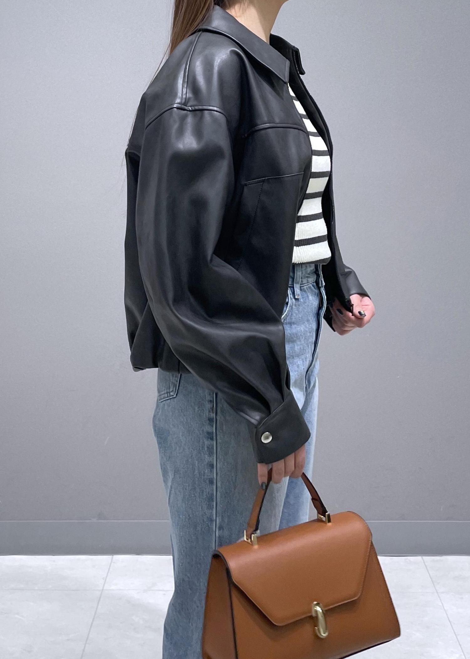 VISアウトポケット合皮ブルゾンブラック / F¥10,989レビューショート丈の合皮ブルゾンです。