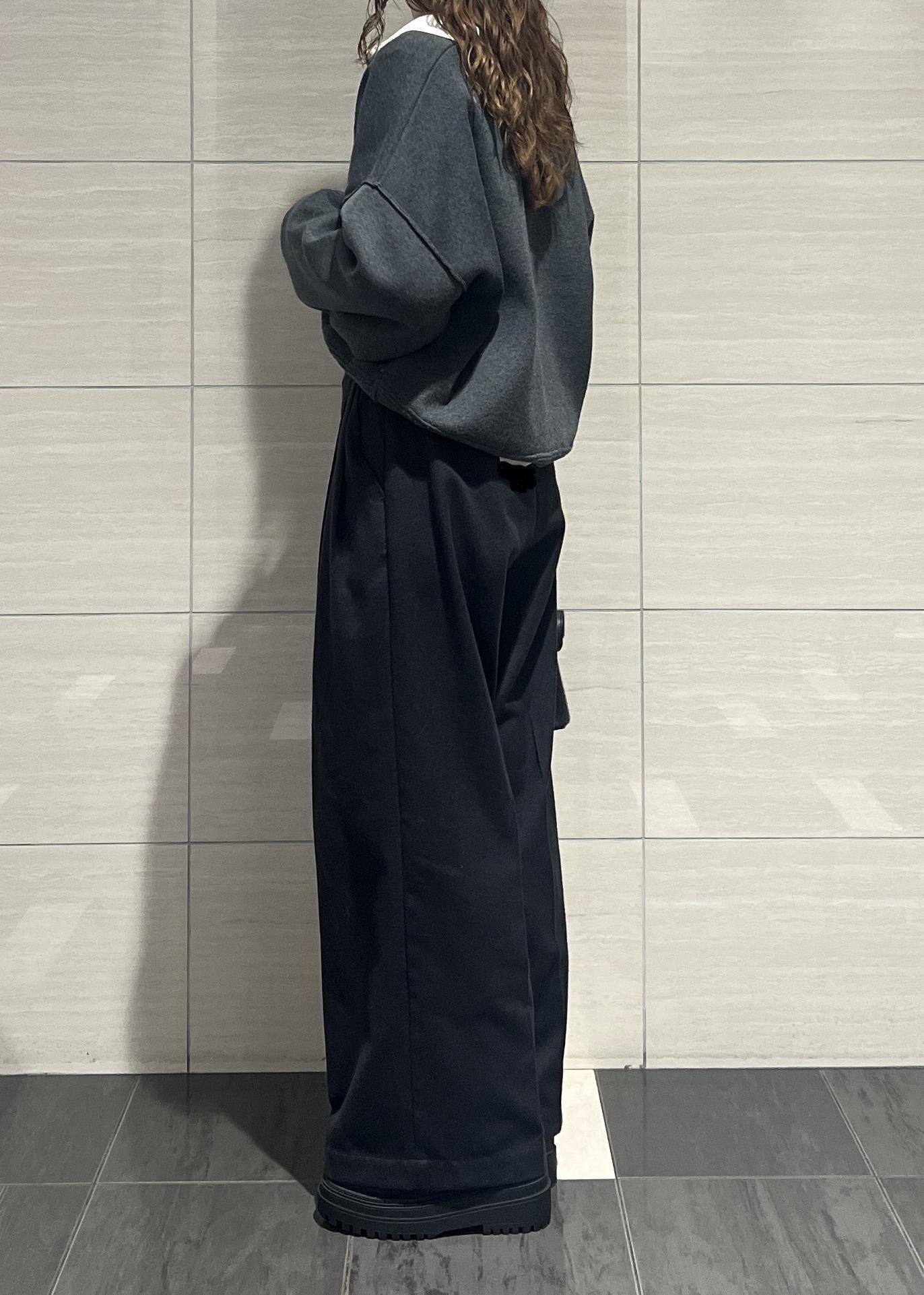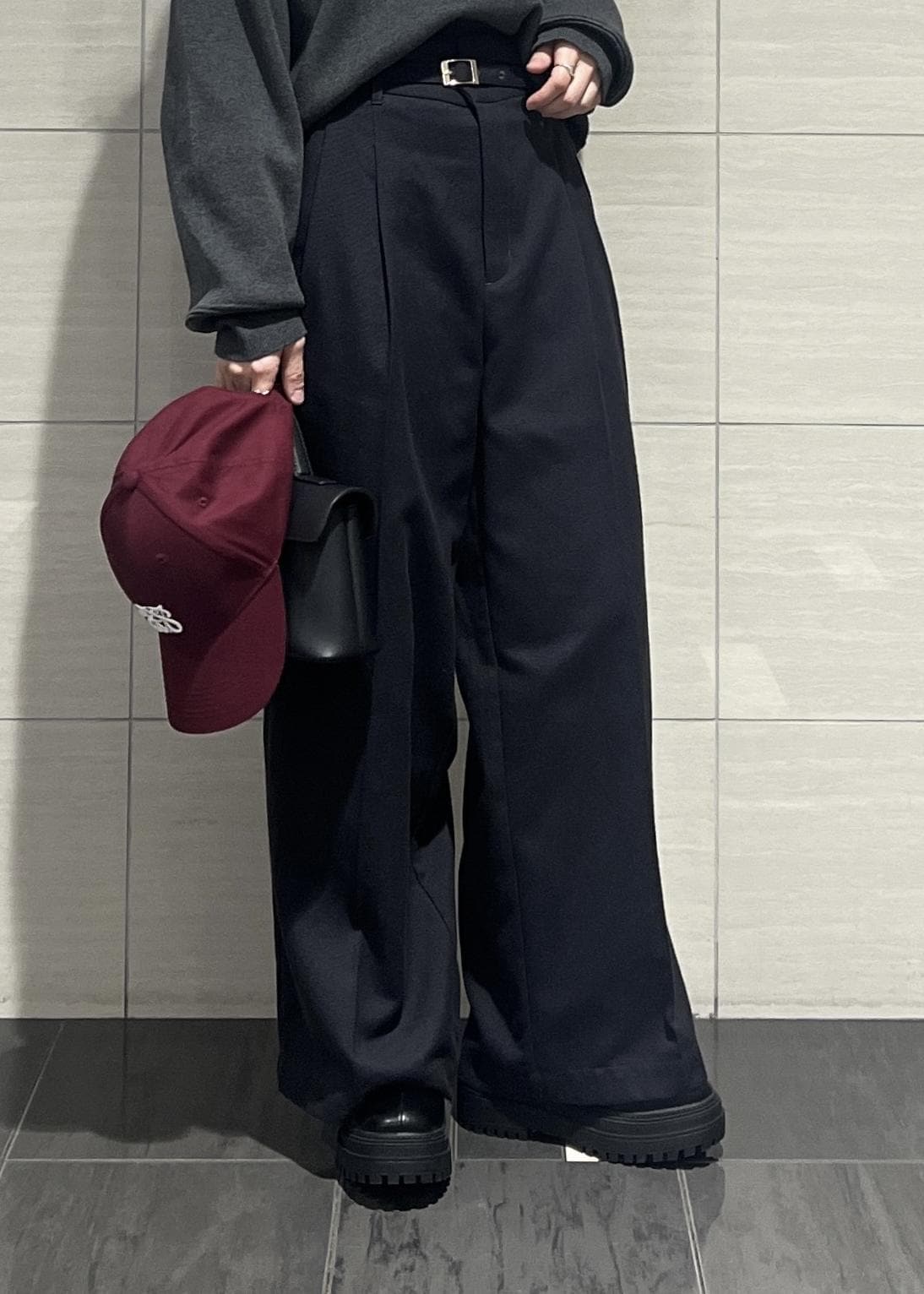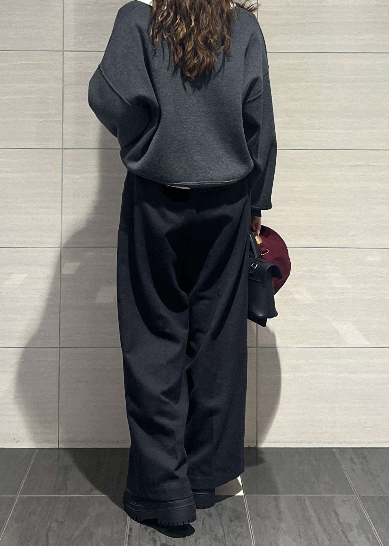 タック入りのワイドシルエットですが、落ち感があり広がりすぎず、すっきり着用できます。